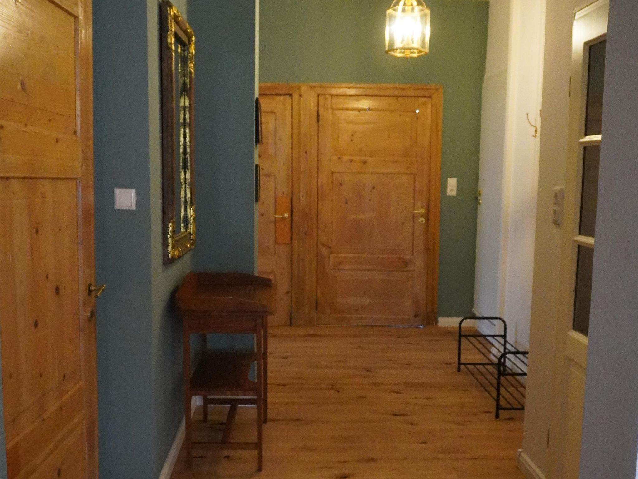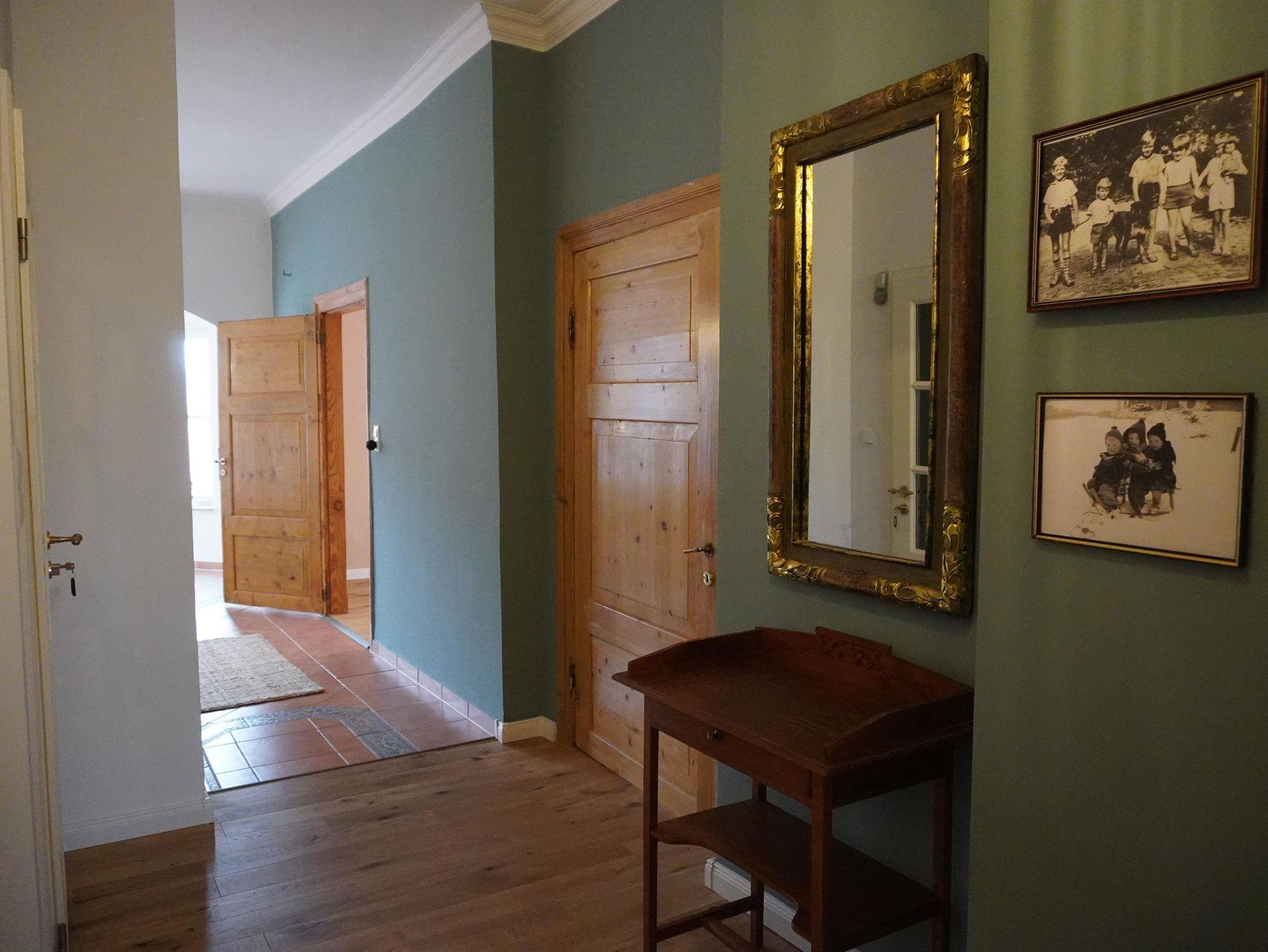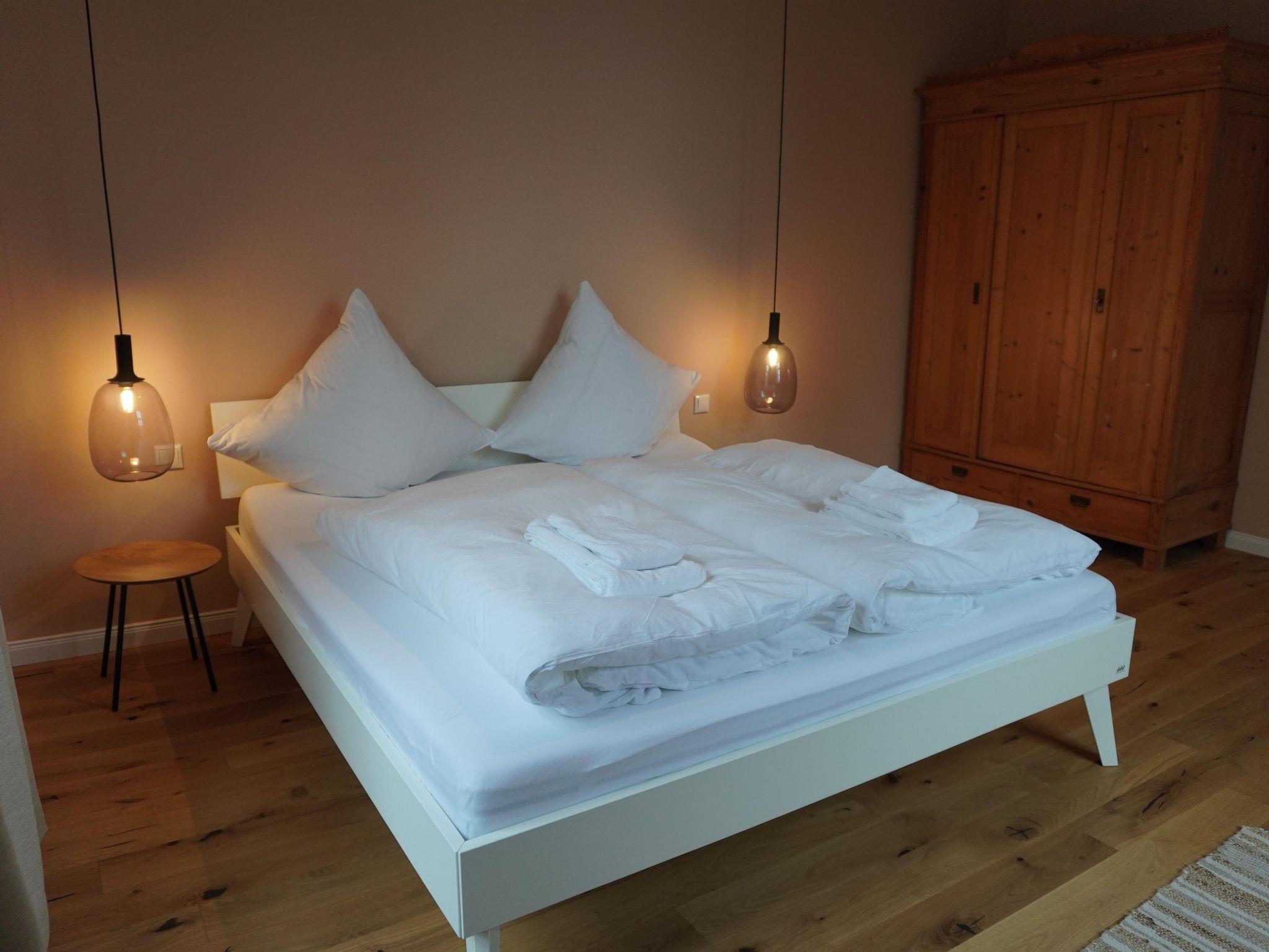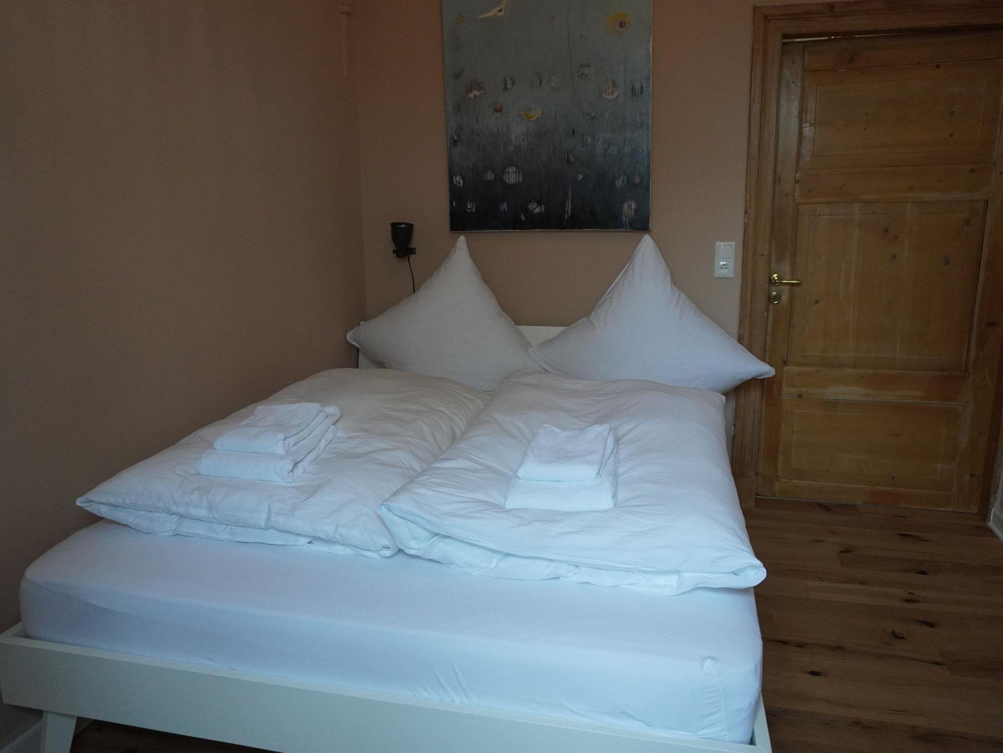 Mädchenzimmer: Das Mädchenzimmer ist eine 65m² große Oberwohnung in der histroische Elemente mit modernen kombiniert wurden. Der Ess- und Wohnbereich beinhaltet eine vollausgestattete Küche, ein Esstisch für vier Personen, eine gemütliche Couch und ein Sat-TV. Ein großes Doppelzimmer und ein Zweibettzimmer dienen als Schlafmöglichkeit. Das Badezimmer ist mit einem WC und einer Dusche ausgestattet. Der Balkon ist nach Südwest ausgerichtet.