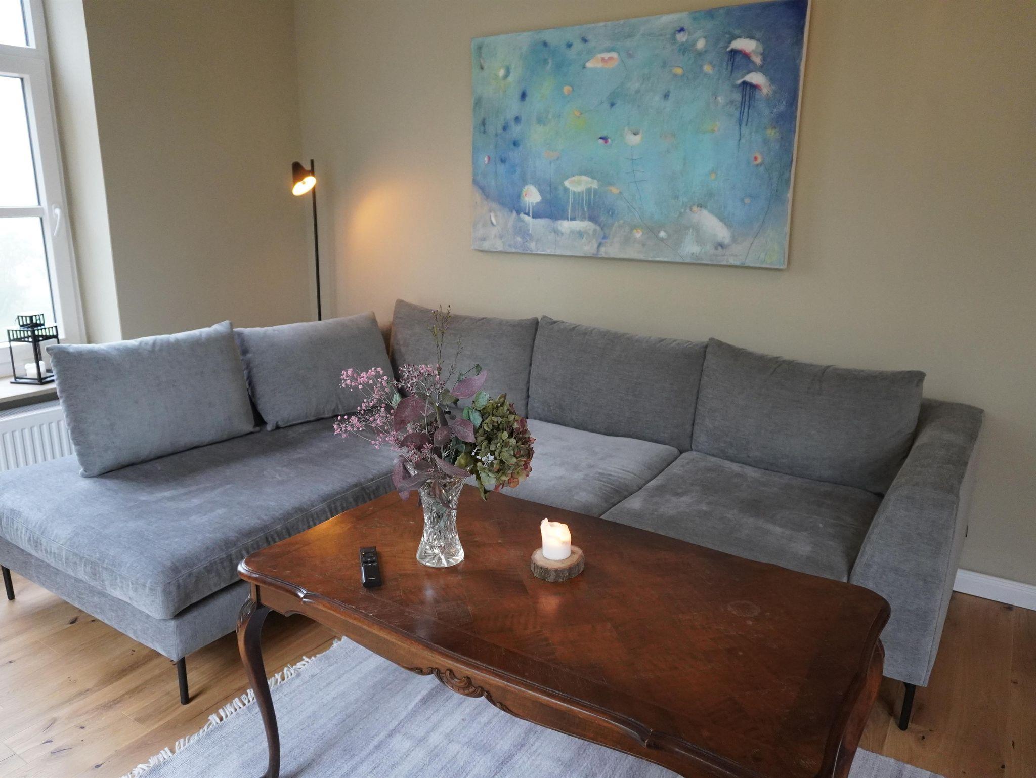 Omas Küche: Die 48m² große Erdgeschosswohnung war früher ein zentraler Punkt für die ganze Familie. Der große Wohn- und Essbereich ist mit einer vollausgestatteten Küche, ein Essbereich, einer großen Schlafcouch, ein gemütlichen Sessel und Sat-TV ausgestattet. Als Schlafmöglichkeit dient ein Doppelzimmer und die Schlafcouch. Das Badezimmer ist mit einem WC und einer Dusche ausgestattet. Die Terrasse ist nach Südwest ausgerichtet.