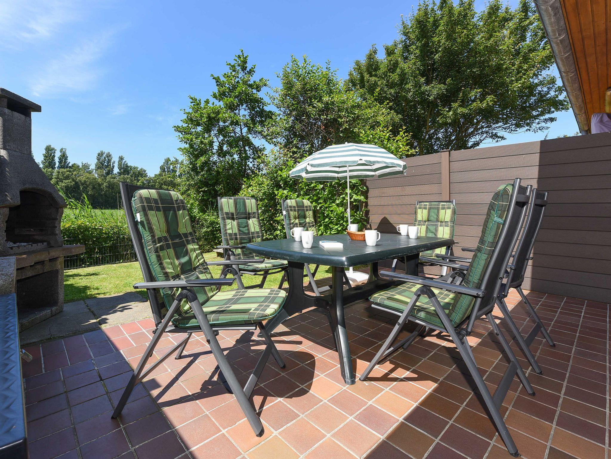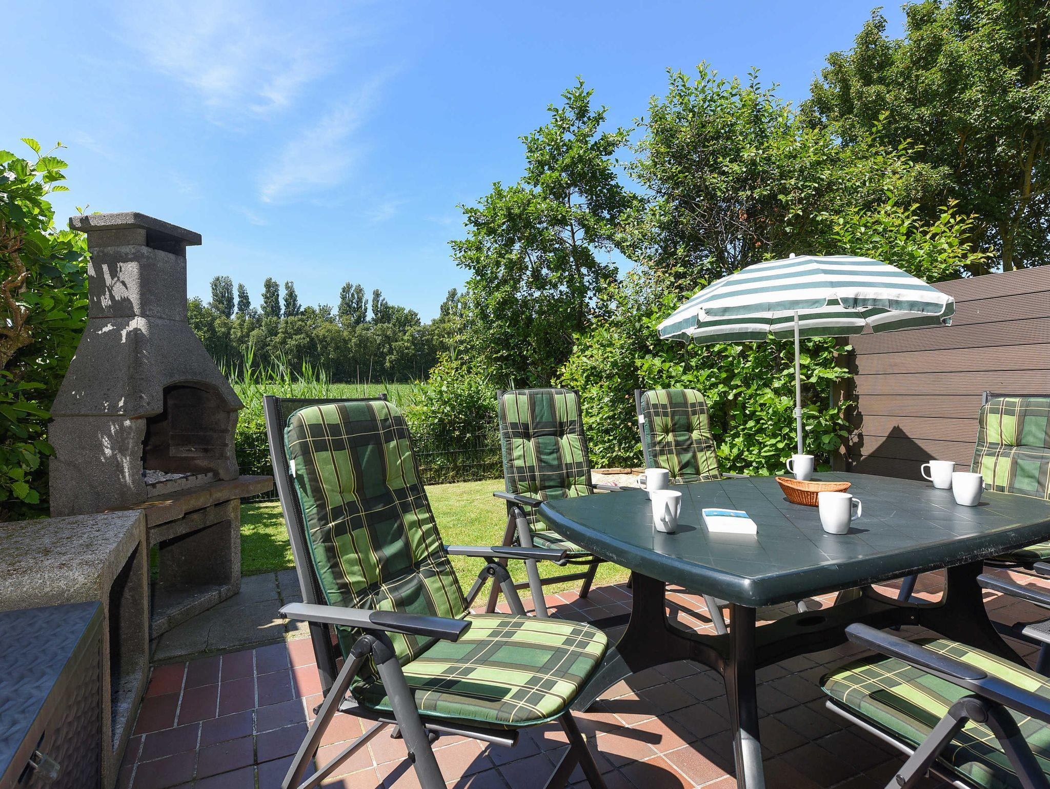 Gemütliches Ferienhaus "Grodehus" in Dornumergrode mit Terrasse, Garten und Blick auf ostfriesische Marschlandschaft.