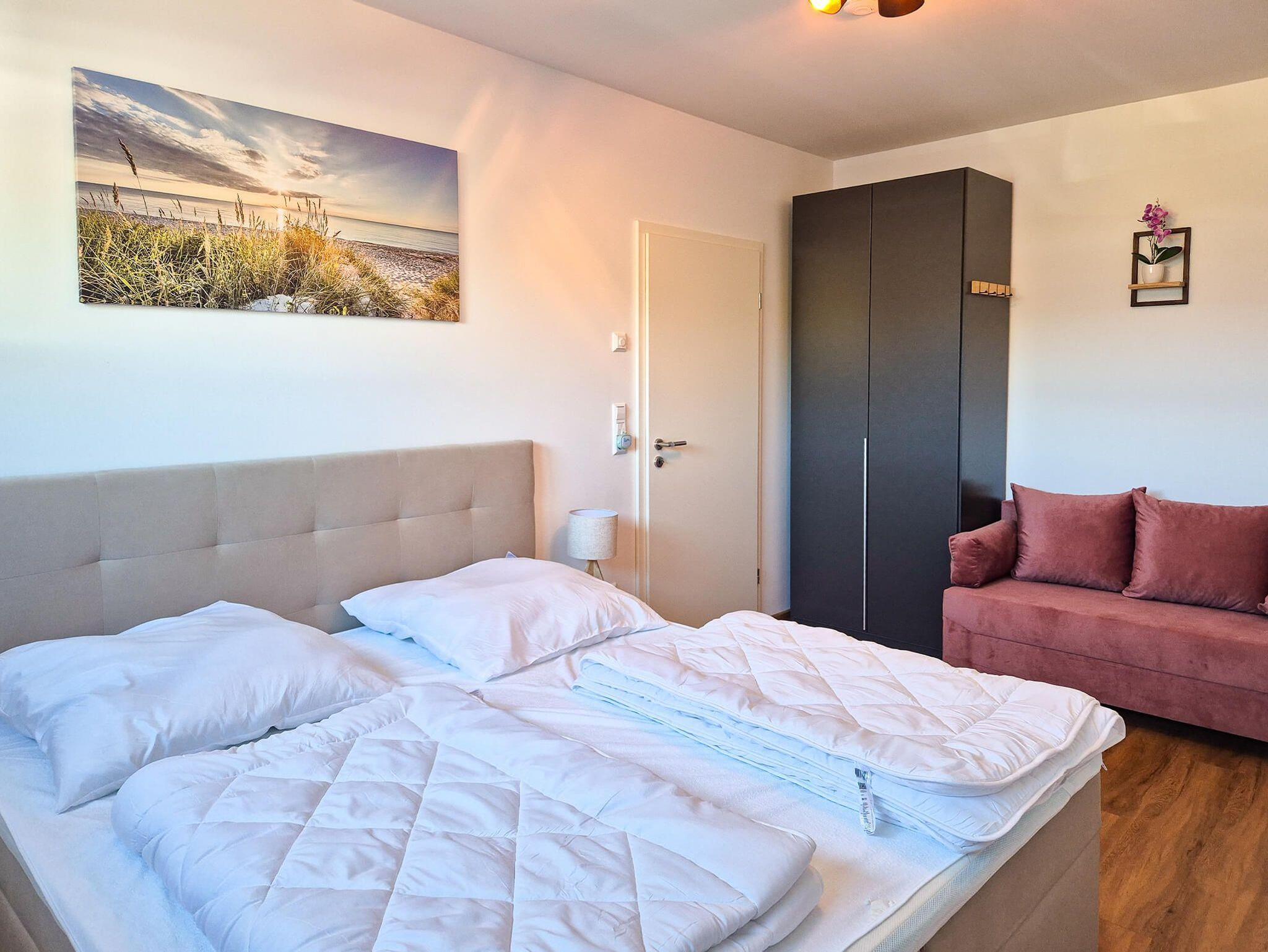 • Schlafzimmer 2: Doppelbett 180x200 cm (Boxspring) + Schlafsofa (z. B. für 1-2 Kinder)