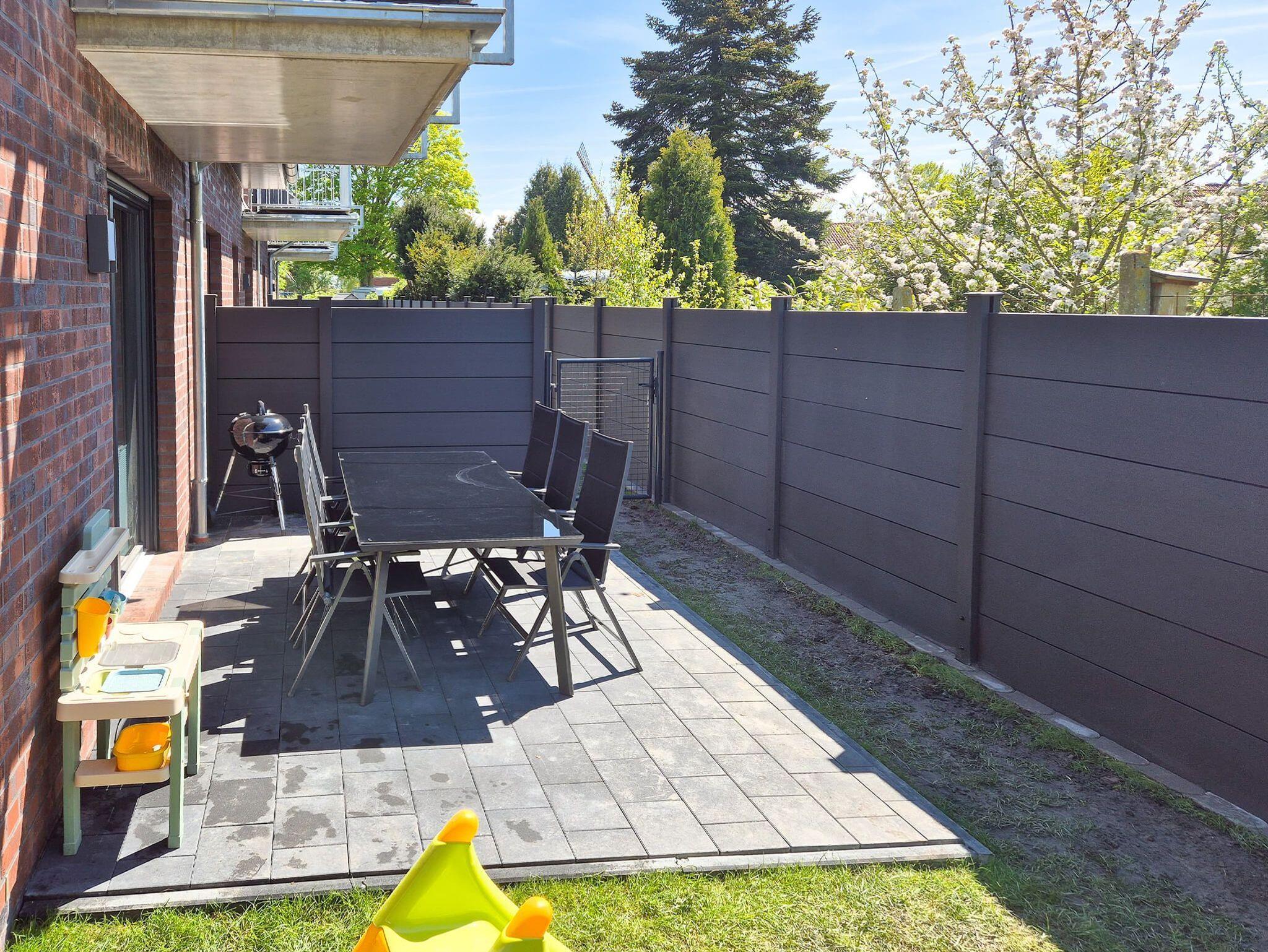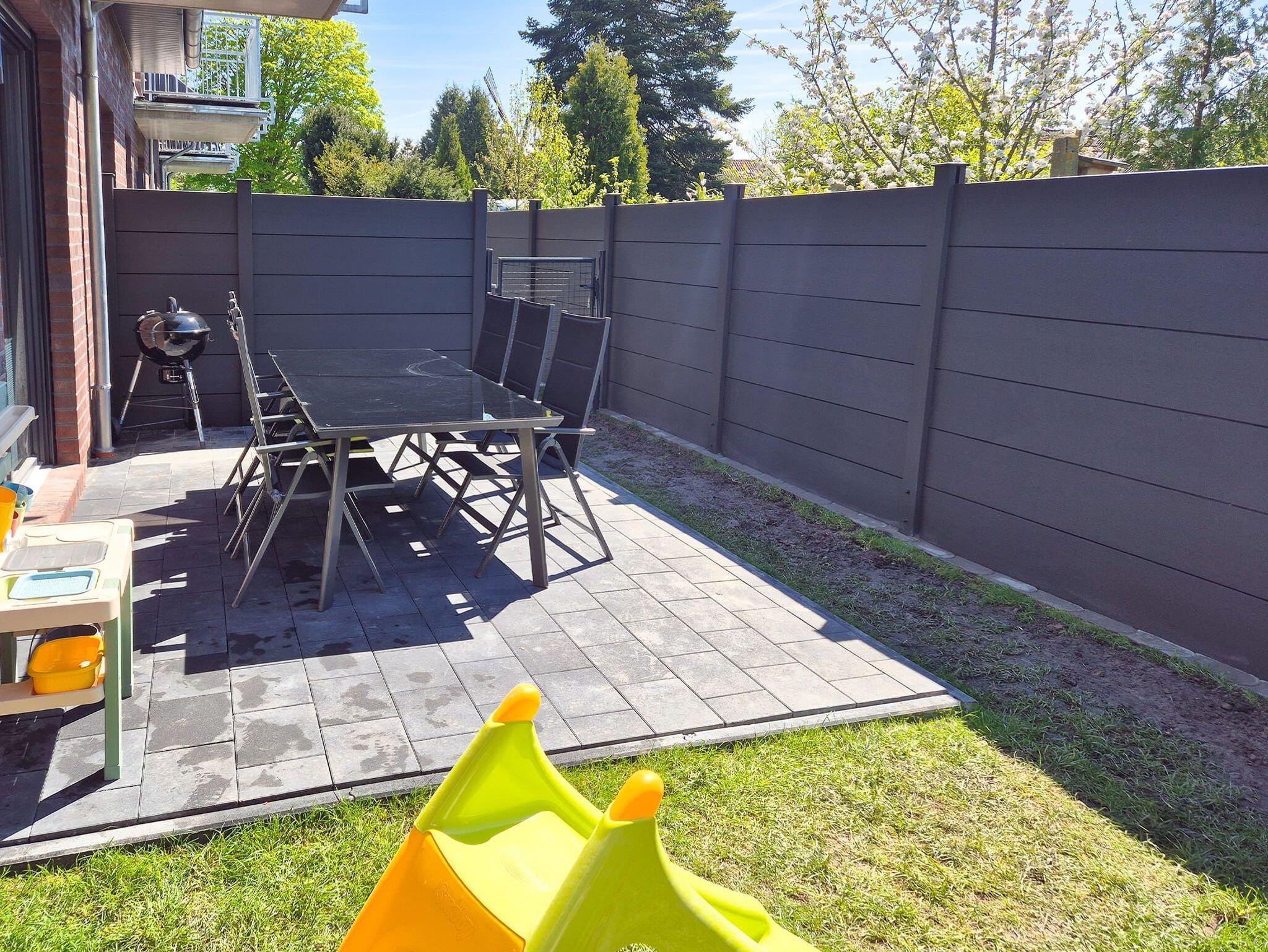 Die 3 Erdgeschosswohnungen verfügen über einen eigenen Garten, der komplett eingezäunt ist (Hunde können frei laufen) und zusätzlich gibt es jeweils einladende Sitzgelegenheiten und Einrichtungen für die Kinder. Die Obergeschosswohnung ist mit einem Balkon ausgestattet.