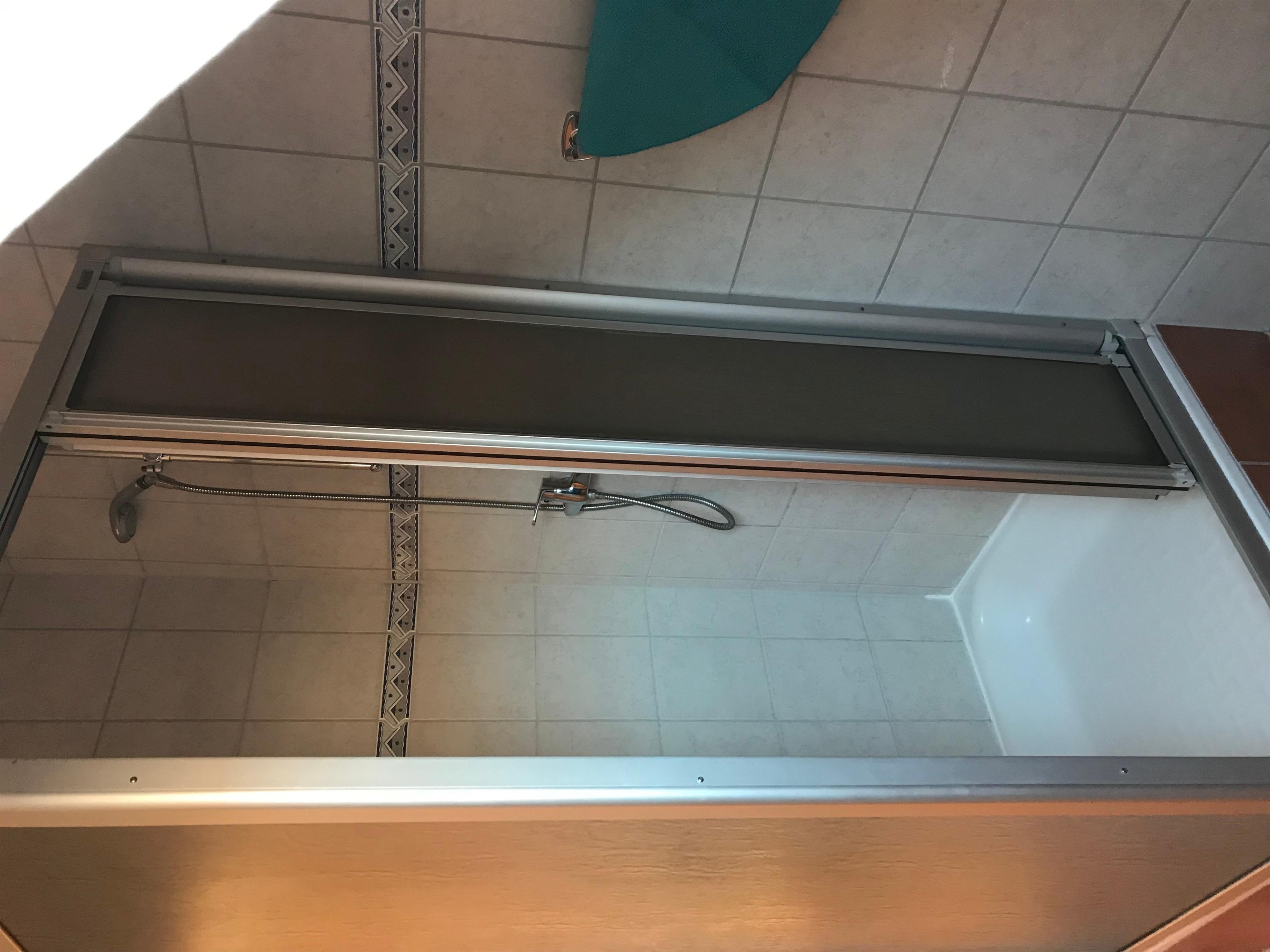 Das Badezimmer ist mit einer Dusche ausgestattet.
