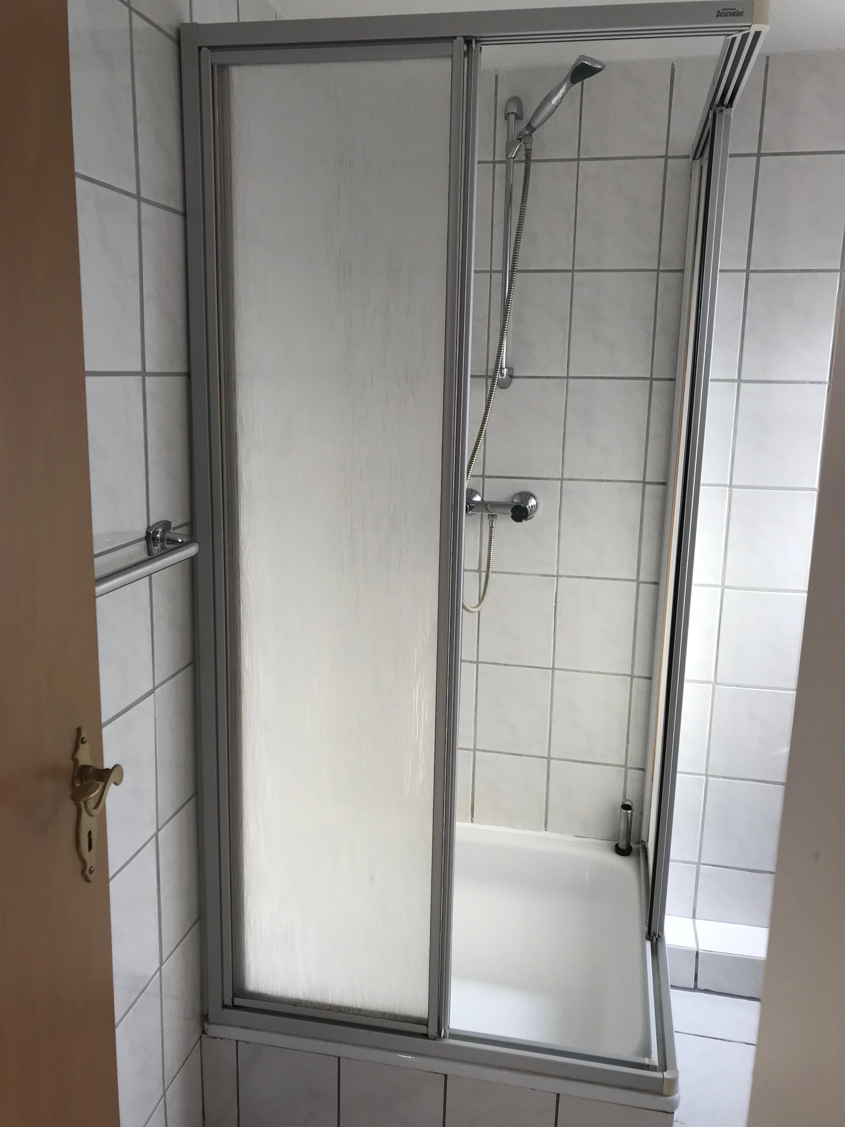 Das Badezimmer ist mit einer Dusche ausgestattet.