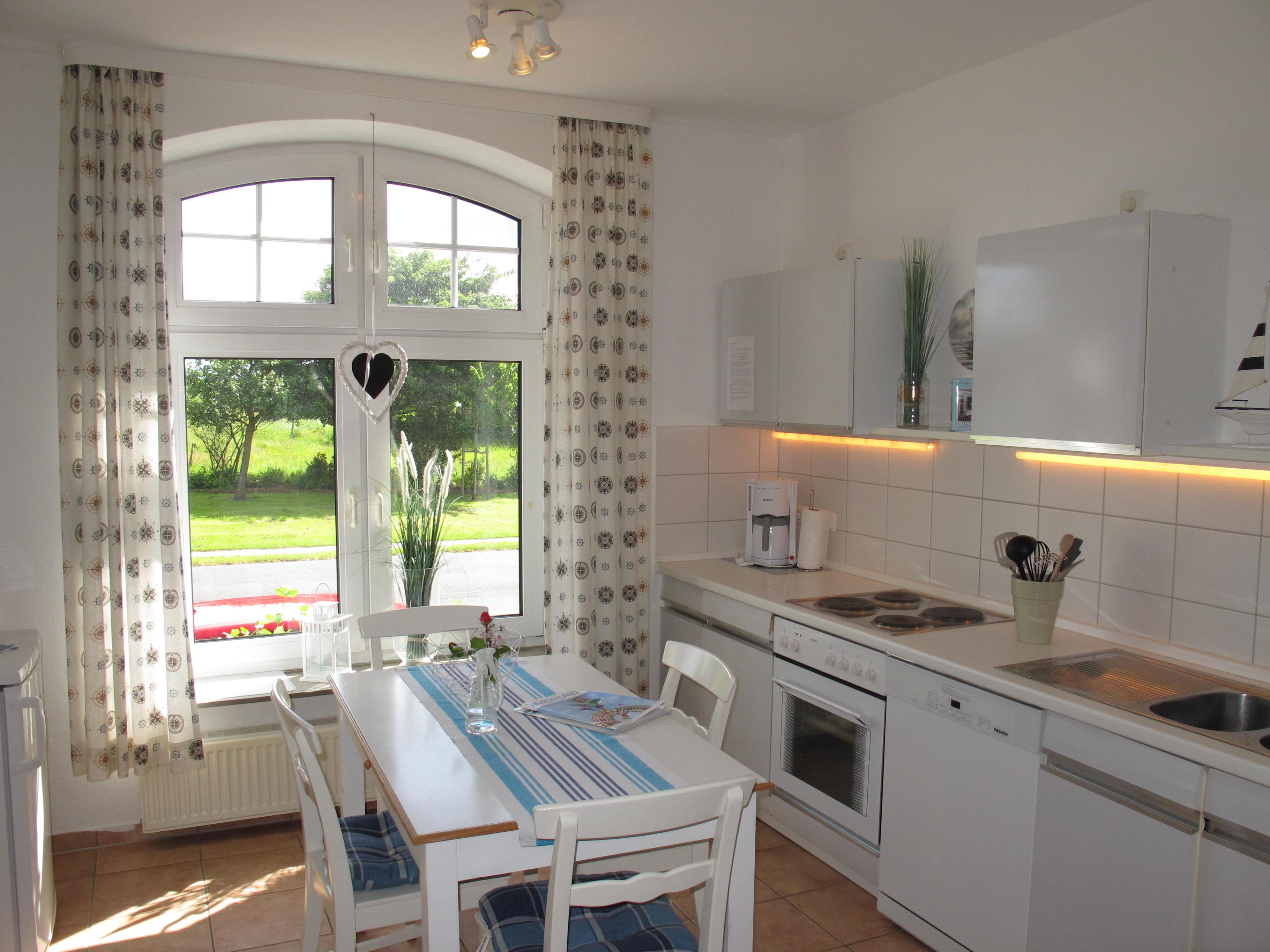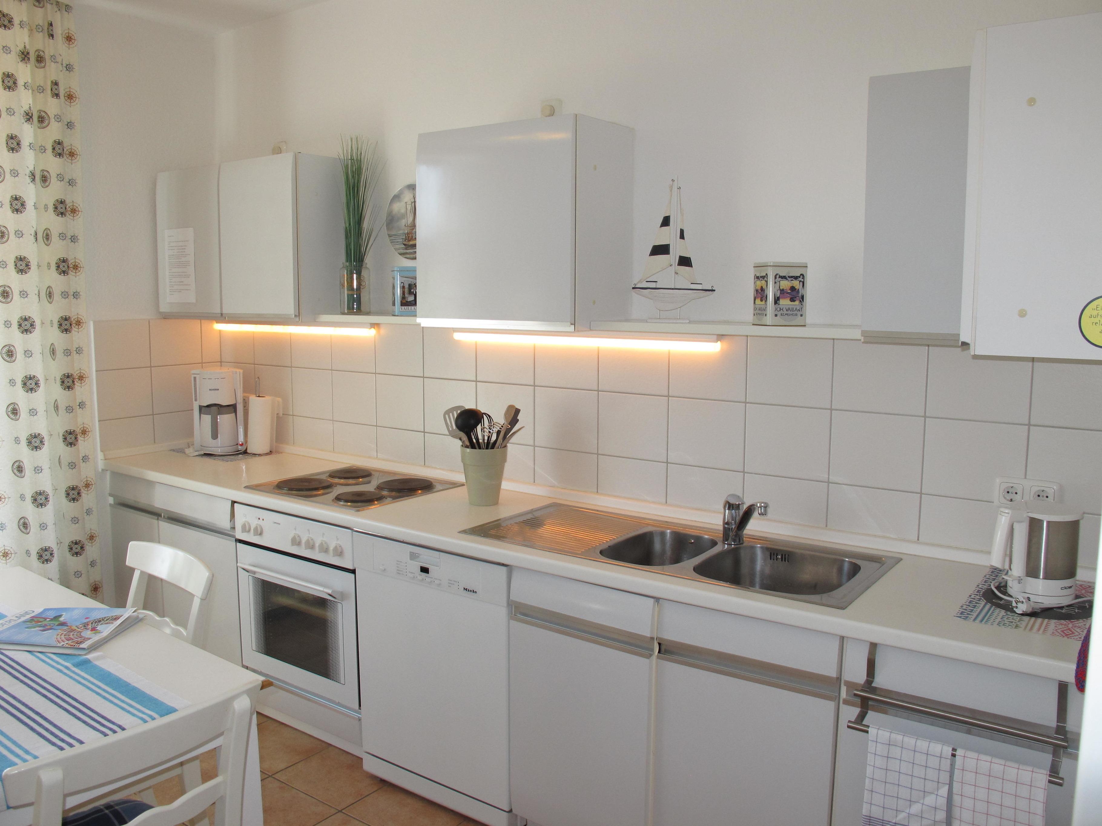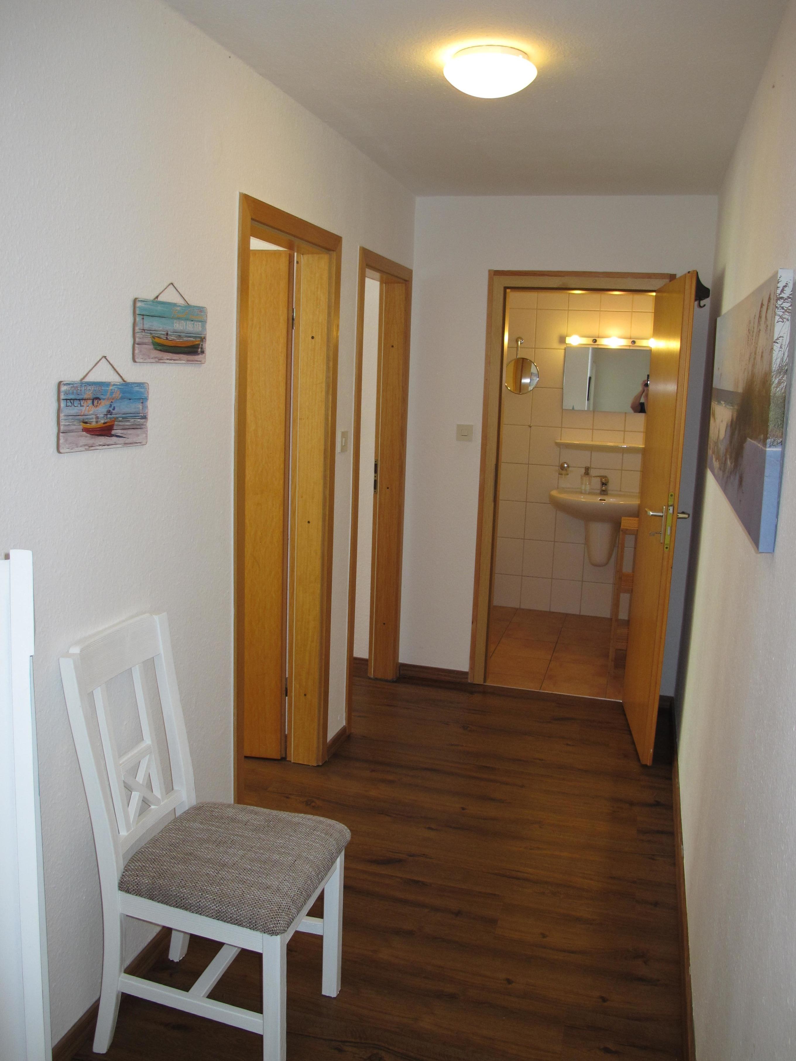 Zugang über zentrales Treppenhaus zur Wohnung (sep. Eingang). Flur mit Garderobe. Großen Wohnraum mit Sitzgruppe und hübschen Holz-Bauernmöbeln. Separate Küche mit Einbauherd (4 Platten, Backofen), Mikrowelle, Geschirrspüler, Toaster, Kaffeemaschine, Wasserkocher, Kühlschrank und Eßplatz. 2x Zweibettzimmer. Dusche. Großes sep.WC. NICHTRAUCHEROBJEKT !