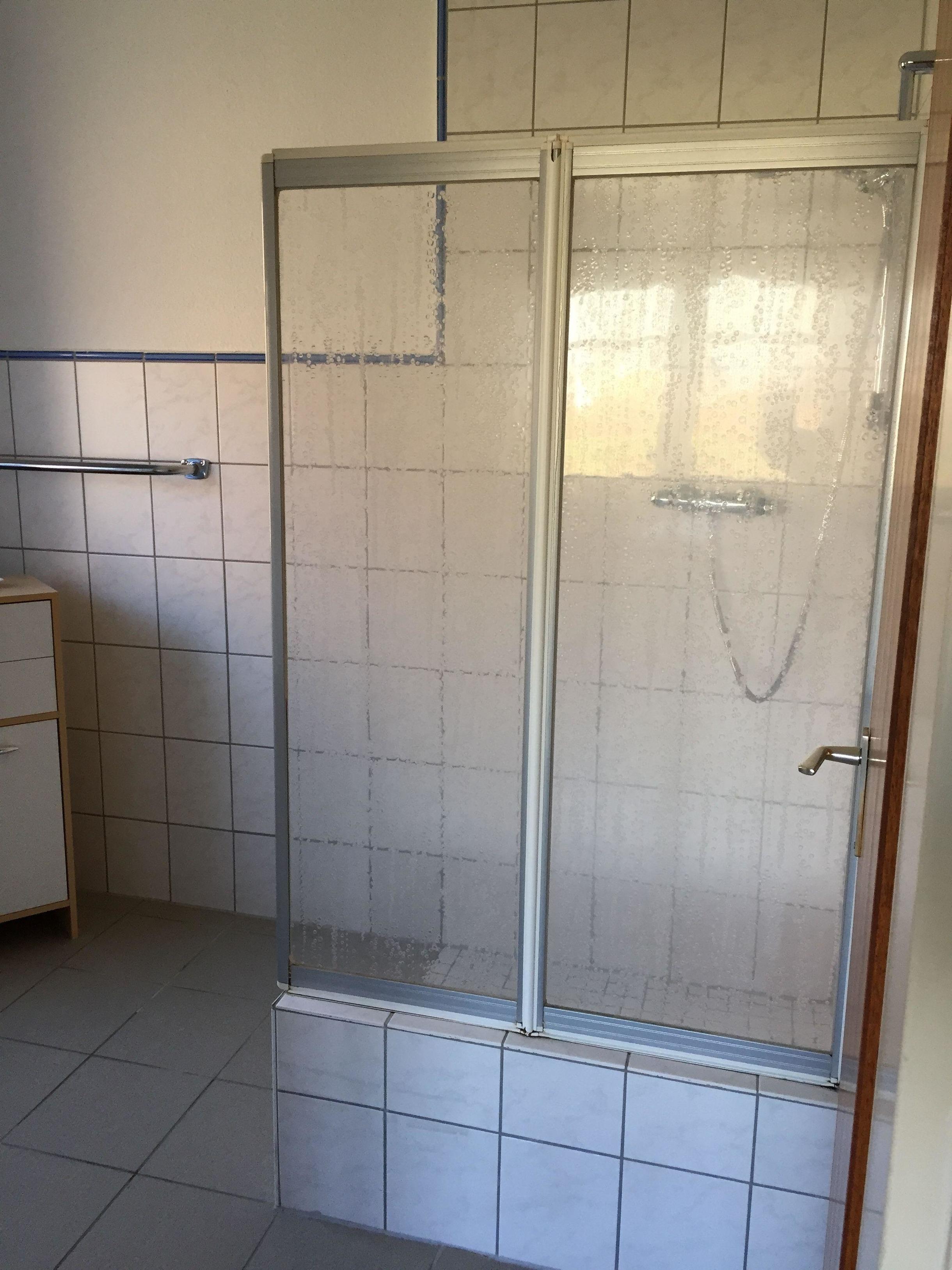 Das Badezimmer ist mit einer Dusche ausgestattet.