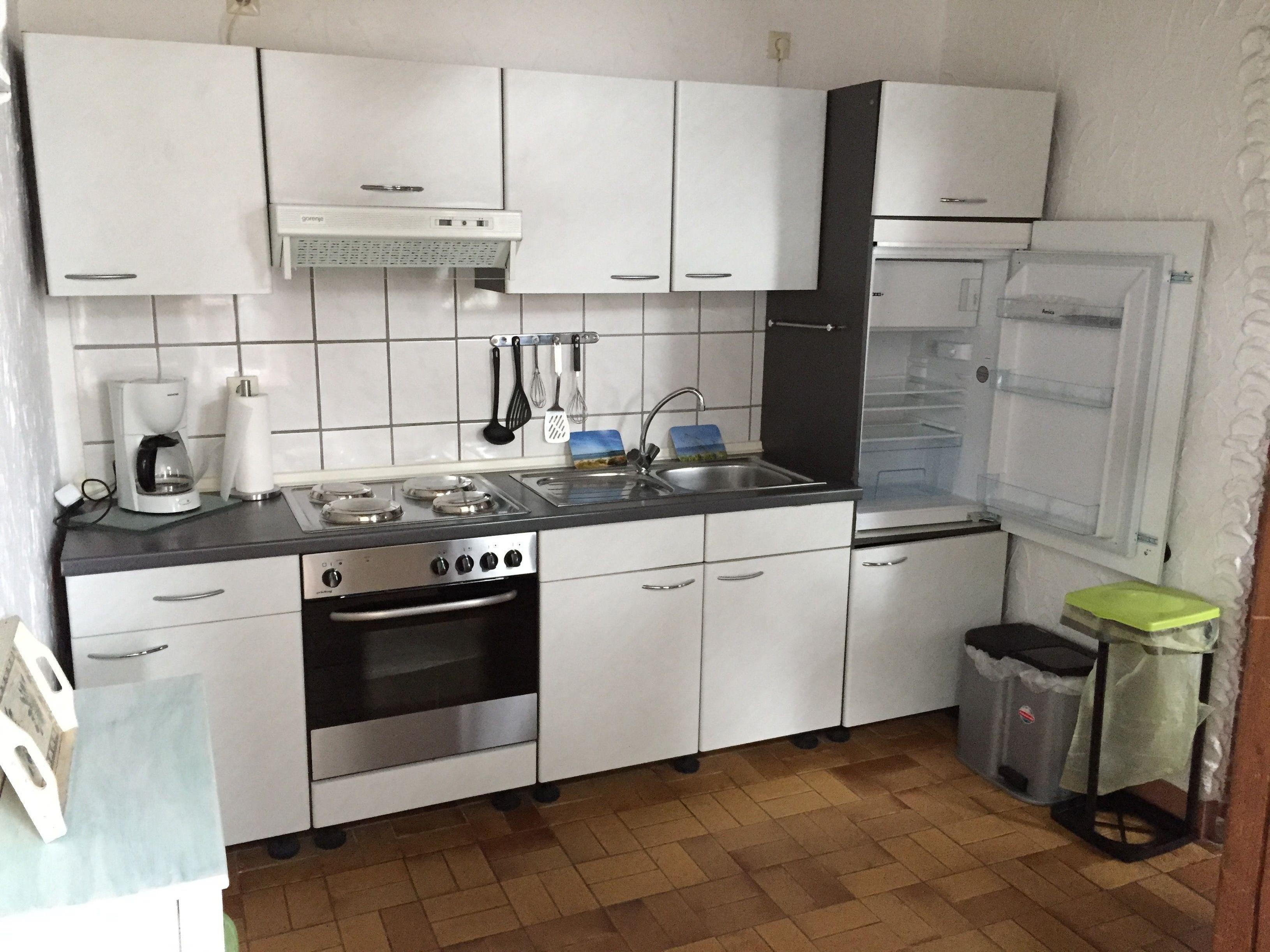 Diese 55 qm große Ferienwohnung hat 4 Räume, bestehend aus einem Wohnzimmer, Küche, Schlafzimmer und einem Badezimmer. Das Wohnzimmer hat ein Sofa, einen Couchtisch, einen SAT-Fernseher und einen Eßtisch mit 4 Stühlen. Die Küche ist mit Wasserkocher, Kaffeemaschine, Handmixer, Herd, Backofen, Toaster, Kühlschrank, Geschirr, Besteck, Pfannen und Töpfen ausgestattet.