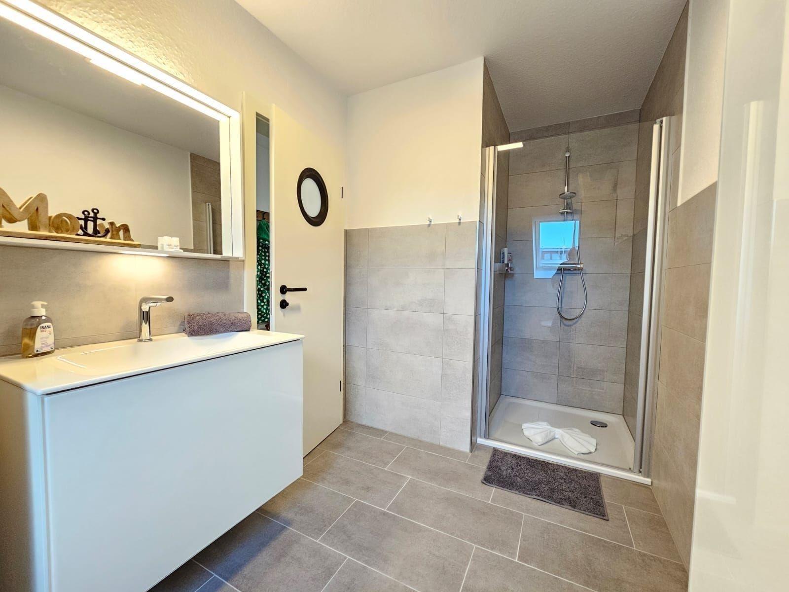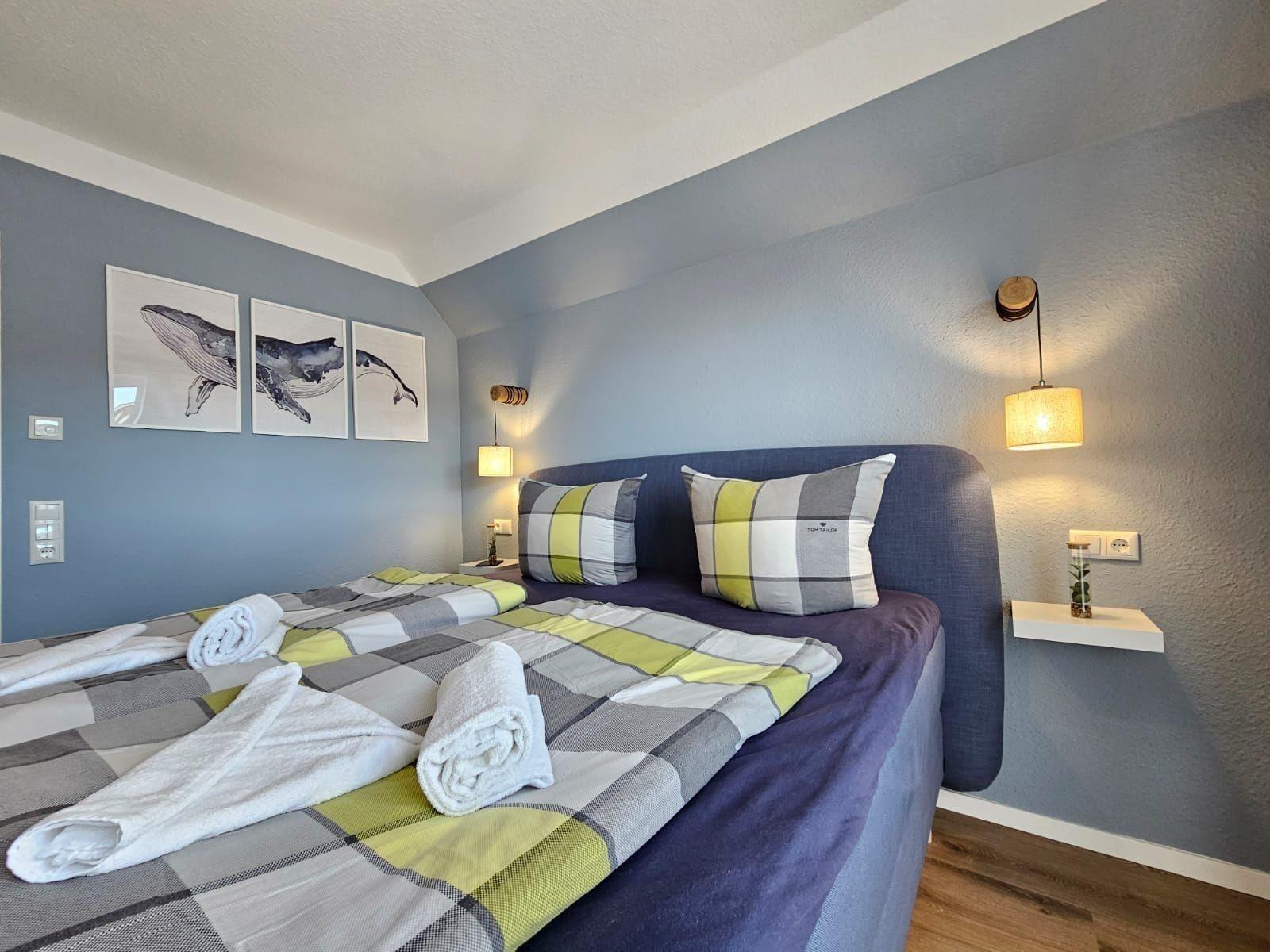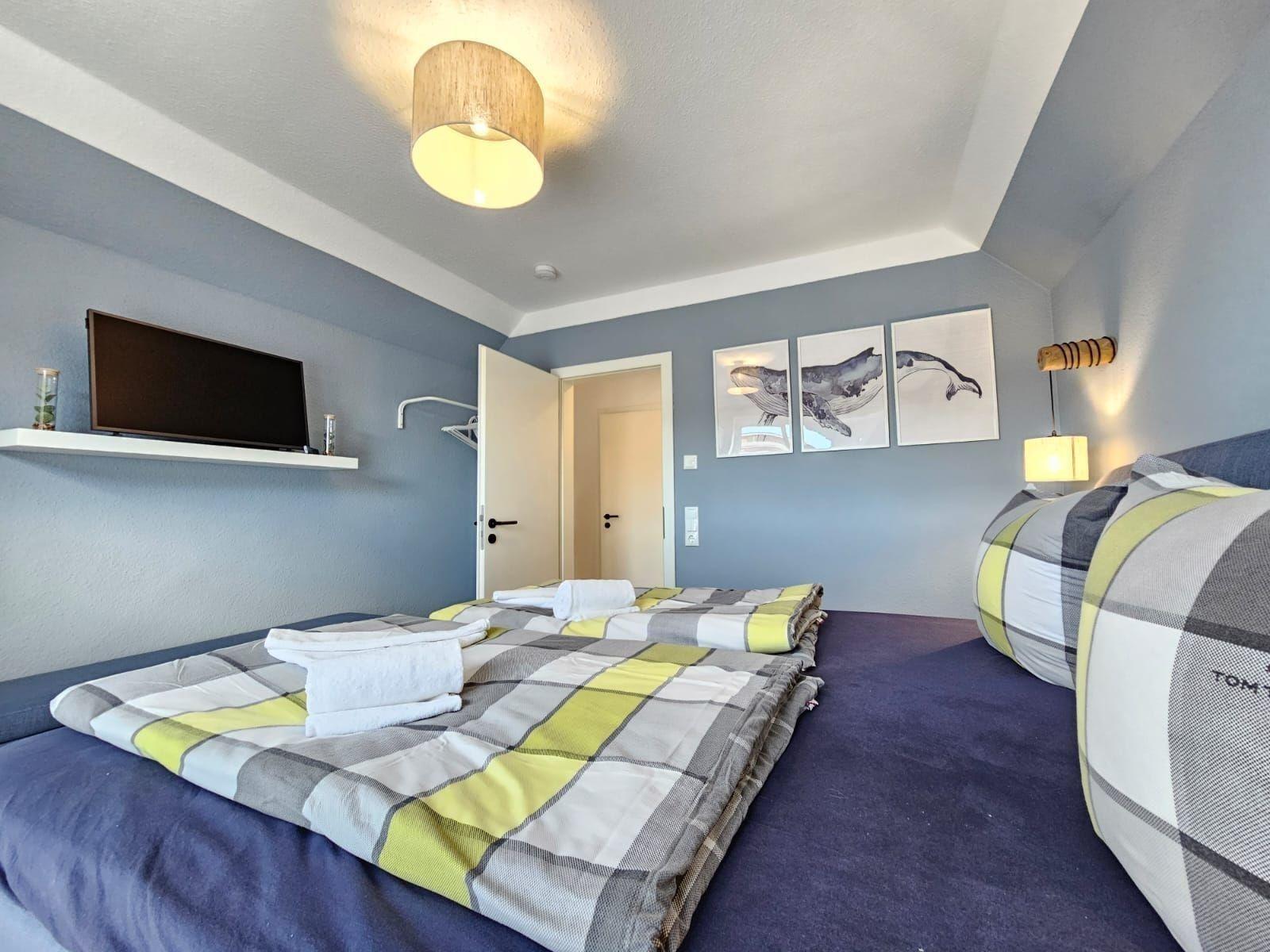 Die Ferienwohnung bietet ein modernes und komfortables Ambiente, ideal für Entspannung und Erholung. Ein Schlafzimmer mit einem Doppelbett, ein Wohnschlafzimmer mit zwei Einzelbetten sowie eine bodengleiche Dusche im Badezimmer sorgen für höchste Flexibilität. Die offene Küche ist mit einem Geschirrspüler, Elektro-/Gasherd, Backofen, Mikrowelle, Kühlschrank, Kaffeemaschine und Toaster ausgestattet, was das Kochen zum Vergnügen macht. WLAN ermöglicht zudem eine stets verfügbare Internetverbindung.
