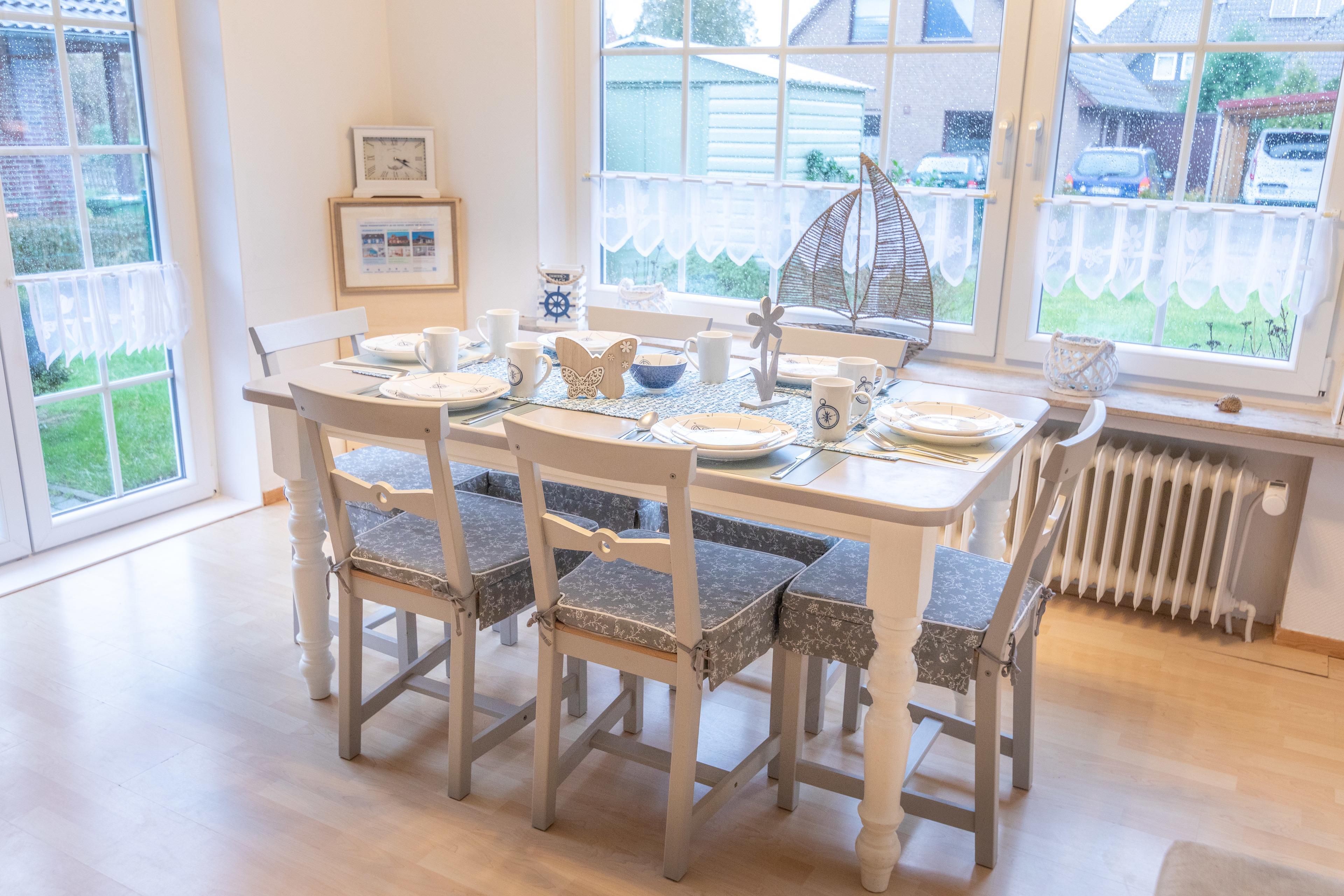 Schöne Ferienhaushälfte mit eigenem Eingang, Terrasse, komplett umzäunten Garten und PKW-Stellplatz, im ruhigen Küstenort Dornum und nicht weit vom UNESCO Weltnaturerbe ostfriesischen Wattenmeer/Nordseeküste entfernt.