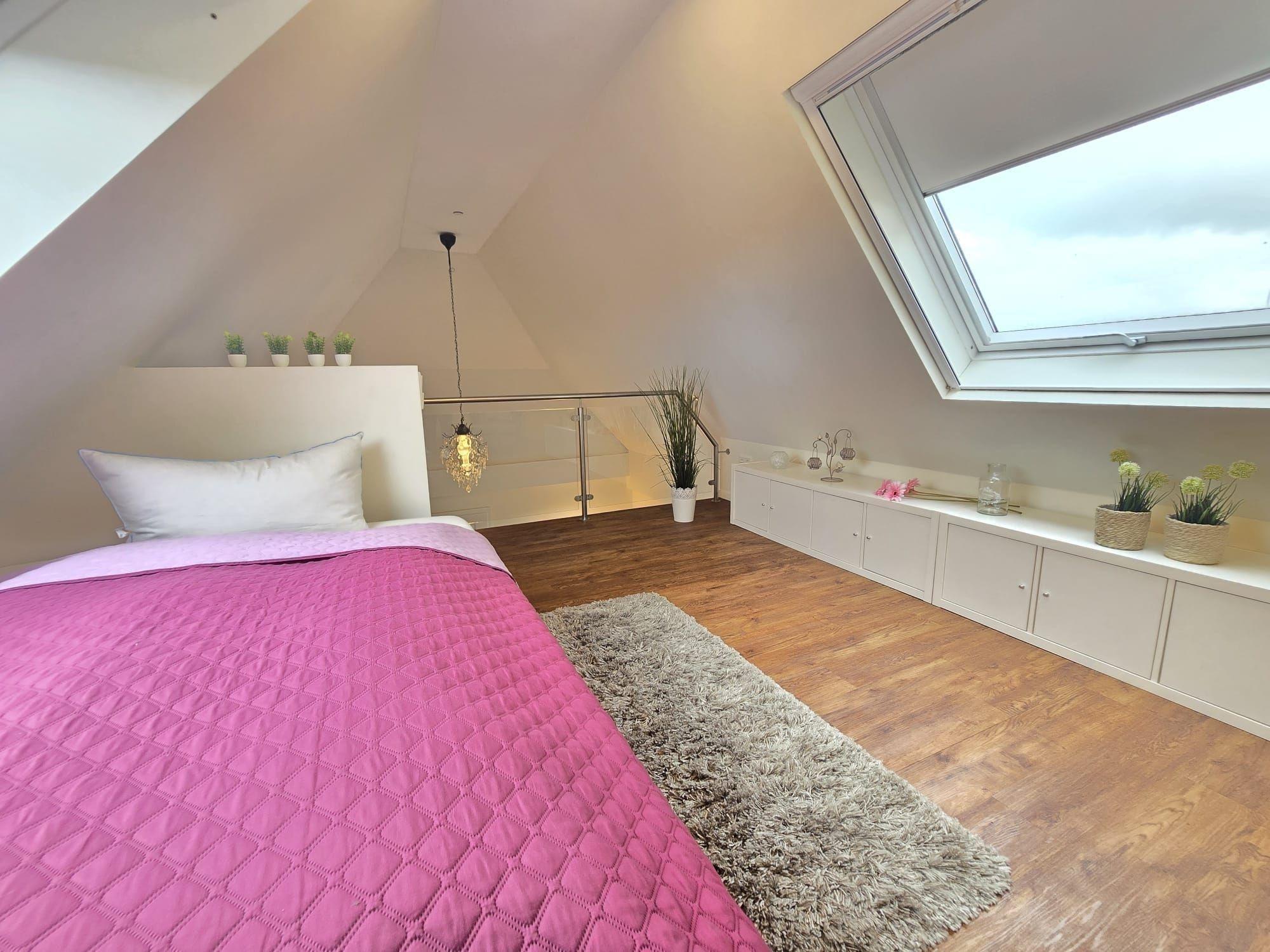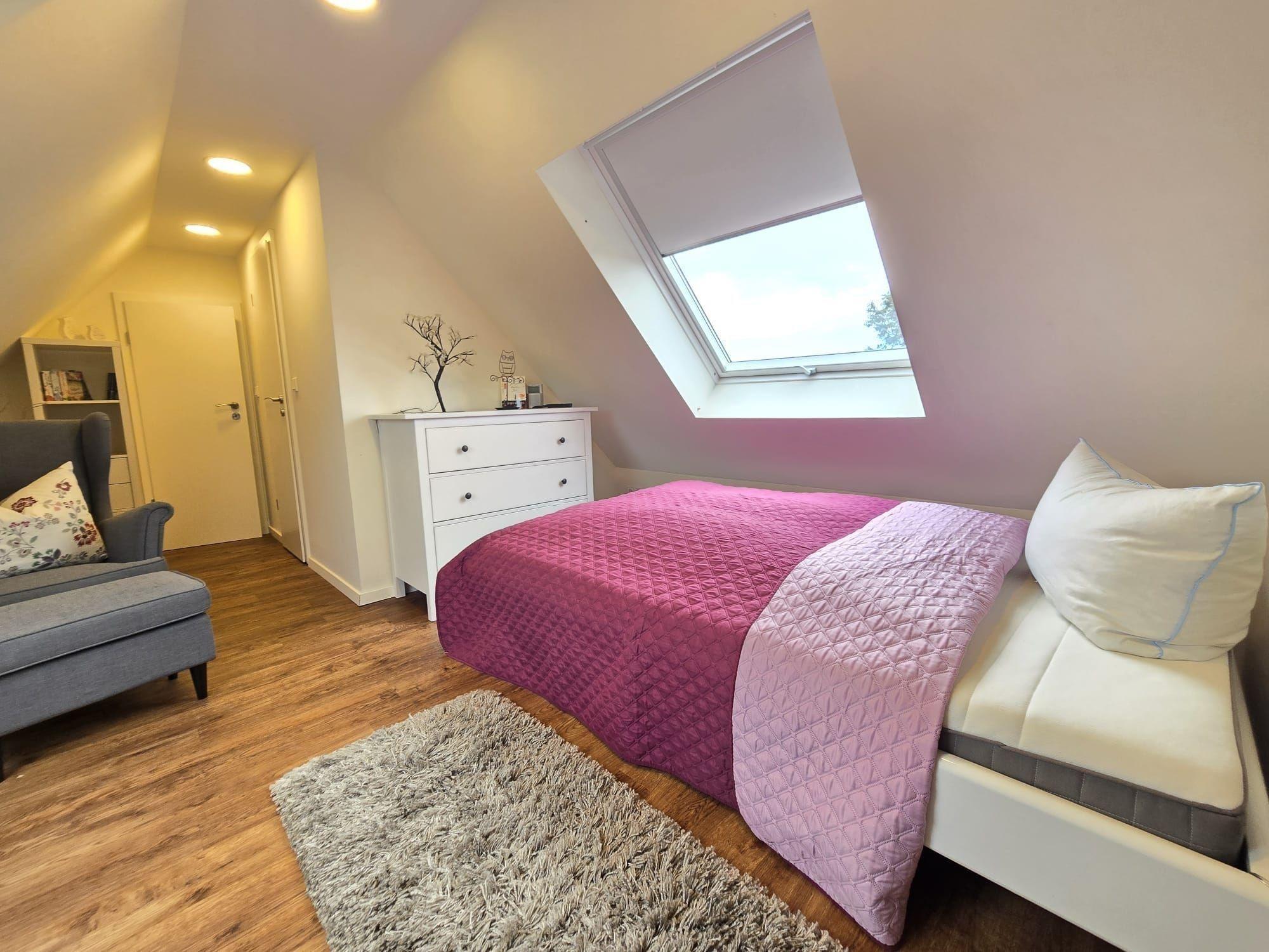 Die Ferienwohnung bietet eine moderne und komfortable Ausstattung, ideal für einen entspannten Aufenthalt. Sie verfügt über zwei Schlafzimmer mit zwei Doppelbetten und einem Einzelbett, die Allergiker geeignet sind. Die offene Küche ist mit einem Geschirrspüler, Elektro-/Gasherd, Backofen, Mikrowelle, Kühlschrank, Kaffeemaschine und Toaster ausgestattet. Ein Kinderhochstuhl steht bereit. Das Badezimmer mit Fenster und einer bodengleichen Dusche samt einem Gäste-WC sorgt für zusätzlichen Komfort.