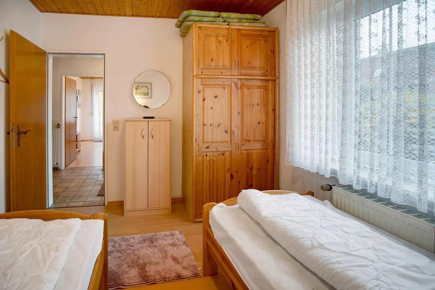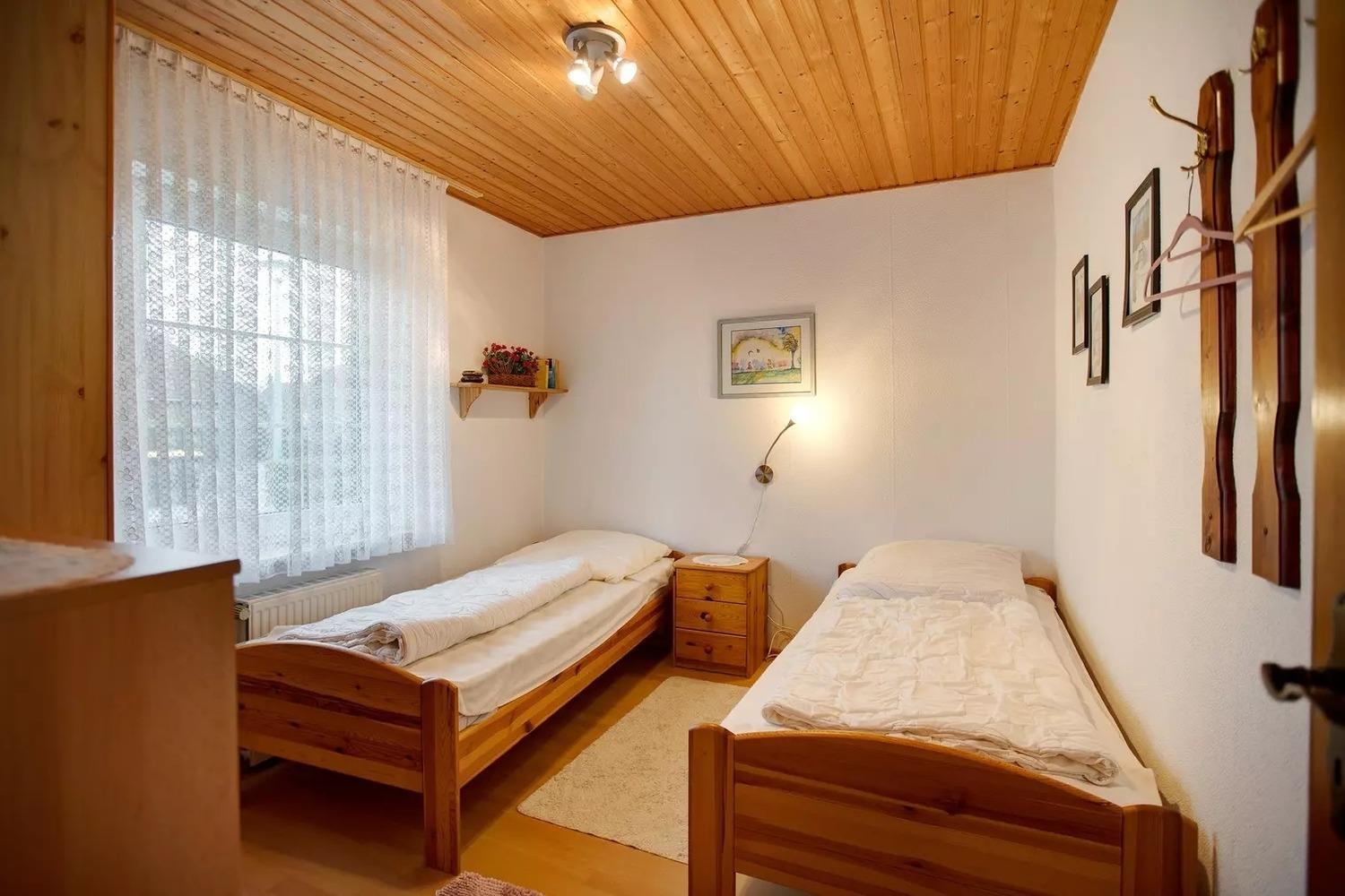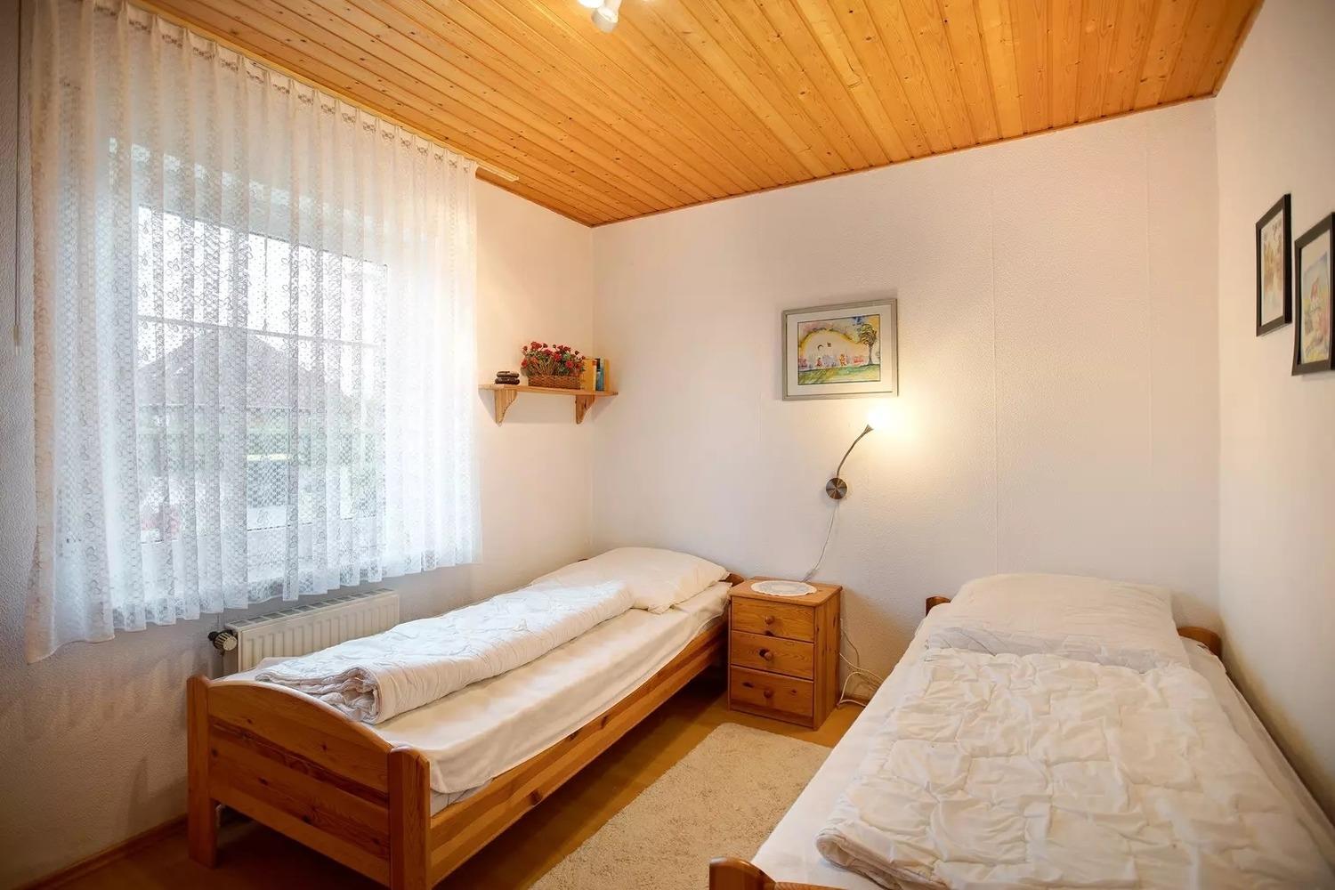Schlafzimmer 2 hat 2 Einzelbetten.