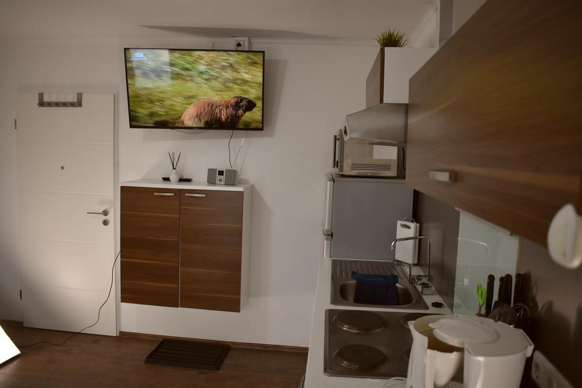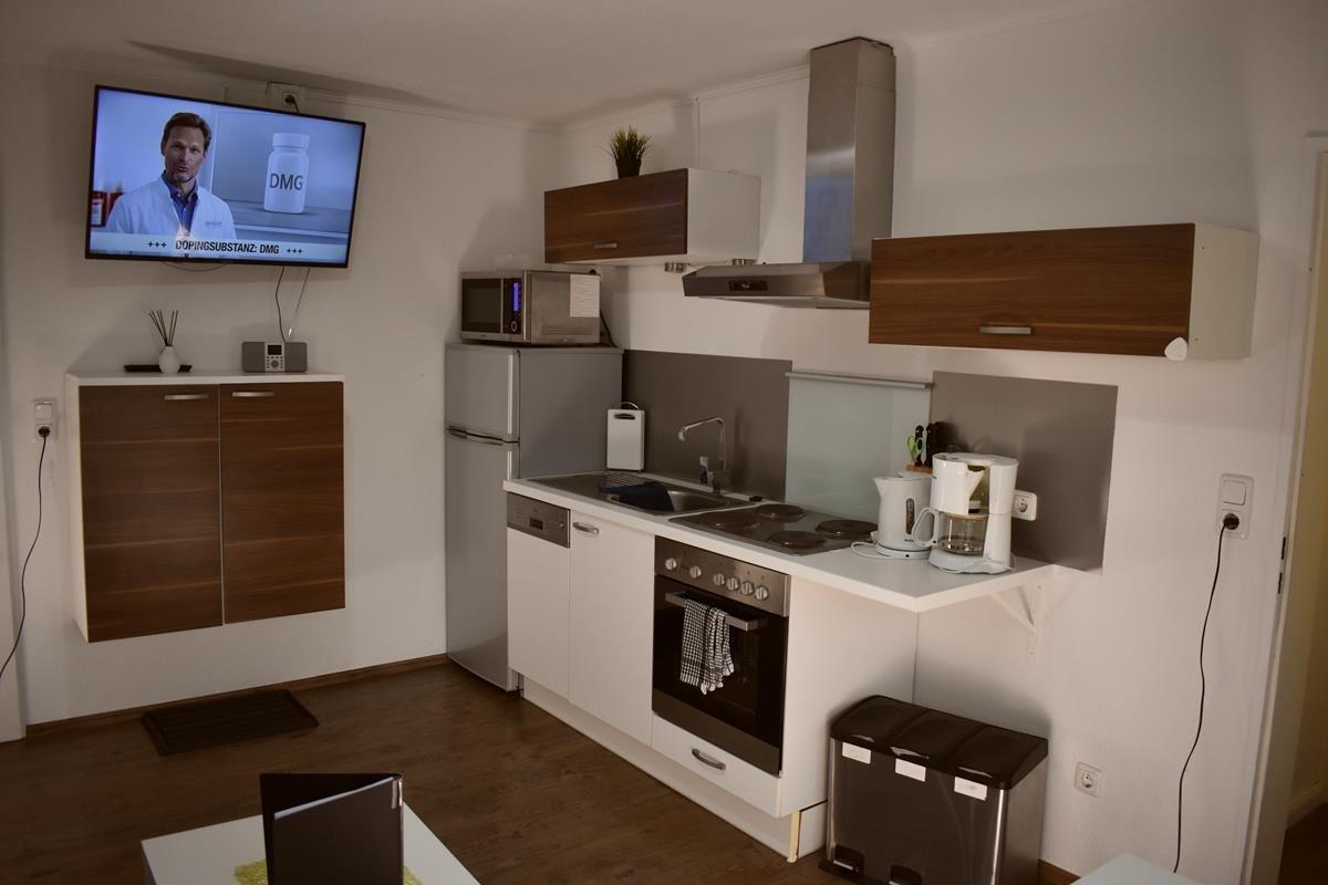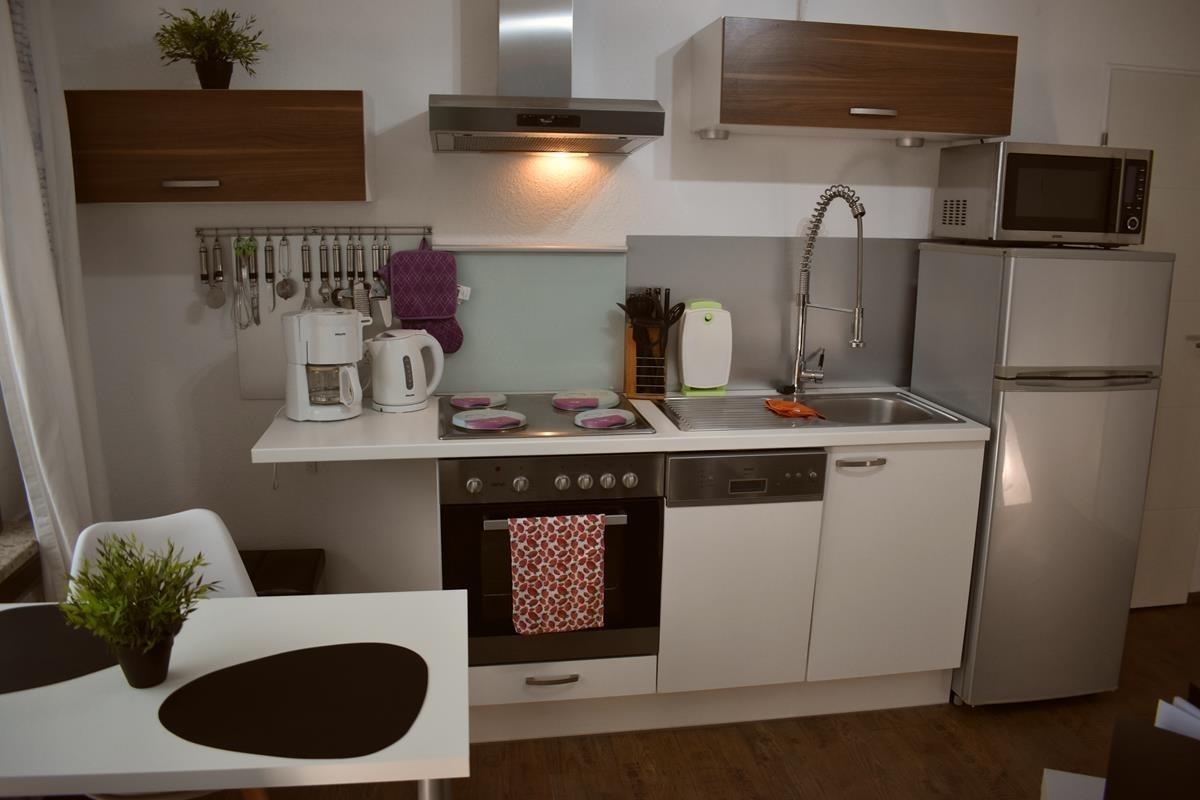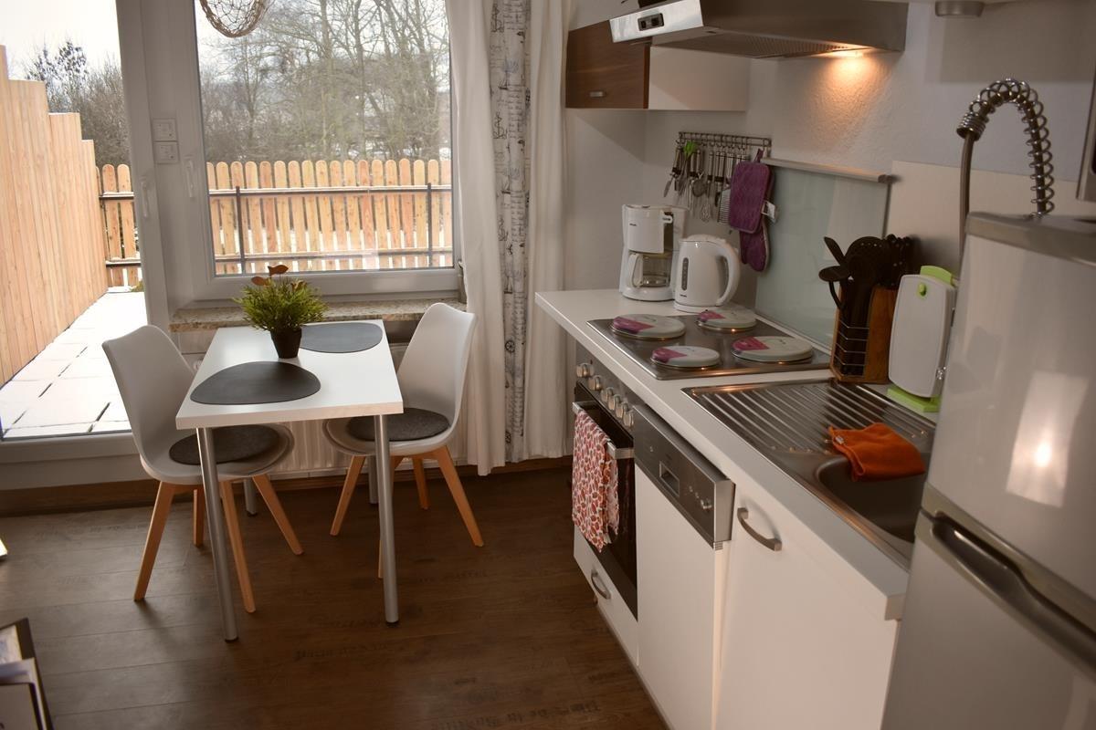 Die Ferienwohnung für maximal zwei Personen verfügt über eine stilvolle Wohnküche, die mit modernen Annehmlichkeiten ausgestattet ist und zum gemeinsamen Kochen und Verweilen einlädt. Der separate Schlafraum garantiert Ihnen eine ruhige Nachtruhe. Vom Schlafzimmer und der Wohnküche aus gelangen Sie auf die sonnige Terrasse, die zu entspannten Stunden im Freien einlädt. Genießen Sie Ihr Frühstück im Freien oder lassen Sie den Abend bei einem Glas Wein unter dem Sternenhimmel ausklingen.
