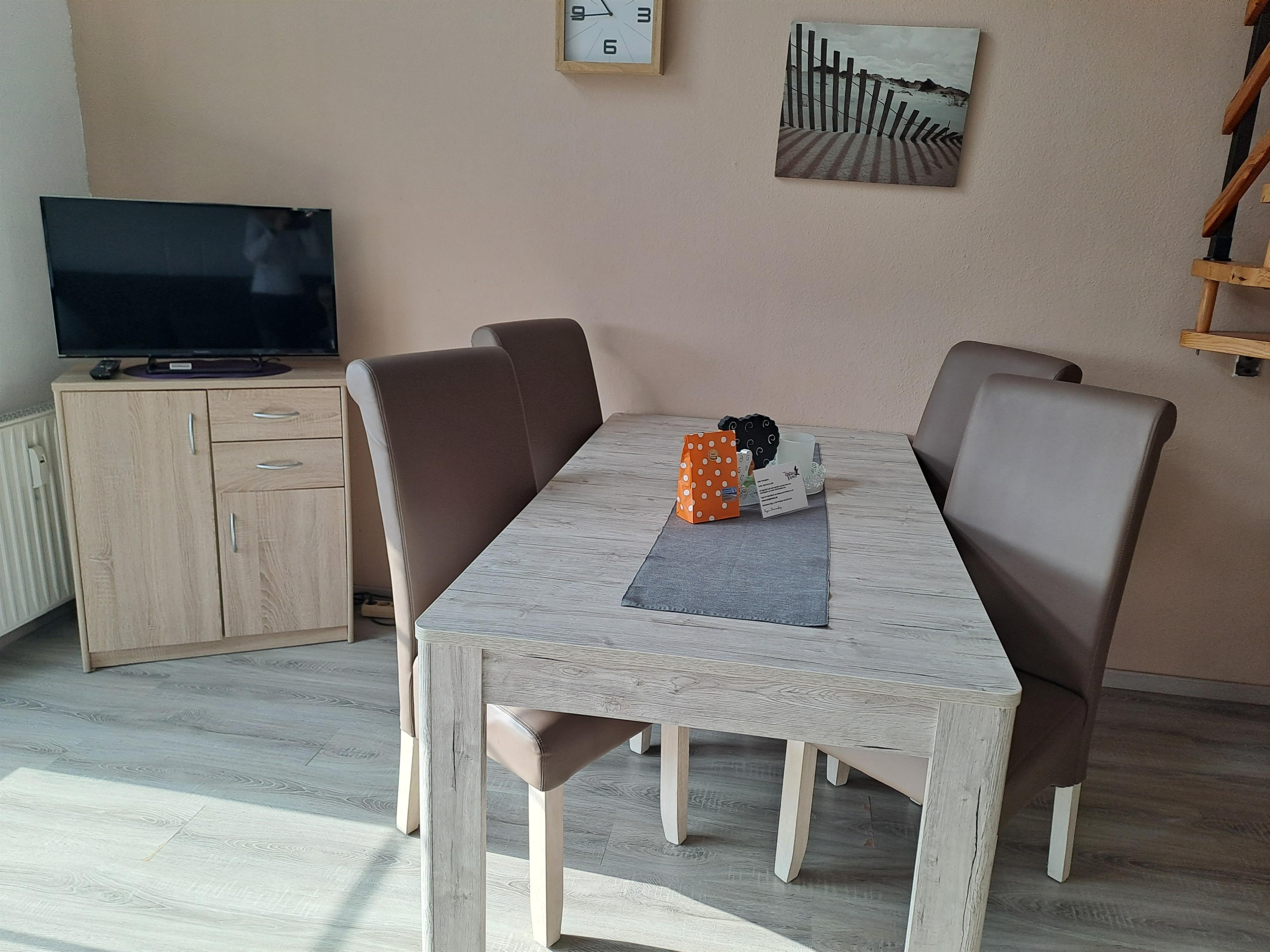Für gemütliche Abende ist die Ferienwohnung mit einem Fernseher ausgestattet.