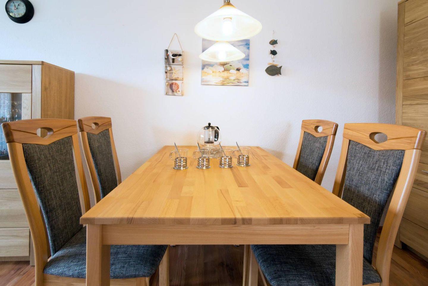 Die Wohnung Regina verfügt über einen gemütlichen Wohn- und Essbereich mit angrenzender voll ausgestatteter Küche, zwei Schlafzimmer (mit einem Ehebett und einer Schlafcouch) und ein Duschbad mit WC und Waschmaschine. Zur Wohnung gehört ein Balkon auf dem Sie sonnige Tage entspannt ausklingen lassen können. Vor dem Haus ist Ihr beschilderter PKW-Stellplatz zu finden. Das WLAN steht Ihnen kostenlos zur Verfügung.