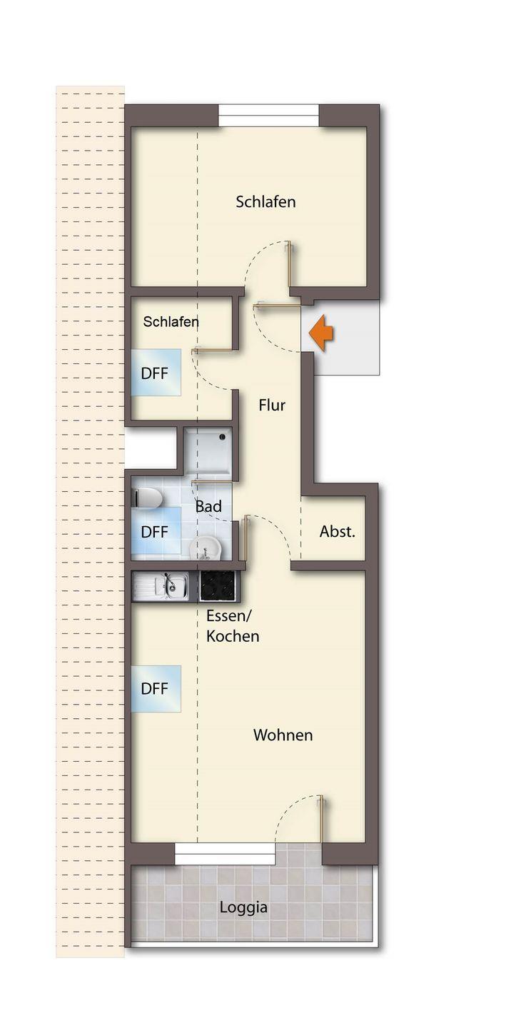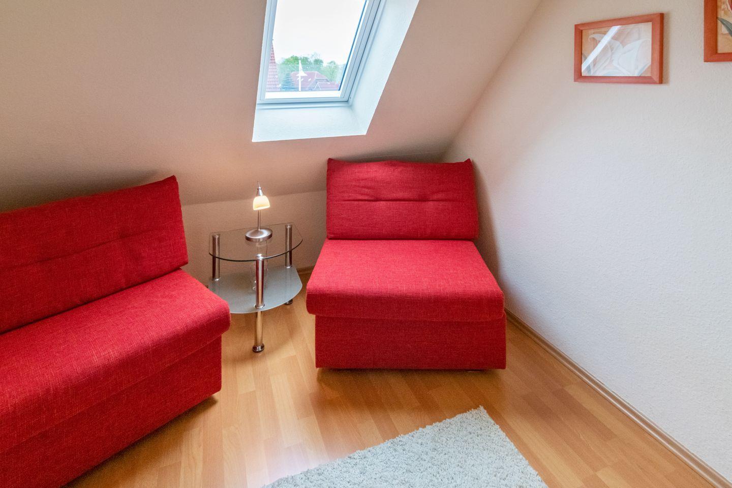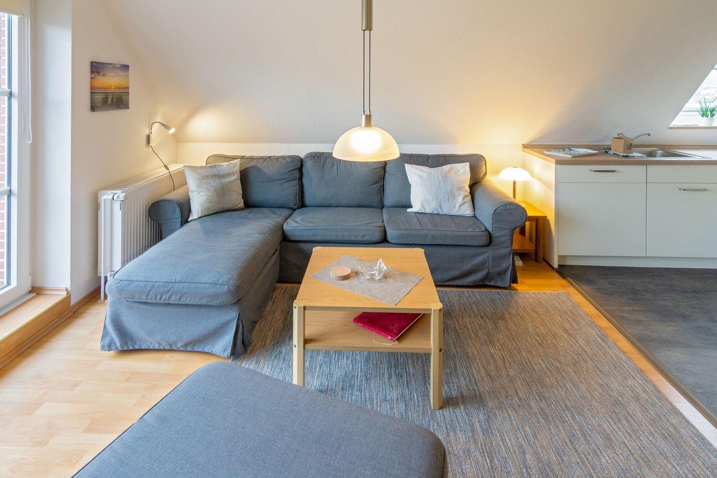 Die Oberwohnung befindet sich in einem 4-Familienhaus in der Herrlichkeit Dornum mit historischem Ortskern, Wasserschloss und Beningaburg. Die ca. 50 m² große Wohnung verfügt über einen Wohn- und Essbereich mit voll ausgestatteter Küche, zwei Schlafzimmer (Doppelbett und zwei Schlafsessel) und ein Duschbad mit WC. Der Balkon bietet einen tollen Blick über Wiesen und Felder. Hier ist ausreichend Platz für 2 Erwachsene und 2 Kinder. Ein PKW-Stellplatz sowie ein Gemeinschaftsgarten stehen Ihnen zur Verfügung.