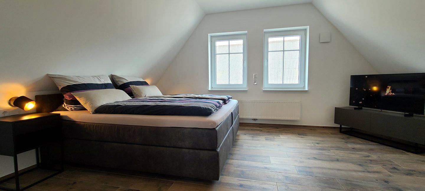 Herzlich willkommen in Ihrem Ferienhaus Urlaubsglück. Dieses moderne und komfortable Ferienhaus wurde im Jahr 2022 neu erbaut und bietet auf rund 110 qm ausreichend Platz für bis zu sechs Personen. Drei gemütliche Schlafzimmer, jeweils ausgestattet mit hochwertigen Boxspringbetten, sorgen für erholsame Nächte. Bettwäsche und Handtücher können auf Wunsch gegen Aufpreis hinzugebucht werden.