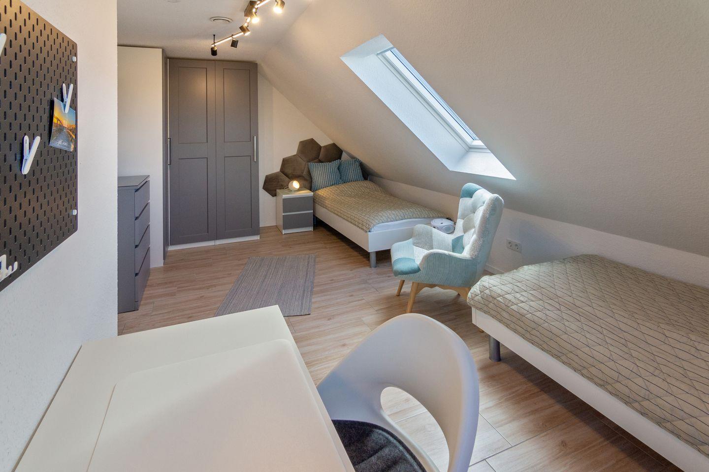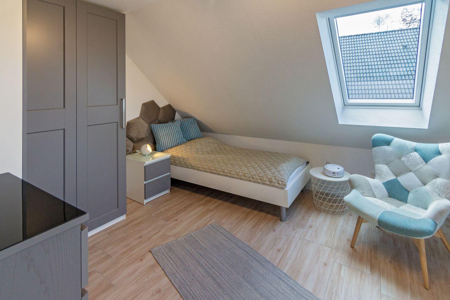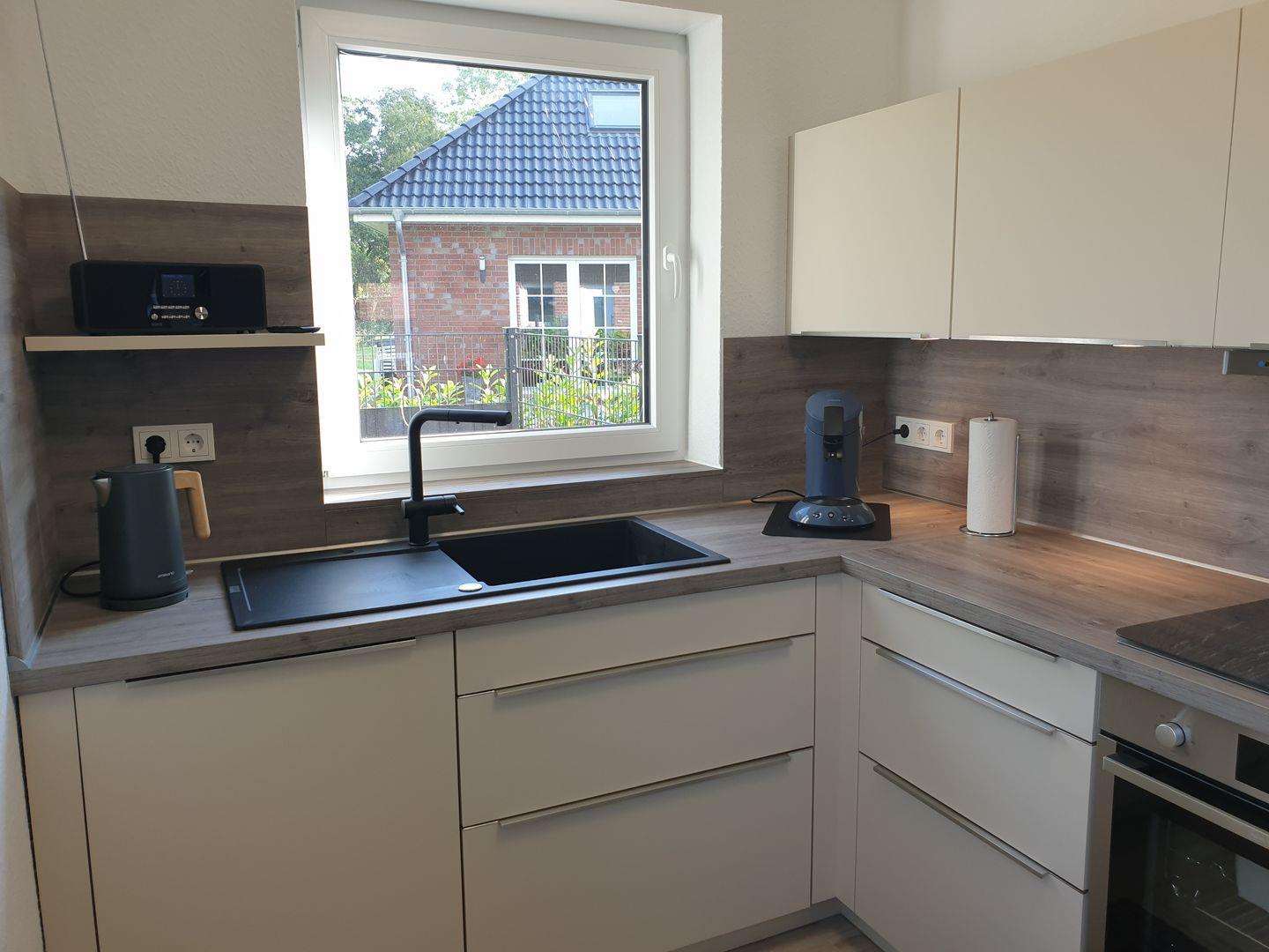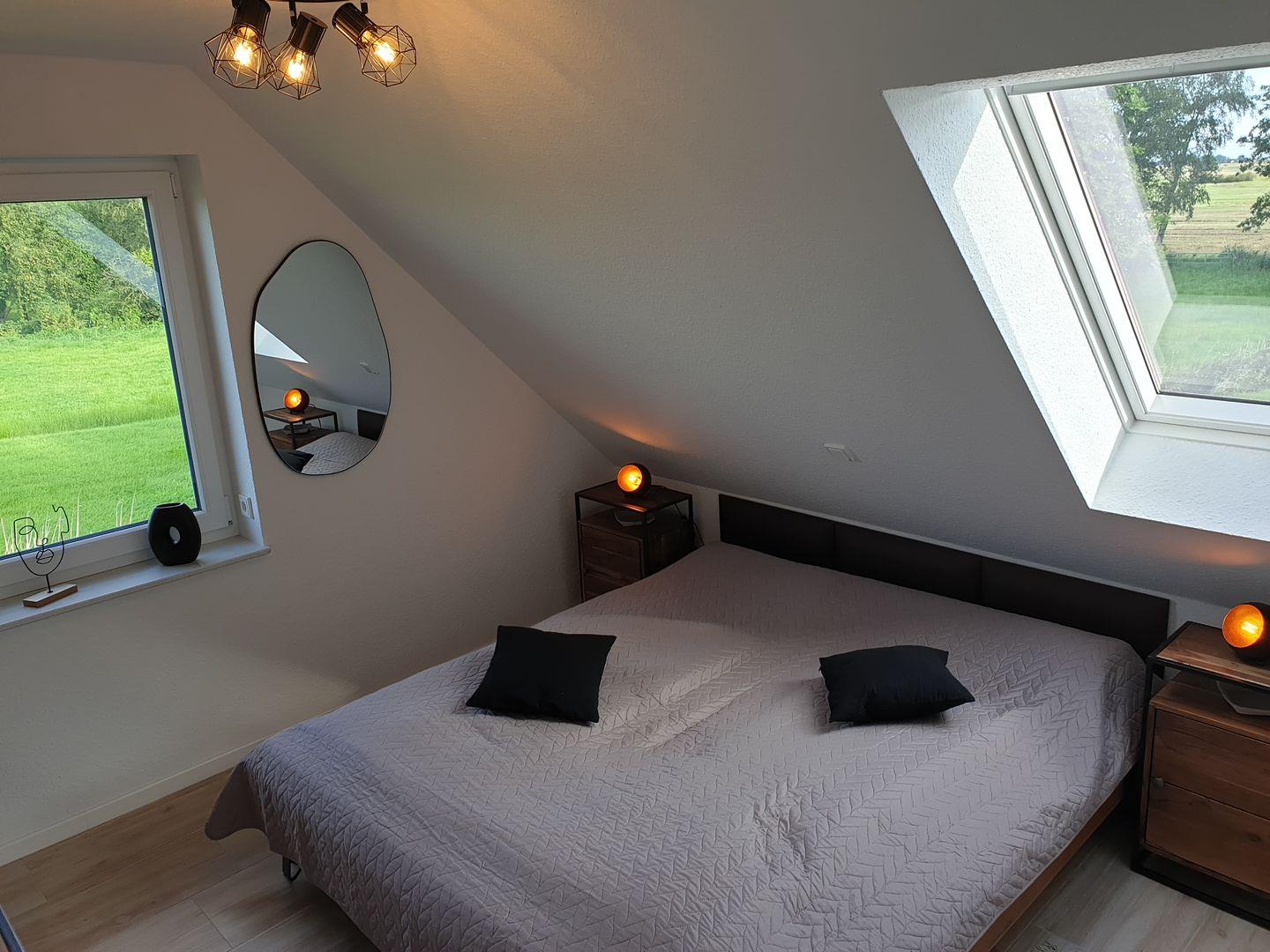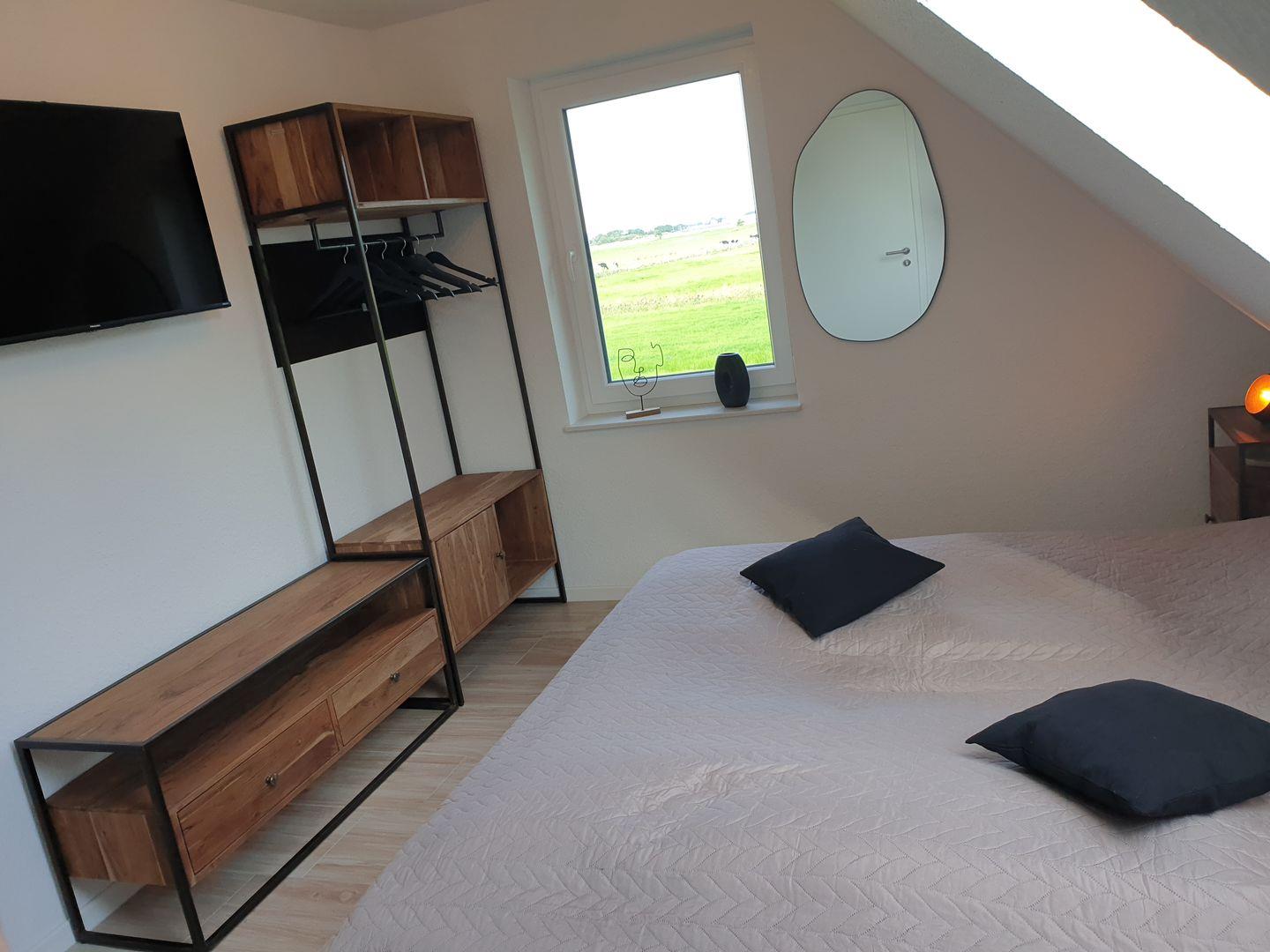 Das moderne, in 2023 fertiggestellte Ferienhaus verfügt im Erdgeschoss über einen Wohnbereich, eine separate voll ausgestattete Küche, einen Hauswirtschaftsraum und ein Gäste-WC. Im Obergeschoss befinden sich zwei Schlafzimmer und ein Duschbad mit WC. Hier ist ausreichend Platz für vier Personen und ein Kleinkind. Zum Haus gehört eine Terrasse mit Garten. Maximal drei Hunde sind hier herzlich Willkommen. Ein eigener PKW-Stellplatz steht Ihnen am Haus zur Verfügung.