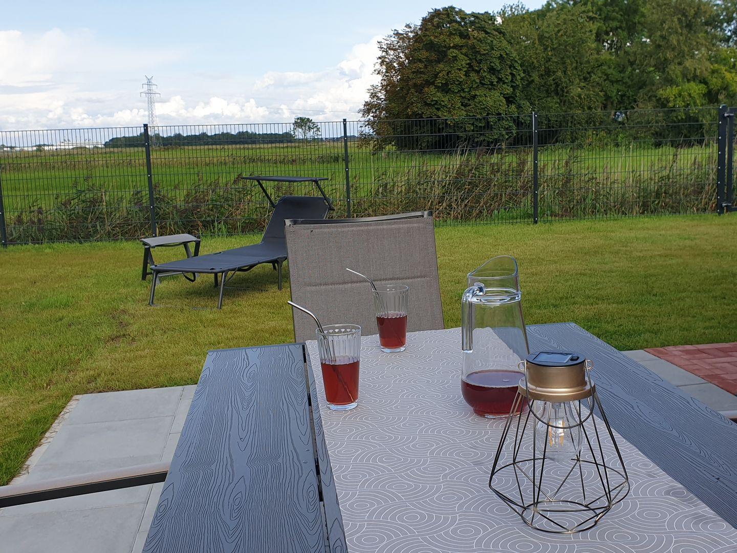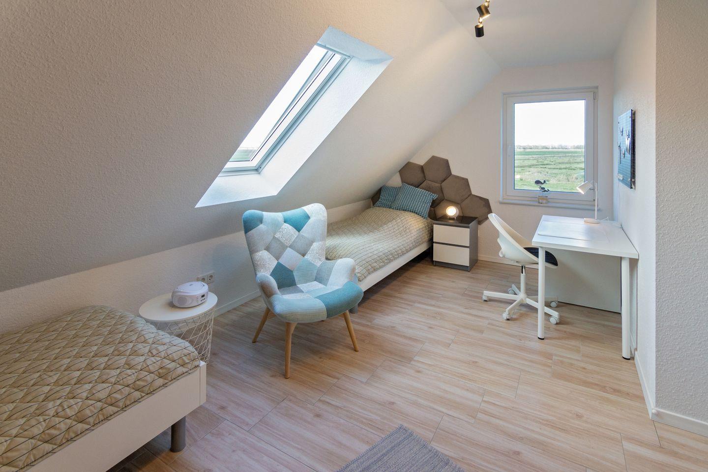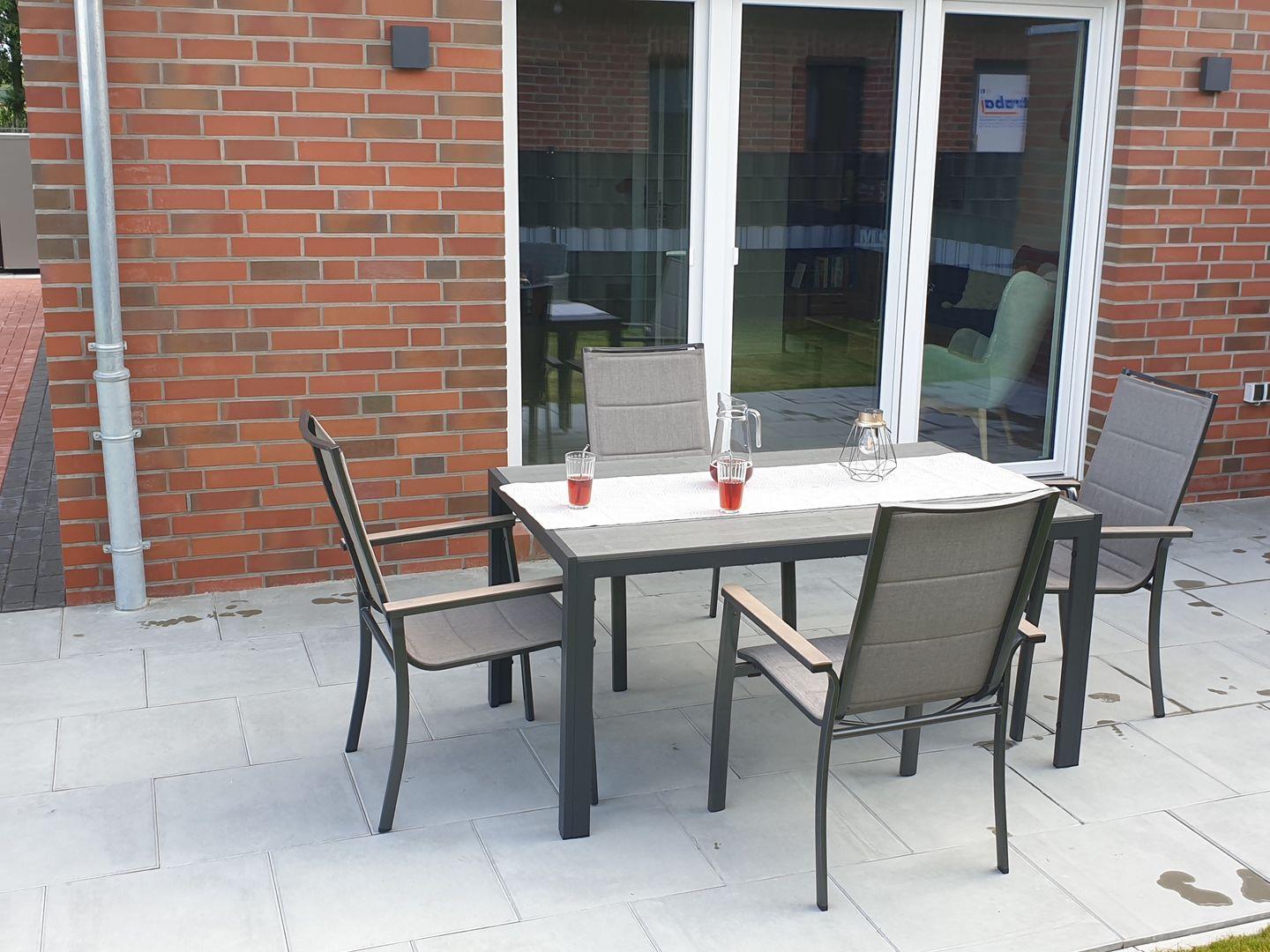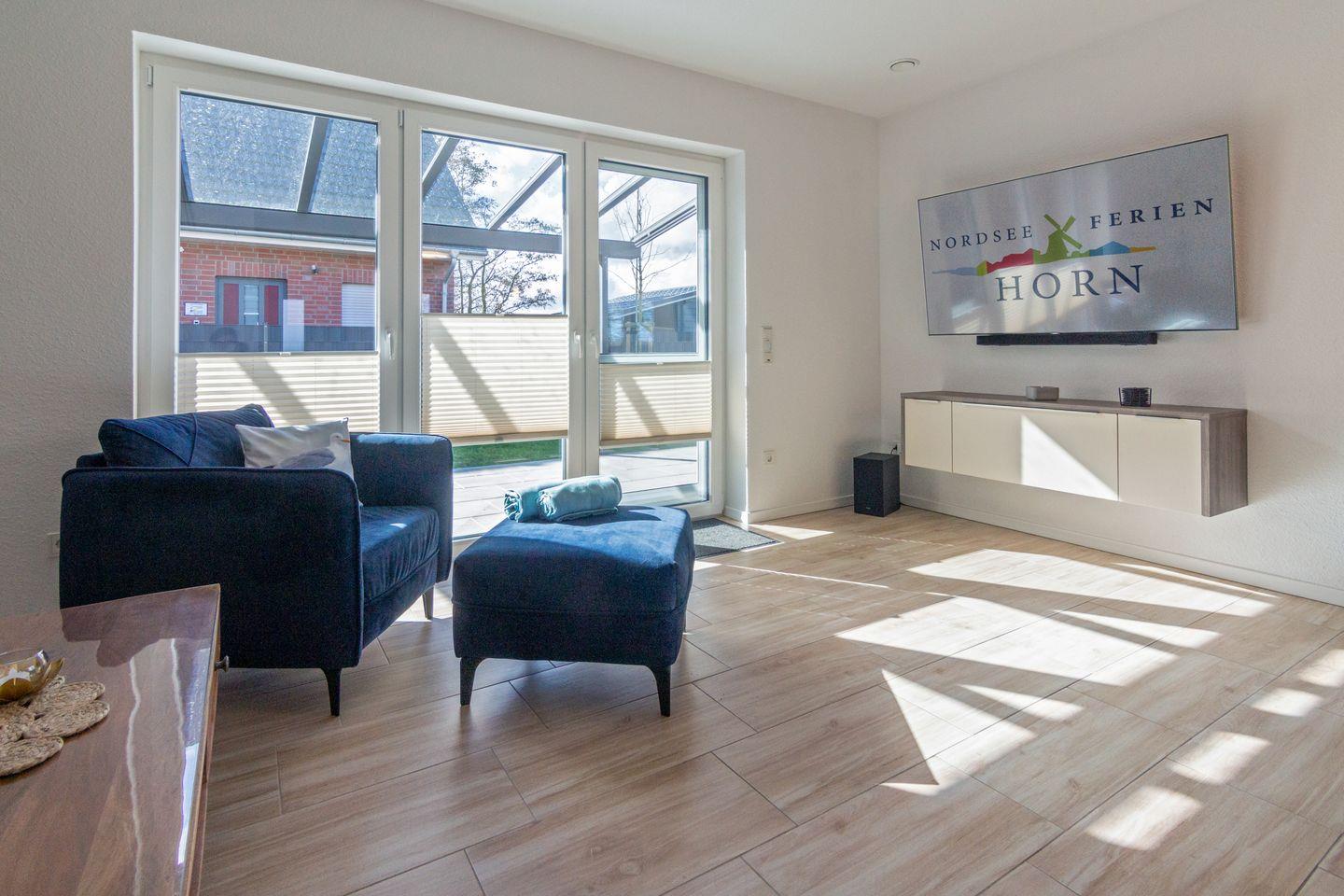 Modernes Reihenendhaus in Dornum mit großem Garten und tollem Weitblick, ideal für Familien und Hunde.