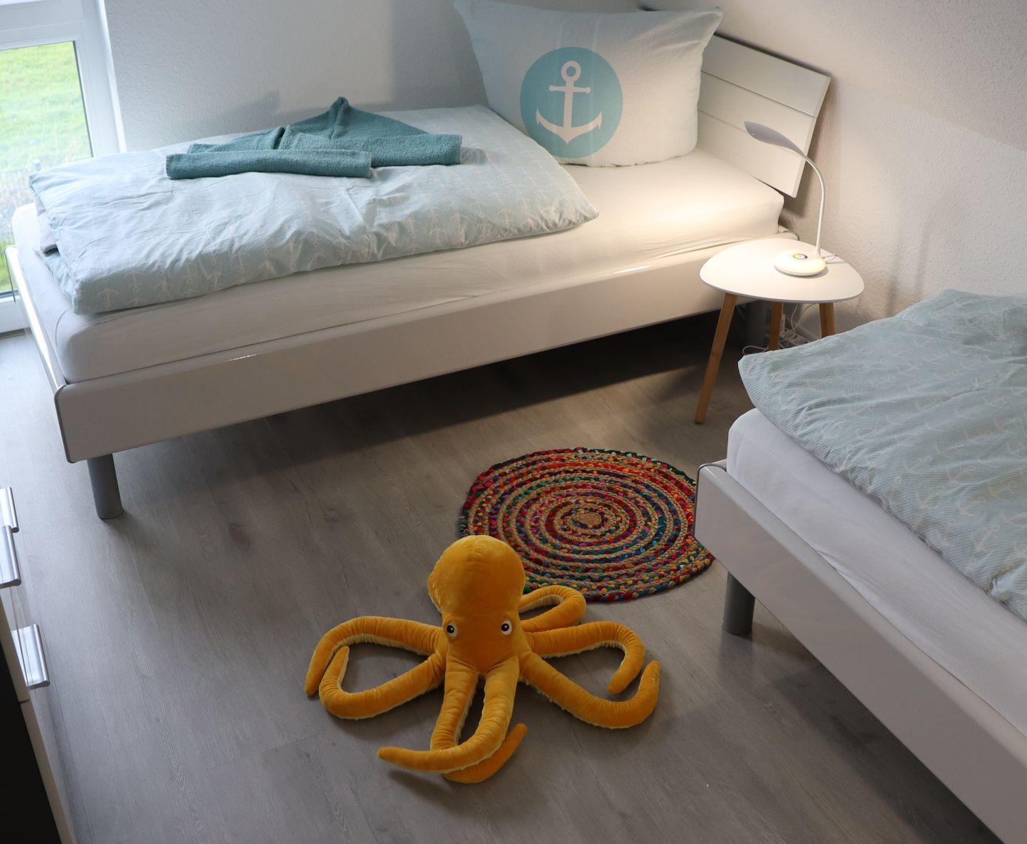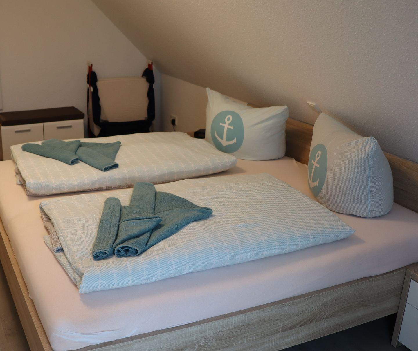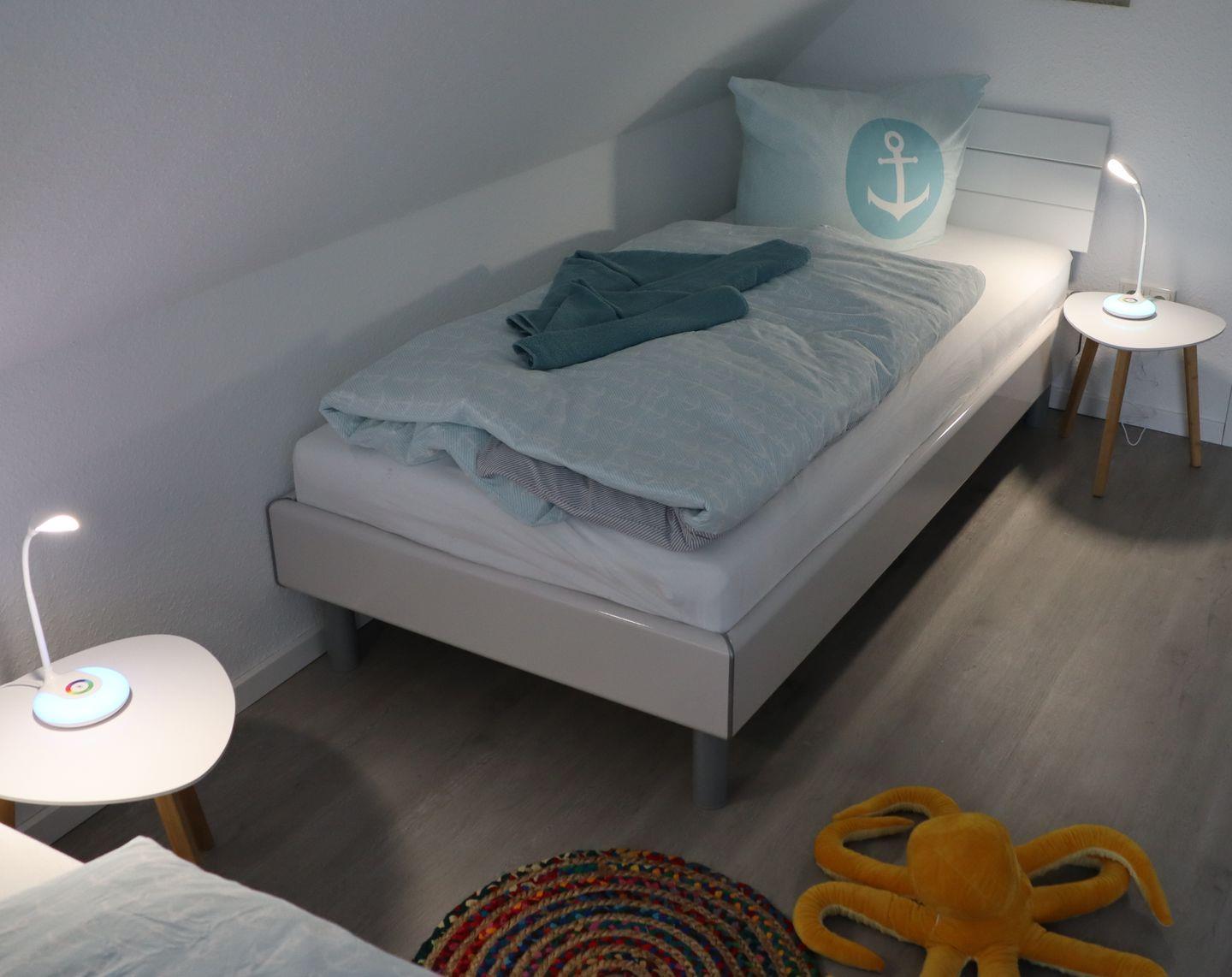 Im Obergeschoss befinden sich zwei gemütliche Schlafzimmer mit jeweils zwei Schlafmöglichkeiten sowie ein modernes Duschbad.