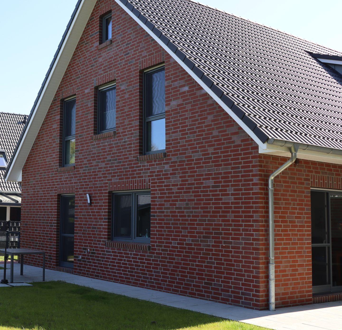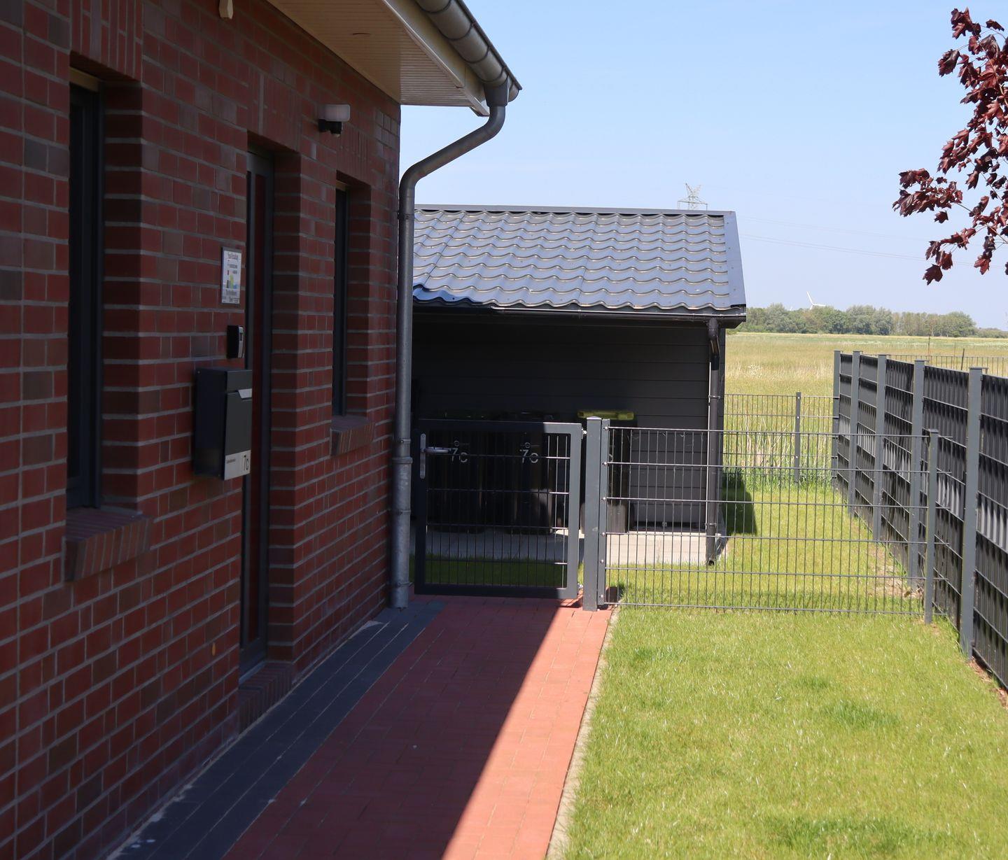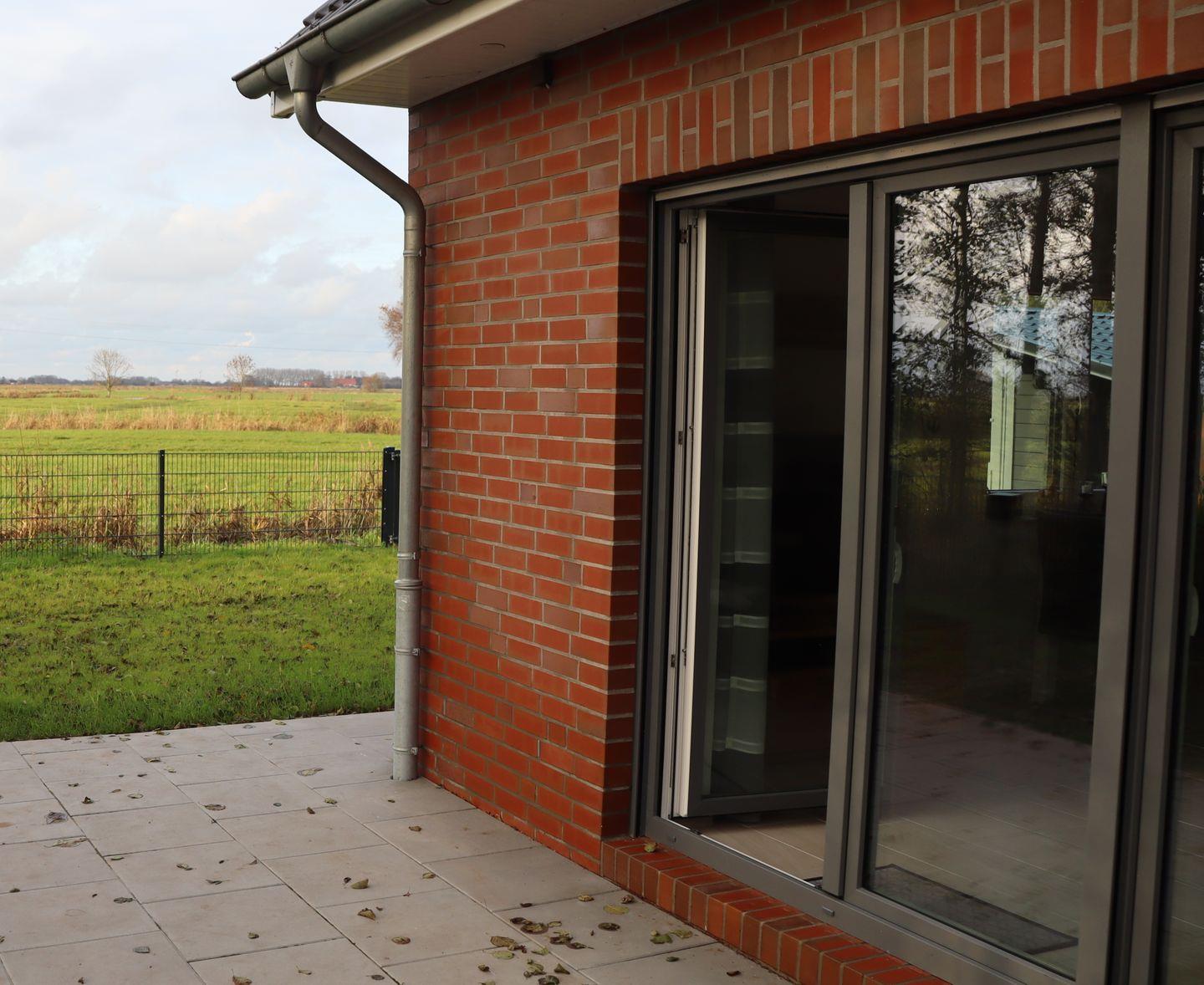 Modernes Reihenendhaus Dorie in Dornum mit Terrasse, Garten und Wallbox, ideal für Familien und Hundebesitzer.