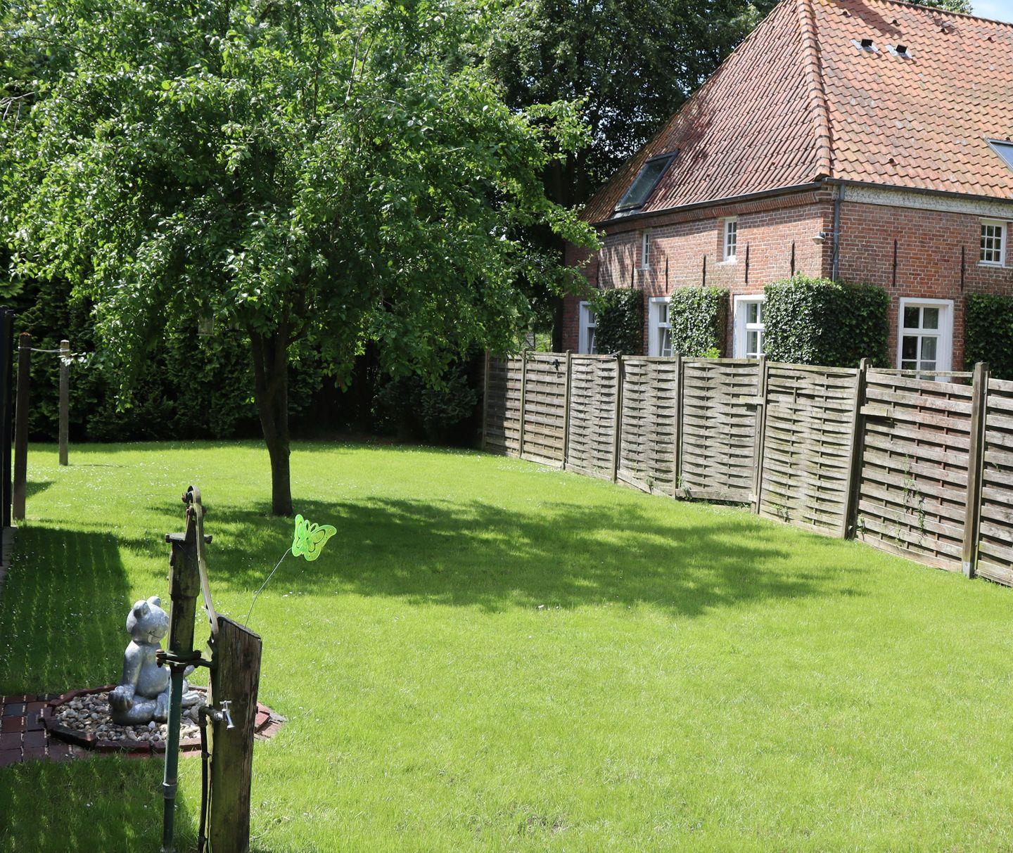 Der komplett eingezäunte Garten erstreckt sich über ca. 500 m² – ideal, damit sich auch Ihr Hund frei und sicher bewegen kann.