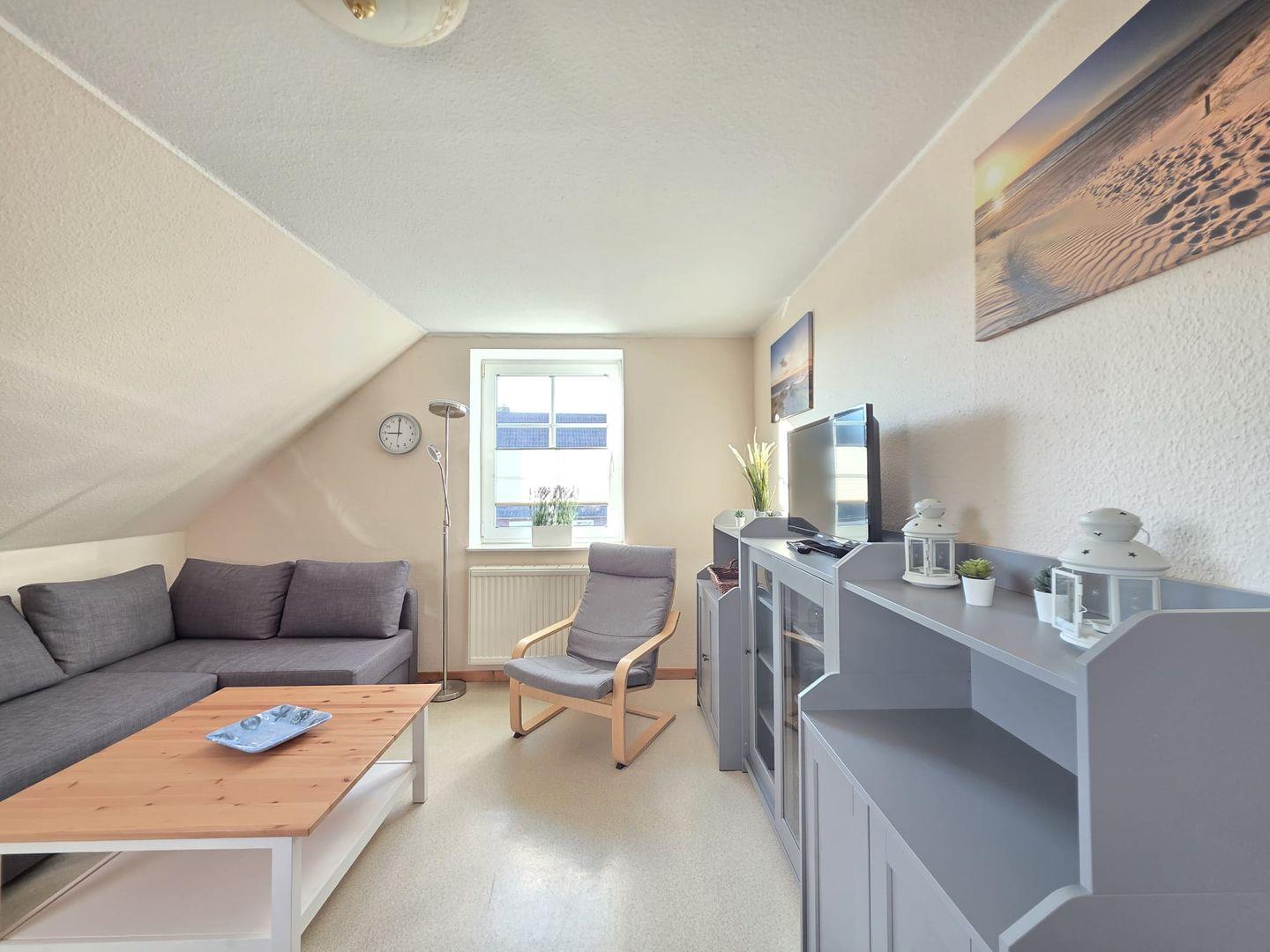 Wohnfläche: Die Ferienwohnung ist hell, geräumig und bietet ausreichend Platz für bis zu vier Personen.
