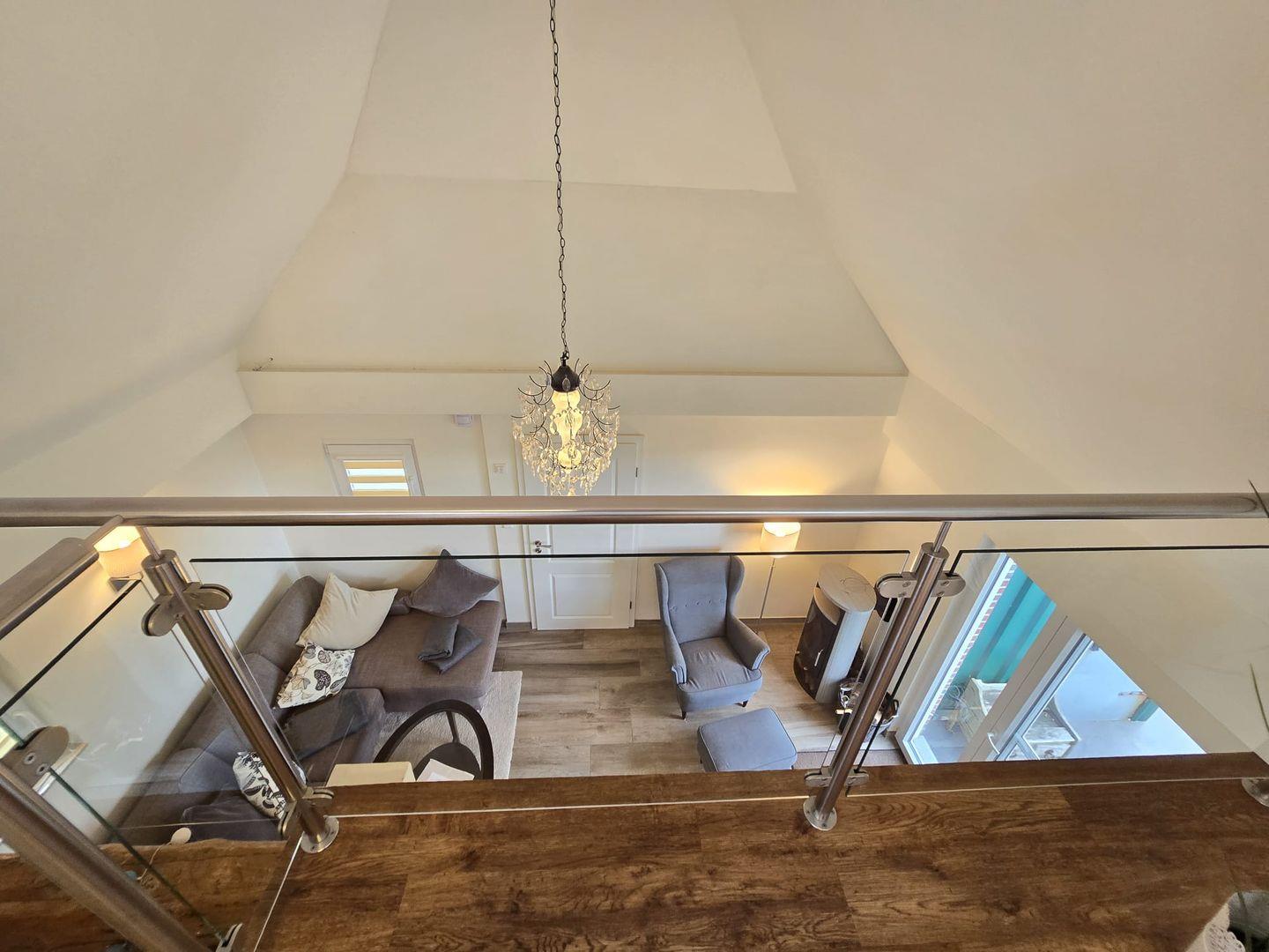Das Ferienhaus überzeugt durch seinen hellen, offenen Wohnbereich mit großen Fensterfronten, die einen traumhaften Blick über die weiten Felder und die idyllische Nordseelandschaft ermöglichen. Die großzügige Galerie im Obergeschoss sorgt für ein luftiges Raumgefühl und lädt zum Entspannen und Verweilen ein.