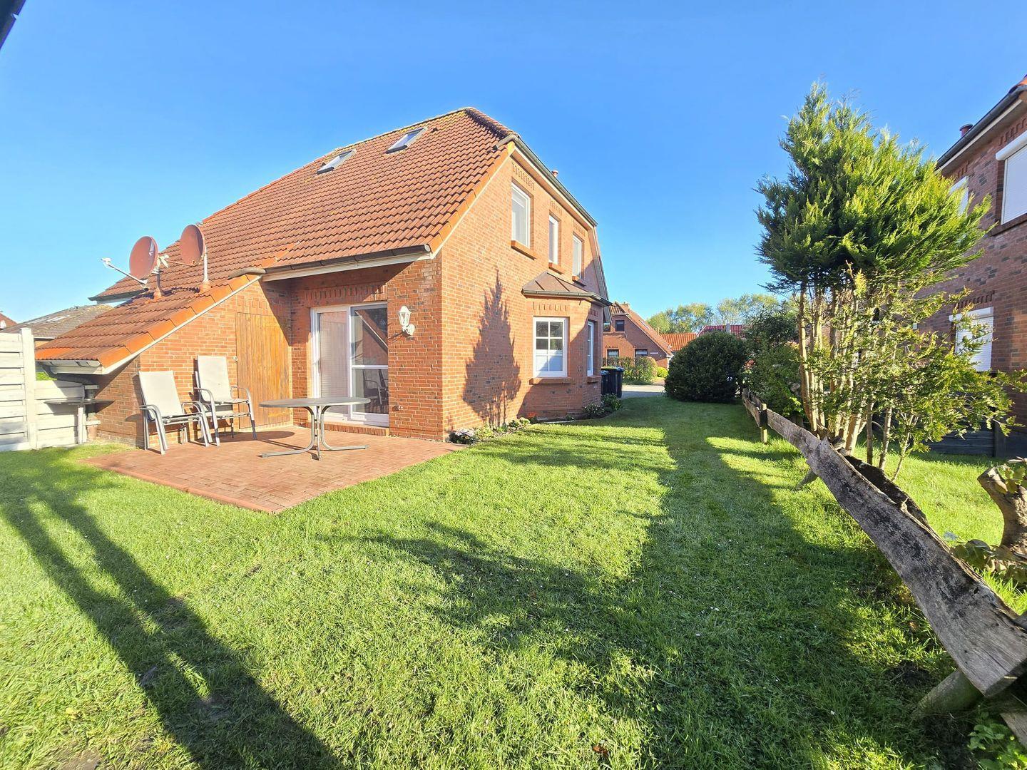 Modernes Ferienhaus Deichkrone in Neßmersiel mit großem Garten und Nähe zum Strand für einen erholsamen Nordseeurlaub.