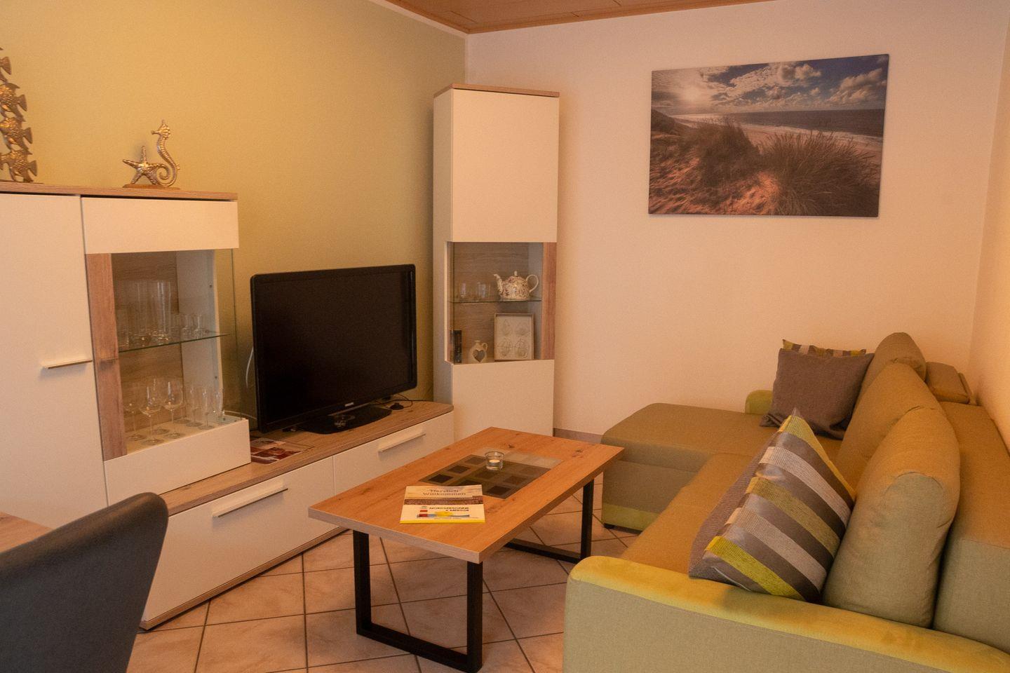 Die Ferienwohnung Kleine Robbe in Dornumersiel bietet barrierefreien Komfort und eine ruhige Lage nahe der Nordsee.