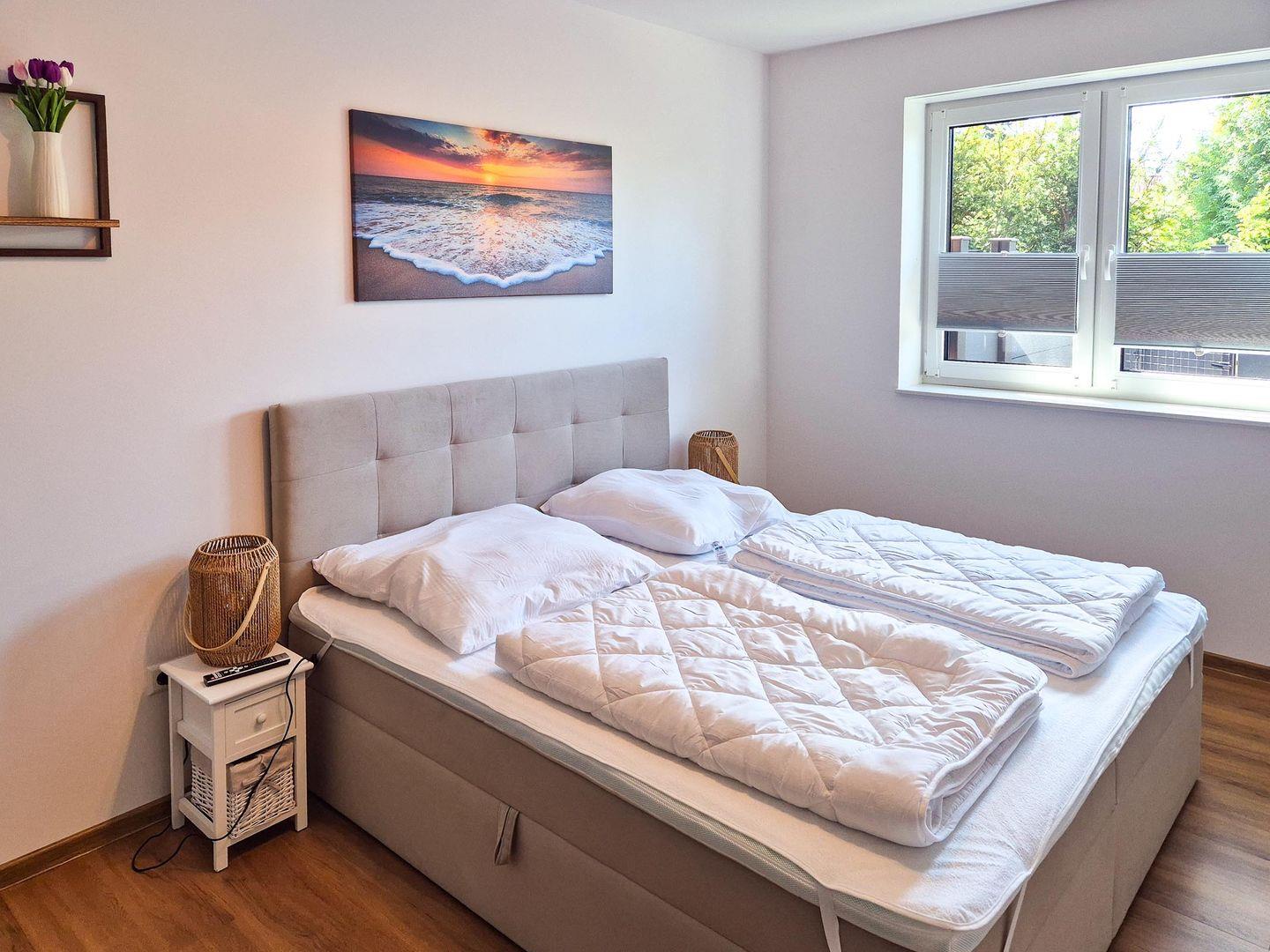 Schlafzimmer 1: Doppelbett 180x200 cm (Boxspring) + Schlafsofa (z. B. für 1-2 Kinder)