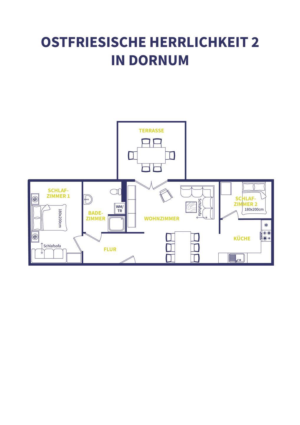 Unsere nagelneue Ferienwohnung "OSTFRIESISCHE HERRLICHKEIT" liegt in der historischen und mit Kopfsteinpflaster eingebetteten Alten Poststraße in der Gemeinde Dornum.