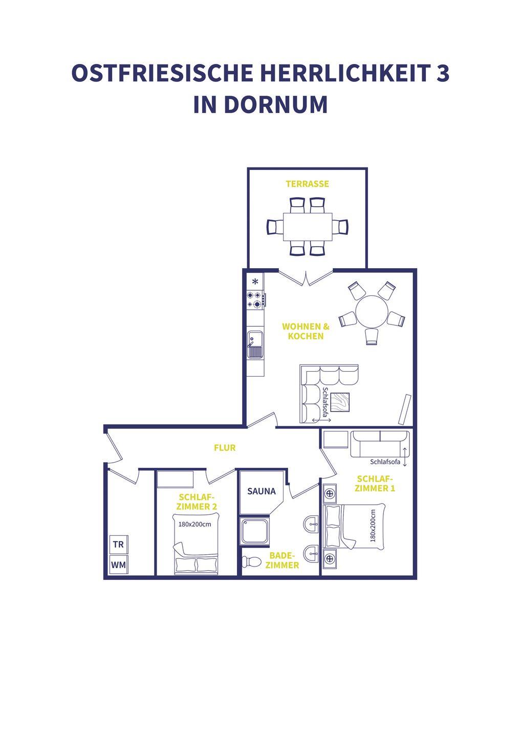 Moderne Ferienwohnung "Ostfriesische Herrlichkeit" mit Sauna und Garten in Dornum, nahe Nordsee und Schloss.