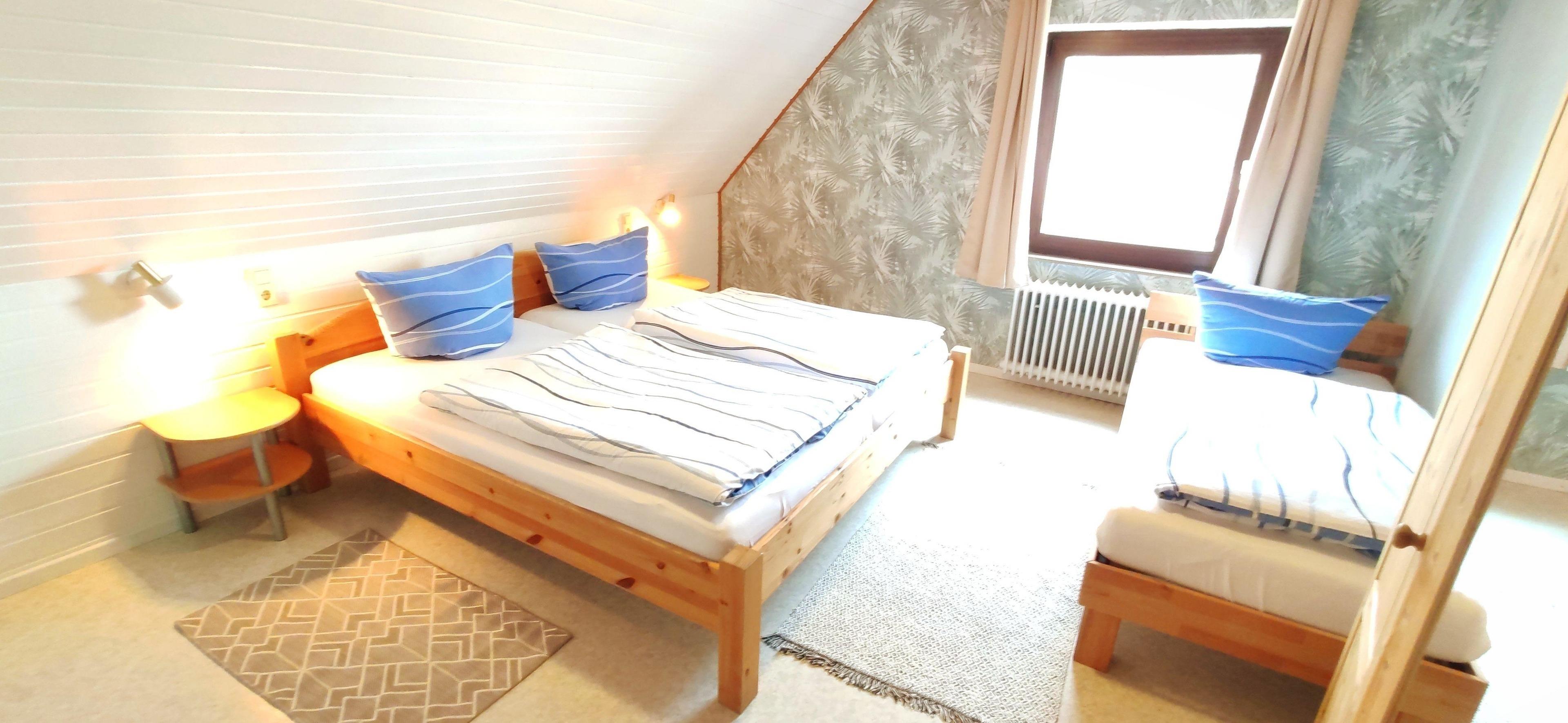 Unsere helle und freundlich eingerichtete Nichtraucher-Ferienwohnung (ca. 47 qm) befindet sich im Obergeschoss unseres Gästehauses.