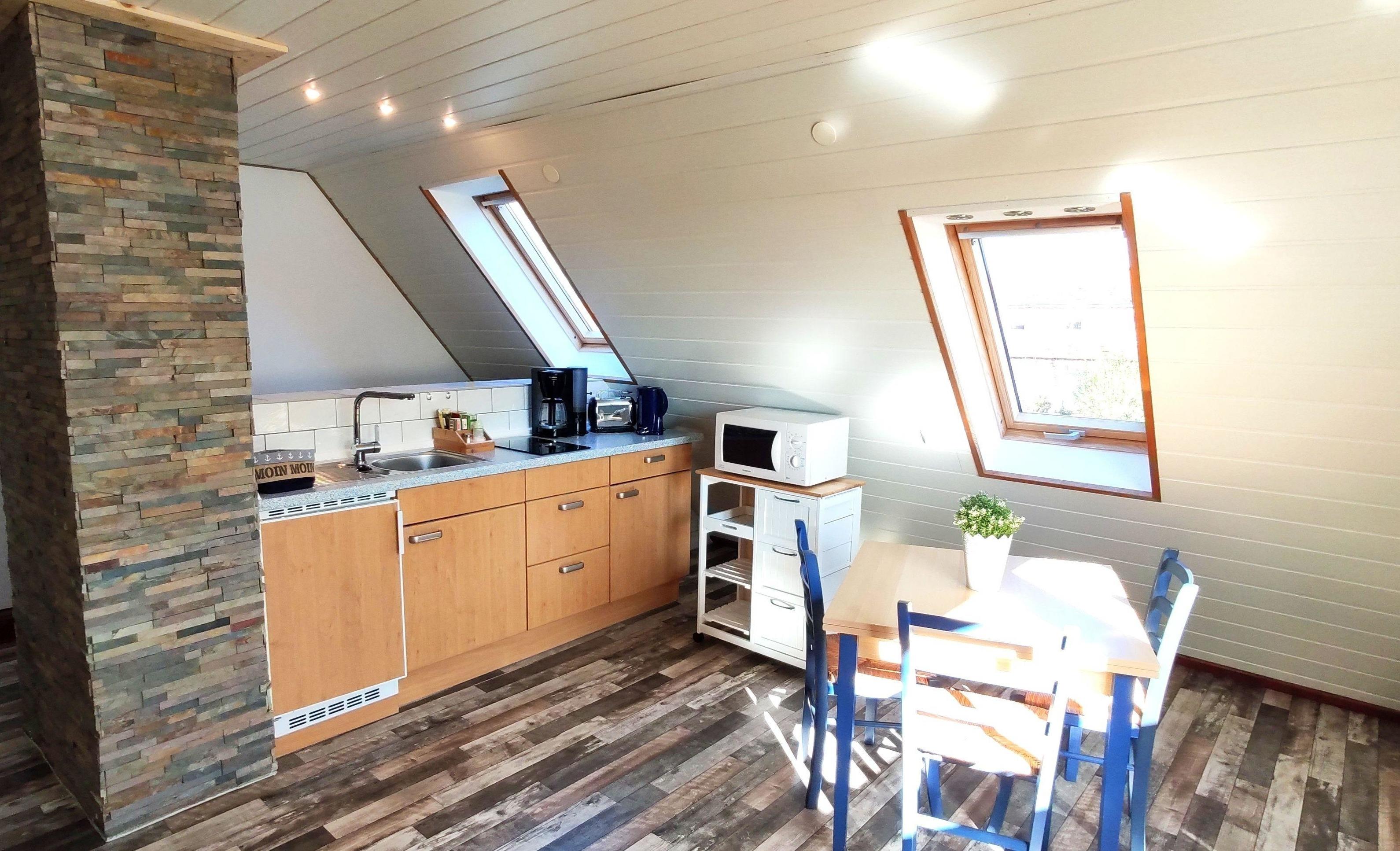 Es erwarten Sie ein gemütlicher Wohnbereich mit offener Küche, Schlafzimmer mit Doppelbett sowie ein Bad mit Dusche/WC.
