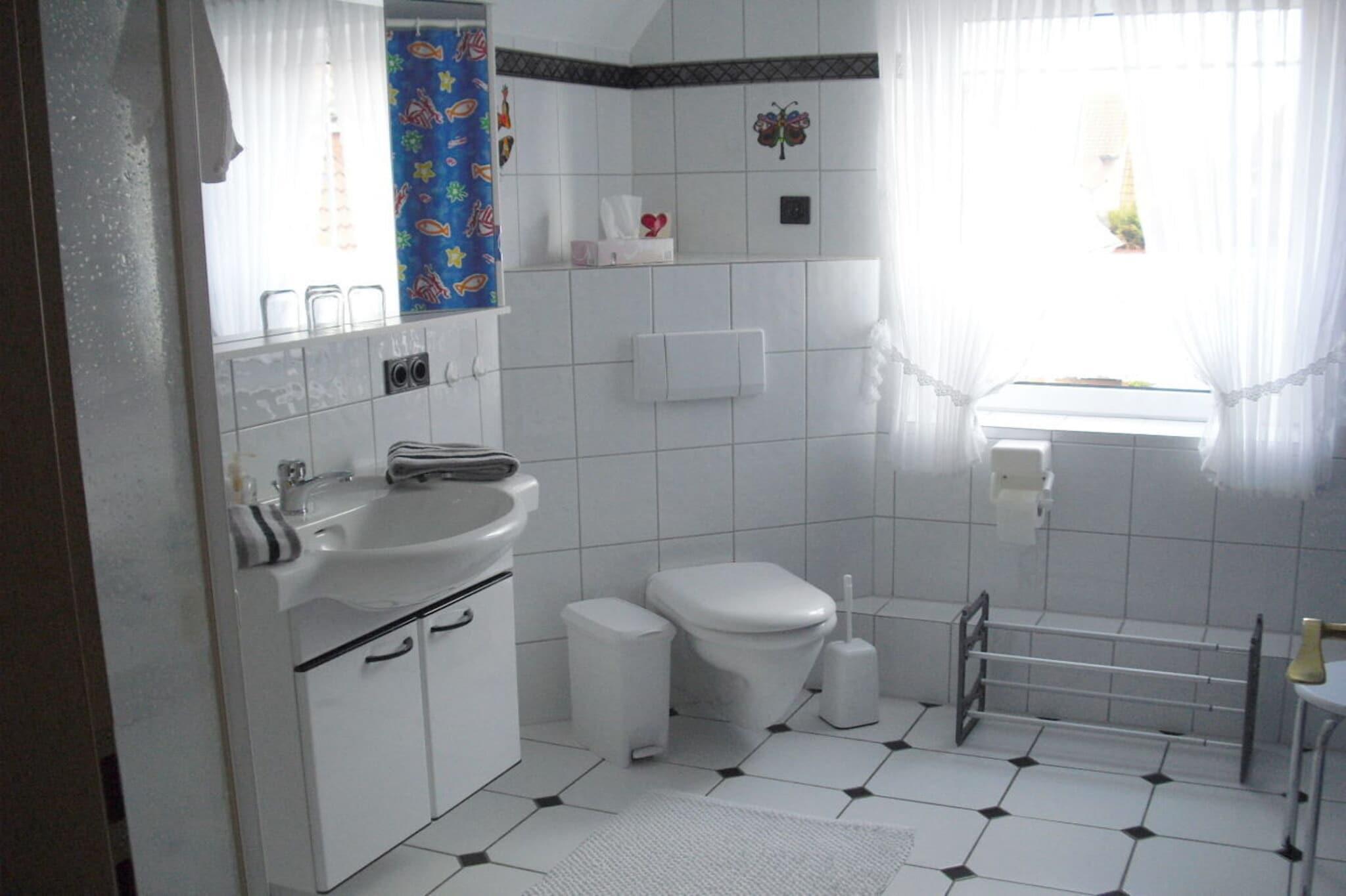 Unsere Nichtraucher-Ferienwohnung Stefanie (50m²) verfügt über kostenloses Welan,sie ist geschmackvoll und funktional eingerichtet, damit Sie sich auch im Urlaub wohlfühlen . Sie befindet sich in absoluter Ortsrandlage, am Ende einer Sackgasse und bietet Ihnen Ruhe und Erholung. Die Wohnung hat einen Balkon zur Morgensonnenseite. Im Wohnzimmer ist ein Flachbildfernseher, eine Musikanlage und eine Wetterstadion . Einbauküche mit Kühlschrank mit Gefrierfach,4 Zonen-Ceranfeld, Backofen, Mikrowelle,Toaster, Kaffeemaschine ect. Im Schlafzimmer mit Doppelbett kann noch 1 Reisebett aufgestellt werden . Das Bad mit Dusche/WC mit Fußbodenheizung ist sehr geräumig. Wir stehen Ihnen jederzeit gerne mit Rat und Tat zur Seite und freuen uns auf Sie!
