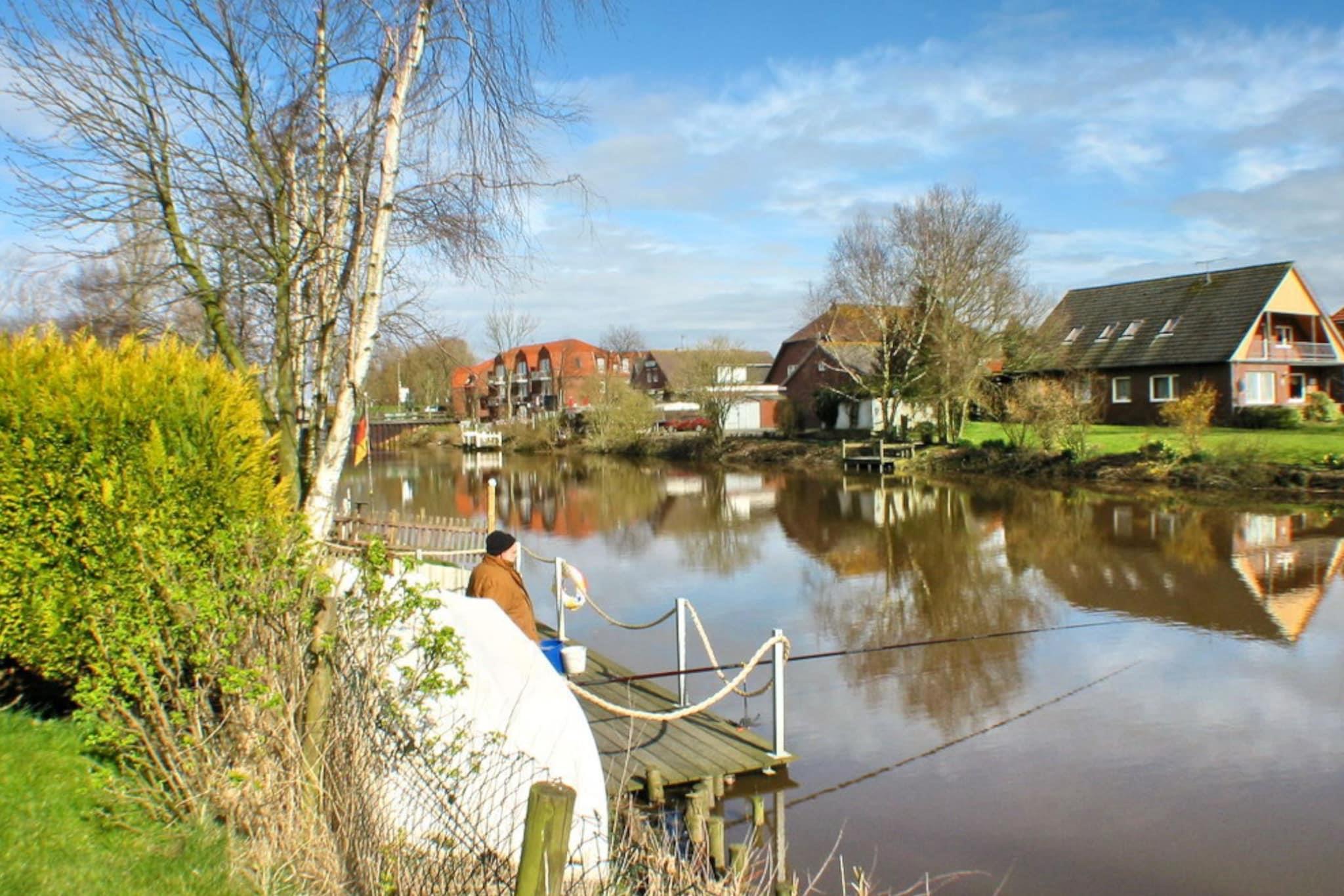 Moderne Maisonettewohnung in Dornumersiel mit Balkon, WLAN und eigenem Angelsteg für erholsame Nordseeferien.