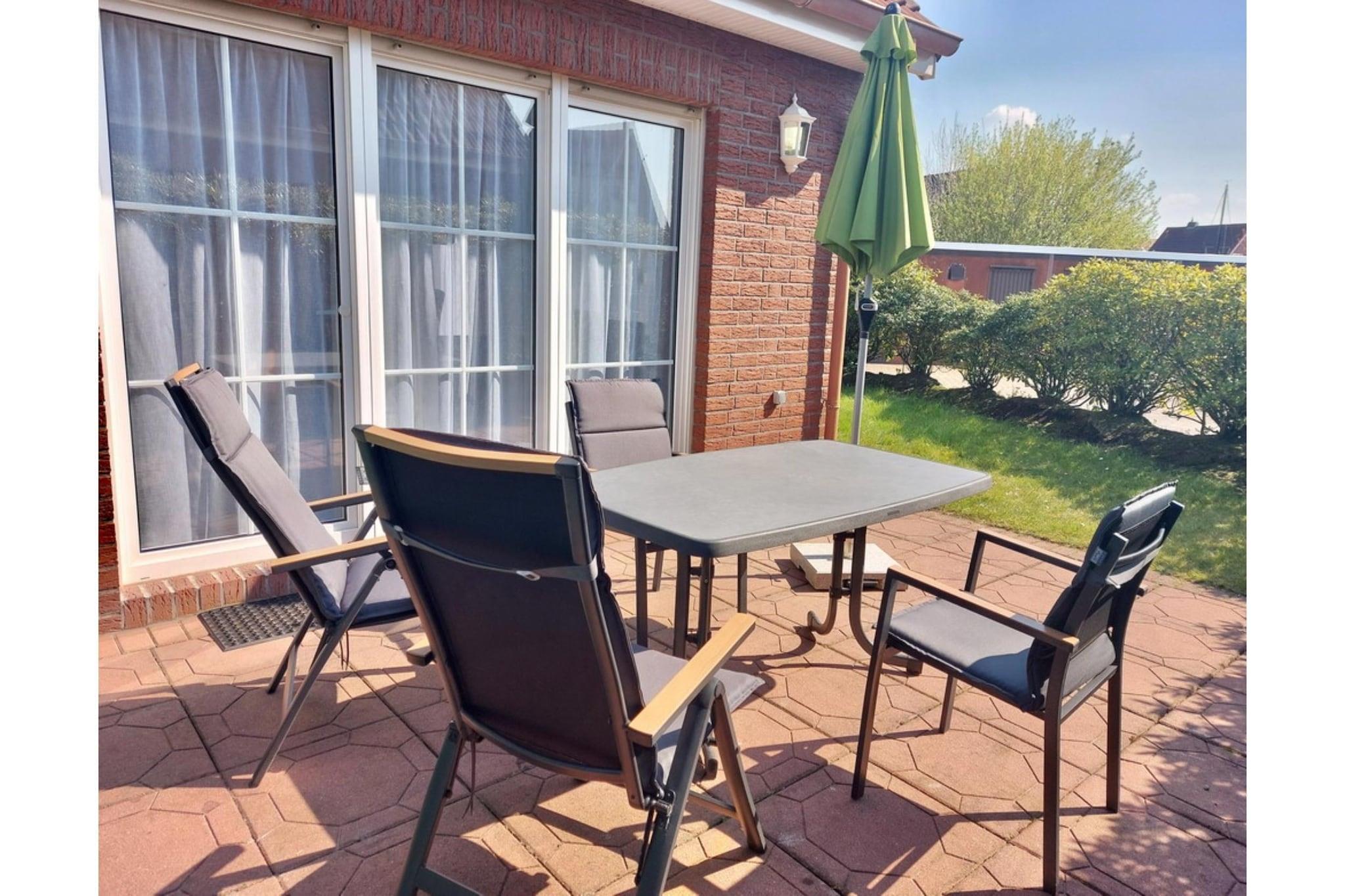 Gemütliches Reihenendhaus mit Terrasse in Dornumersiel, nahe Strand und Hafen, ideal für Familien und Naturliebhaber.
