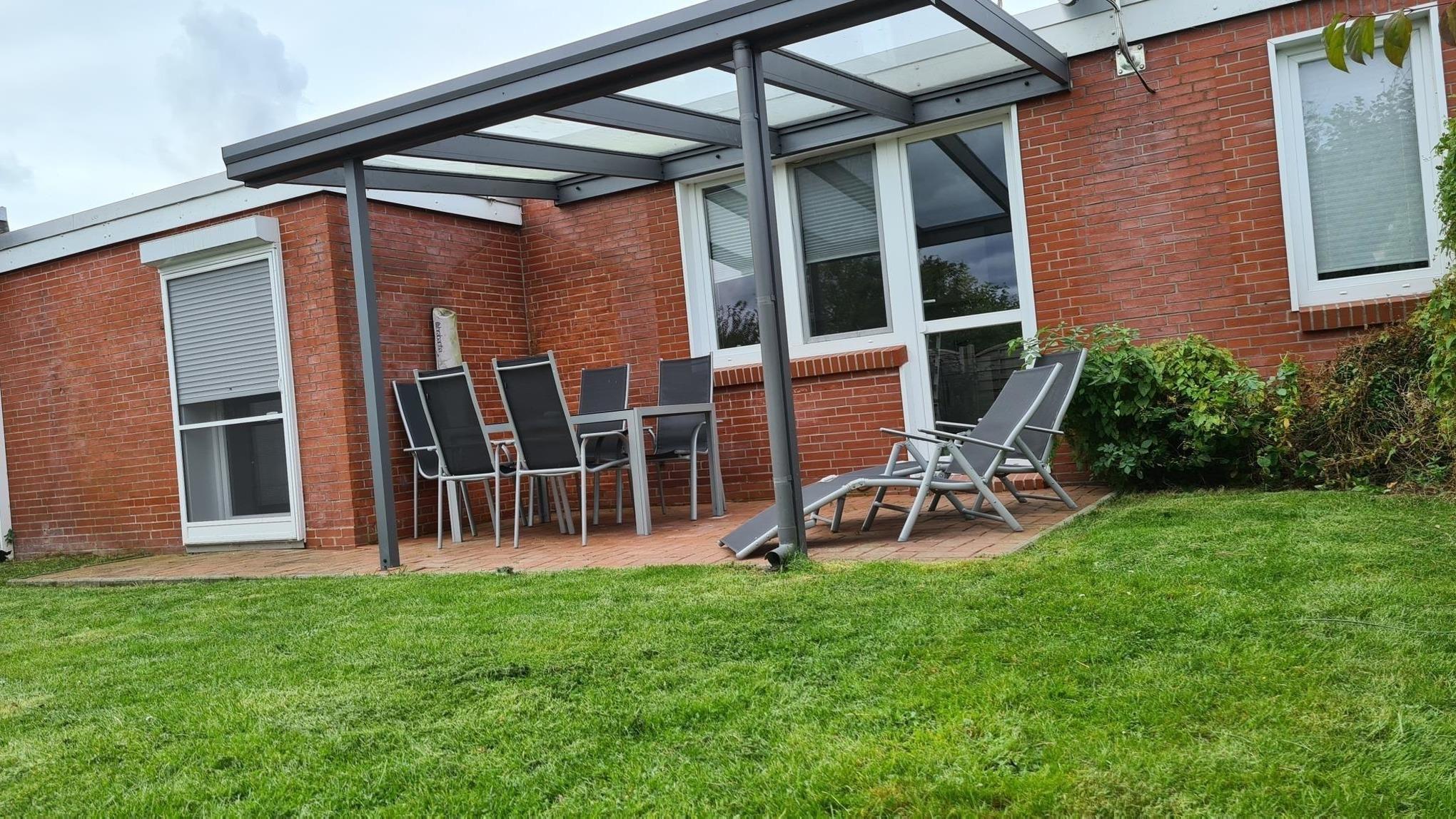 Hunde willkommen + Garten voll eingez.unt + WLan gratis + in ruhiger Feriensiedlung direkt hinter dem Deich / Strand + volle Ausstattung + eigener Garten Terrasse überdacht