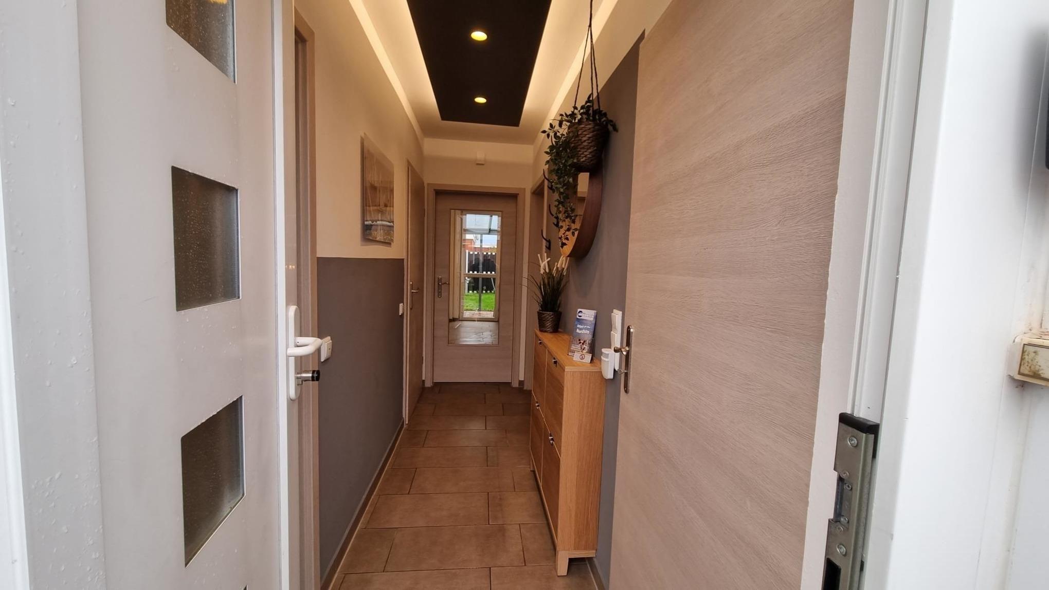 Wohnzimmer, Esszimmer und Küche gehen direkt in einander über. Das Haus verfügt über ein Schlafzimmer mit Doppelbett und ein weiteres mit zwei Einzelbetten. Das Badezimmer ist geräumig und mit einer Dusche ausgestattet.