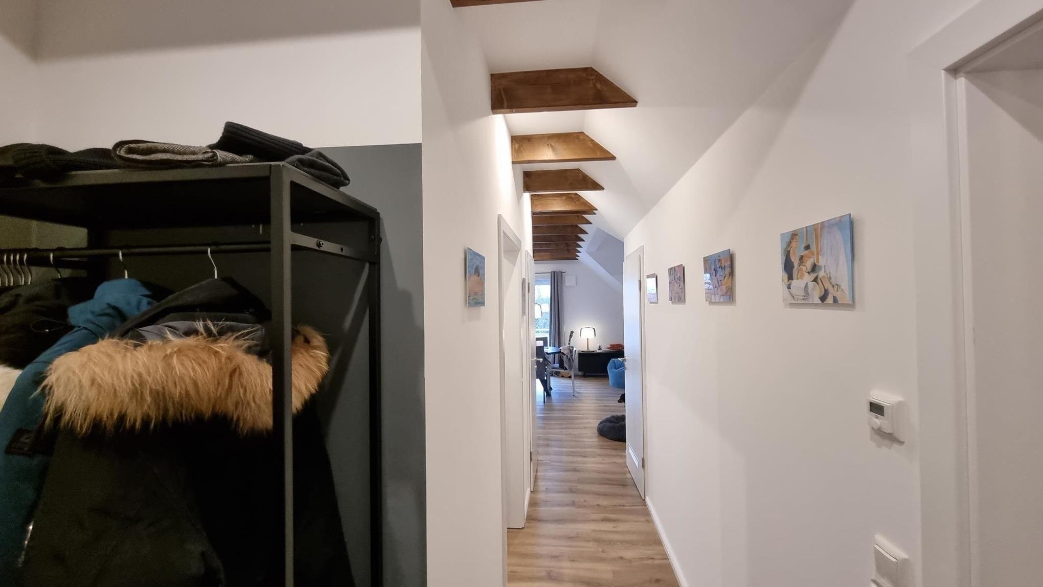 Die Neubau-Wohnung mit ca. 60 m² verfügt über einen großen Wohnbereich mit großem Smart-TV, Esstisch, Sofa und offener Küche. Ein Schlafzimmer mit Smart-TV, ein Badezimmer, einen Abstellraum mit Waschmaschine und einen herrlichen Balkon. Die Wohnung verfügt über eine Fussbodenheizung, eine Lüftungsanlage und elektrische Jalousien. Die Küche ist voll und hochwertig ausgestattet. Dank des super schnellen Glasfaser Internets lässt sich die Wohnung auch sehr gut als HomeOffice nutzen - eigens dafür kann der Esstisch zum Schreibtisch mit FLOS Schreibtischlampe erweitert werden. Das Schlafzimmer vermittelt mit einem hochwertigen Doppelbett (200×180), Kleiderschrank, Smart-TV, Kofferniesche, indirekter Beleuchtung und feiner Innenarchitektur eine Urgemütlichkeit, die zum Entspannen und Erholen einlädt.