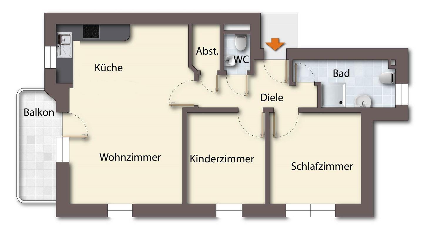 Im großzügigen Wohn- und Essbereich können Sie gemeinsam Zeit verbringen und sich entspannen. Die im Wohnbereich integrierte, voll ausgestattete Küche lässt keine Wünsche offen und bietet alles, was Sie für die Zubereitung von Mahlzeiten benötigen. Ein modernes Duschbad mit WC sorgt für zusätzlichen Komfort, und ein separates Gäste-WC ist ebenfalls vorhanden.