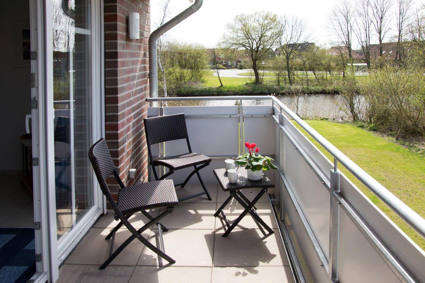 Moderne Oberwohnung Annegret mit Balkon und seitlichem Kanalblick in Dornumersiel.