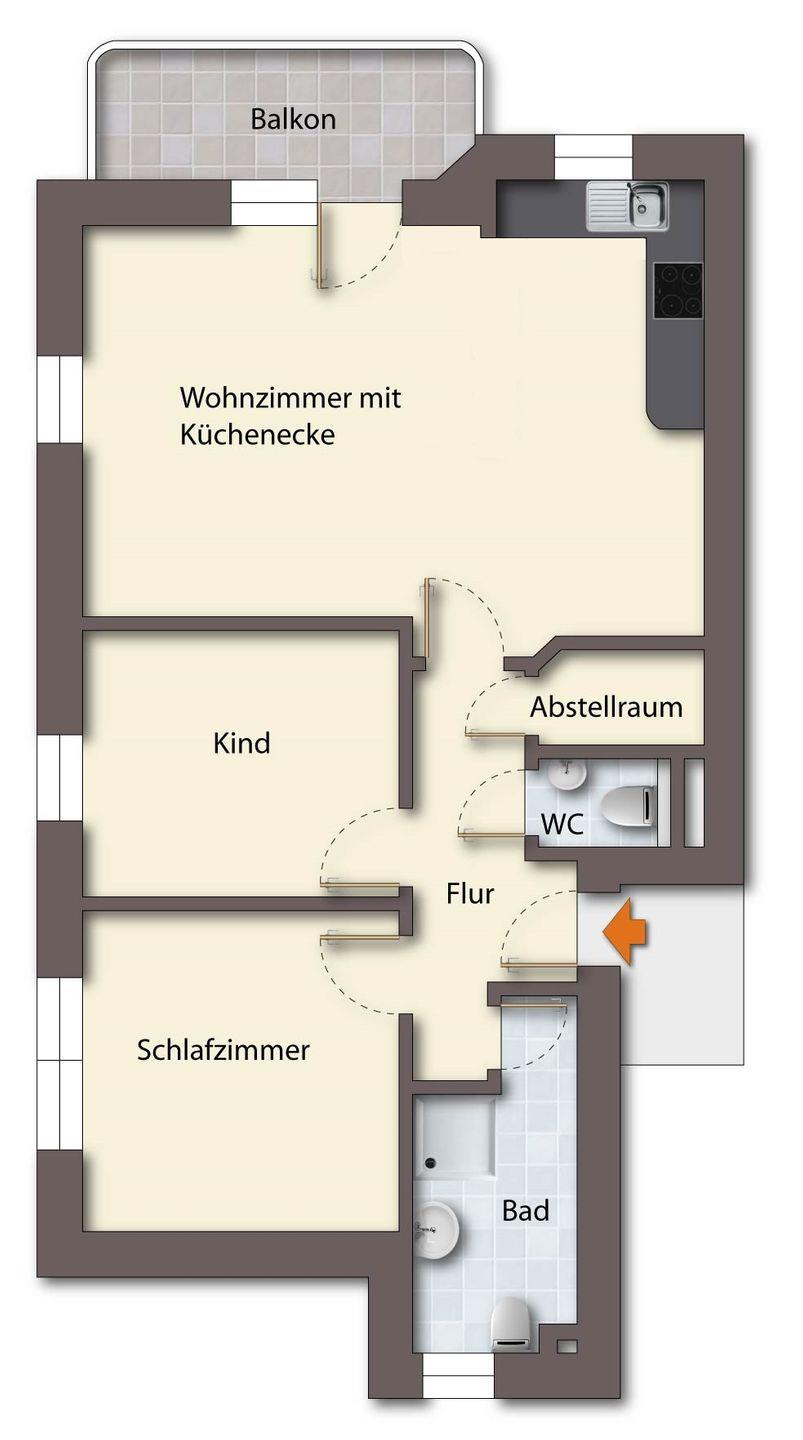 Der Balkon ist der perfekte Ort, um die frische Luft zu genießen und den Blick auf die Umgebung zu genießen. Für Fahrräder steht Ihnen ein eigener Abstellraum zur Verfügung, und Ihr Auto können Sie bequem auf dem PKW-Stellplatz abstellen.