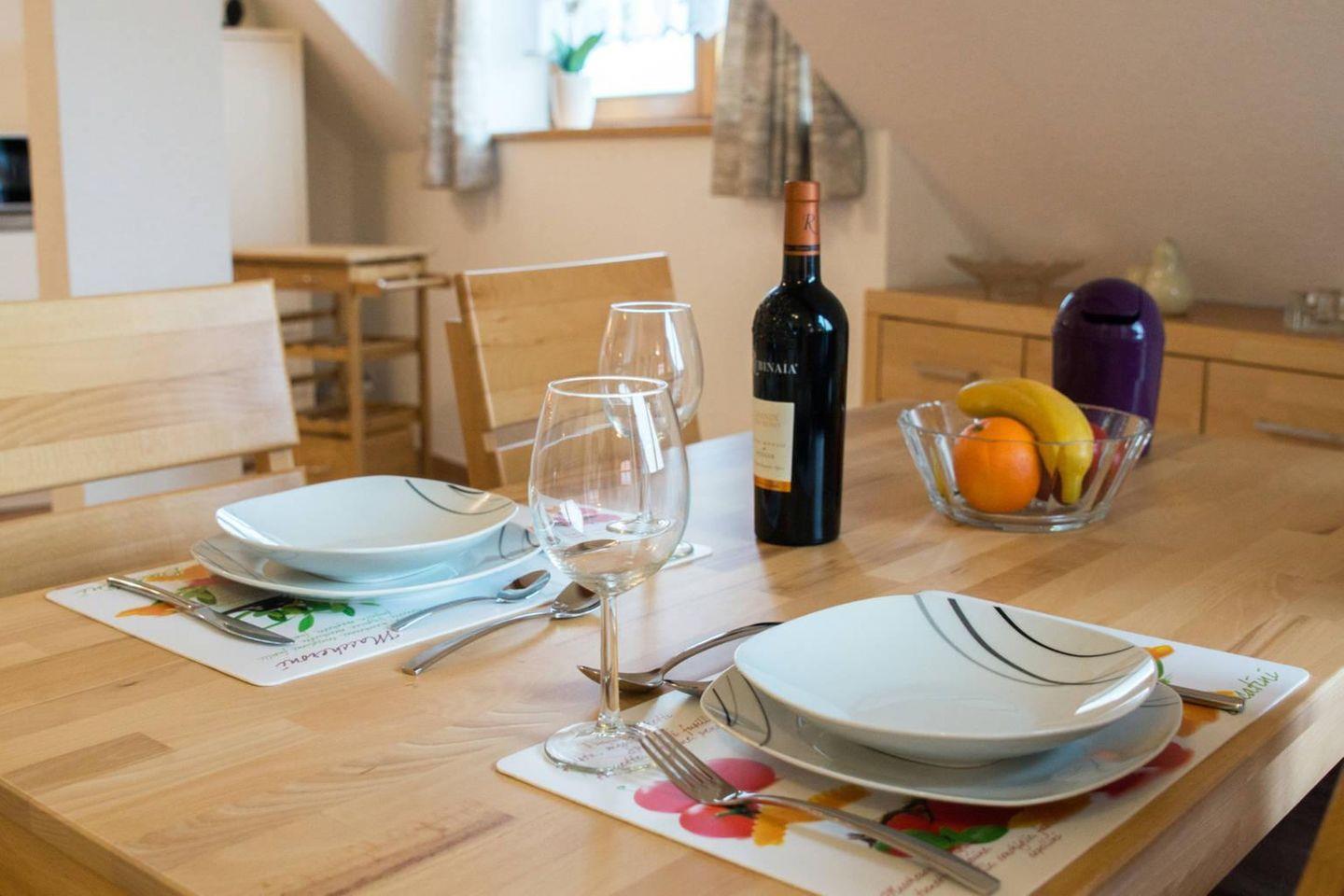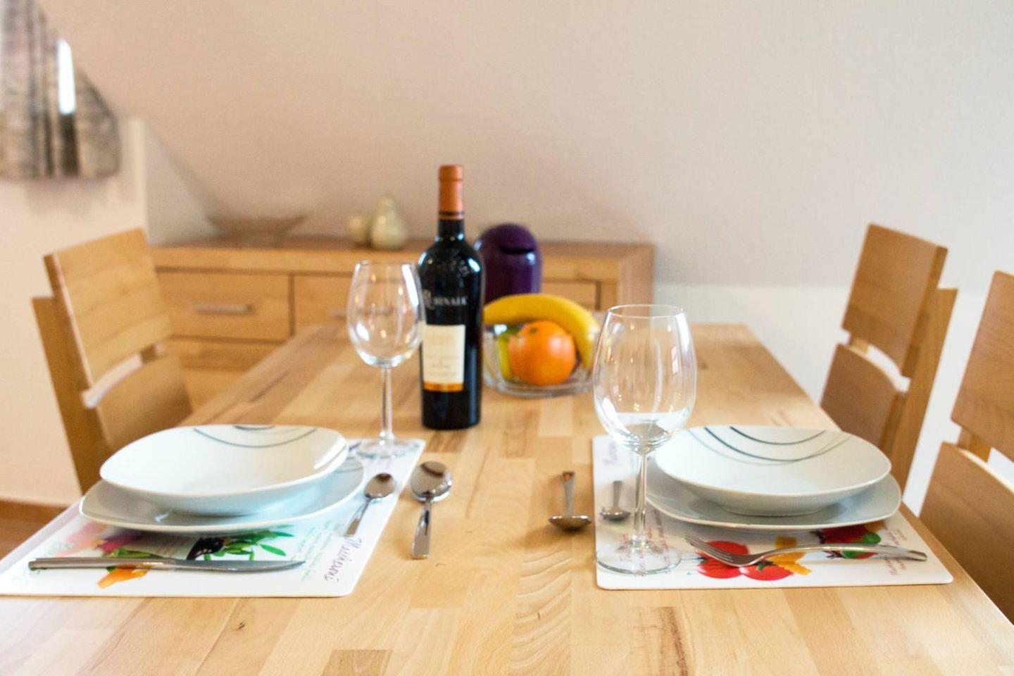 Die Ferienwohnung "Dreimaster W2" kombiniert modernen Komfort mit gemütlicher Atmosphäre und ist ideal für Paare oder kleine Familien. Der einladende Wohn- und Essbereich ist mit einer voll ausgestatteten Küche versehen, die alle Annehmlichkeiten für die Zubereitung leckerer Mahlzeiten bietet.