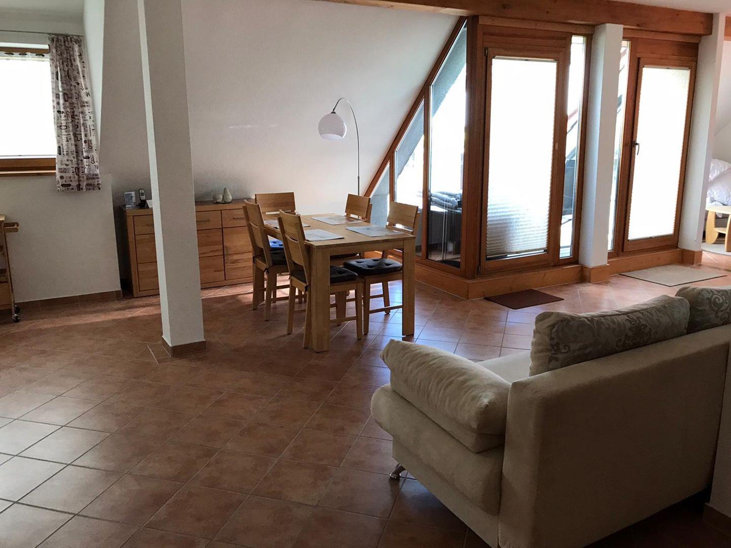 Ein Highlight der Wohnung ist der eigene Balkon, der Ihnen viel Platz für entspannte Momente im Freien bietet. Genießen Sie hier die frische Luft und die Ruhe der Umgebung. Die Garage steht Ihnen als praktischer Abstellraum zur Verfügung. Hier finden Sie Fahrräder und Grills, die Sie während Ihres Aufenthalts gerne nutzen können. Selbstverständlich können Sie auch Ihre eigenen Fahrräder sicher unterstellen.