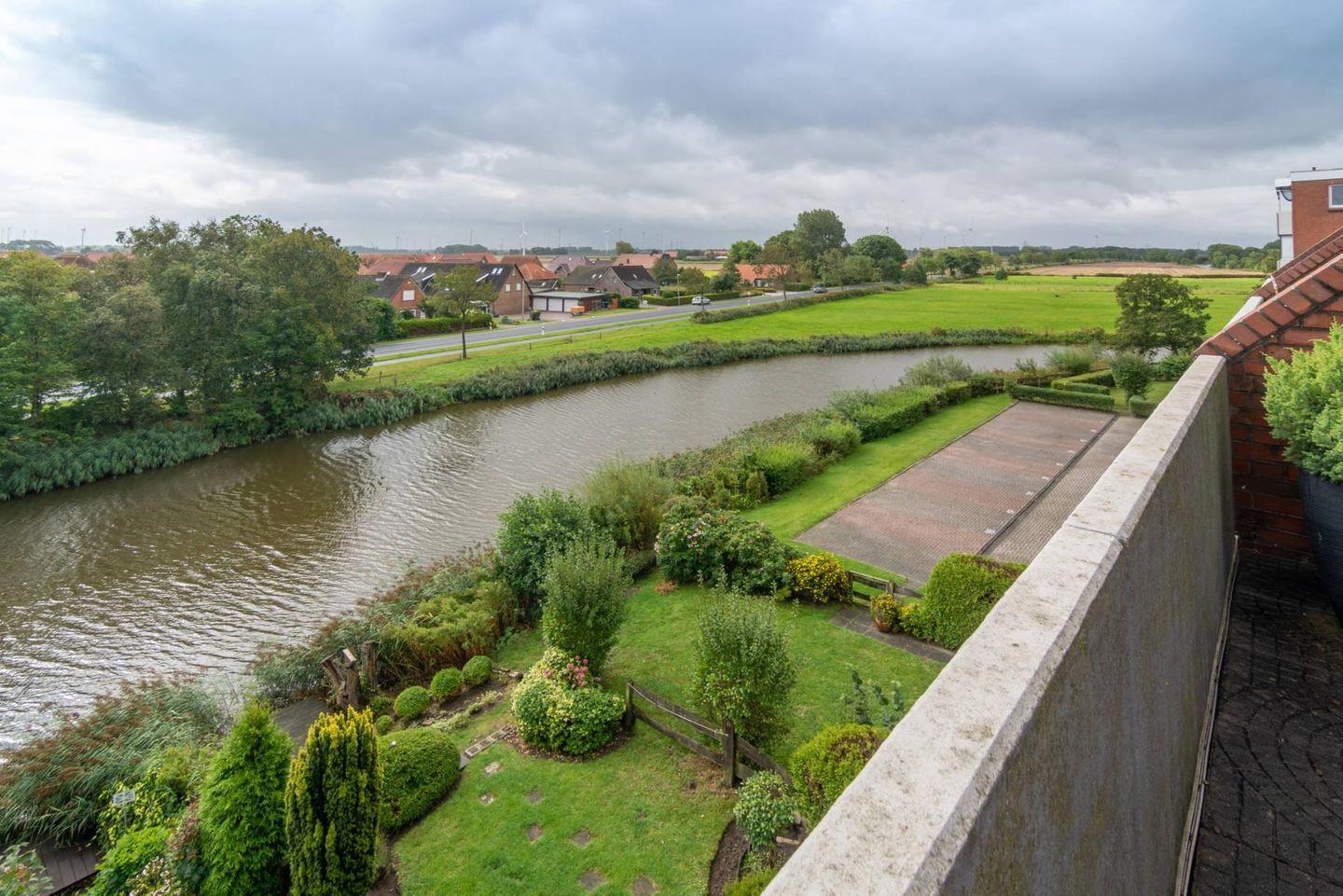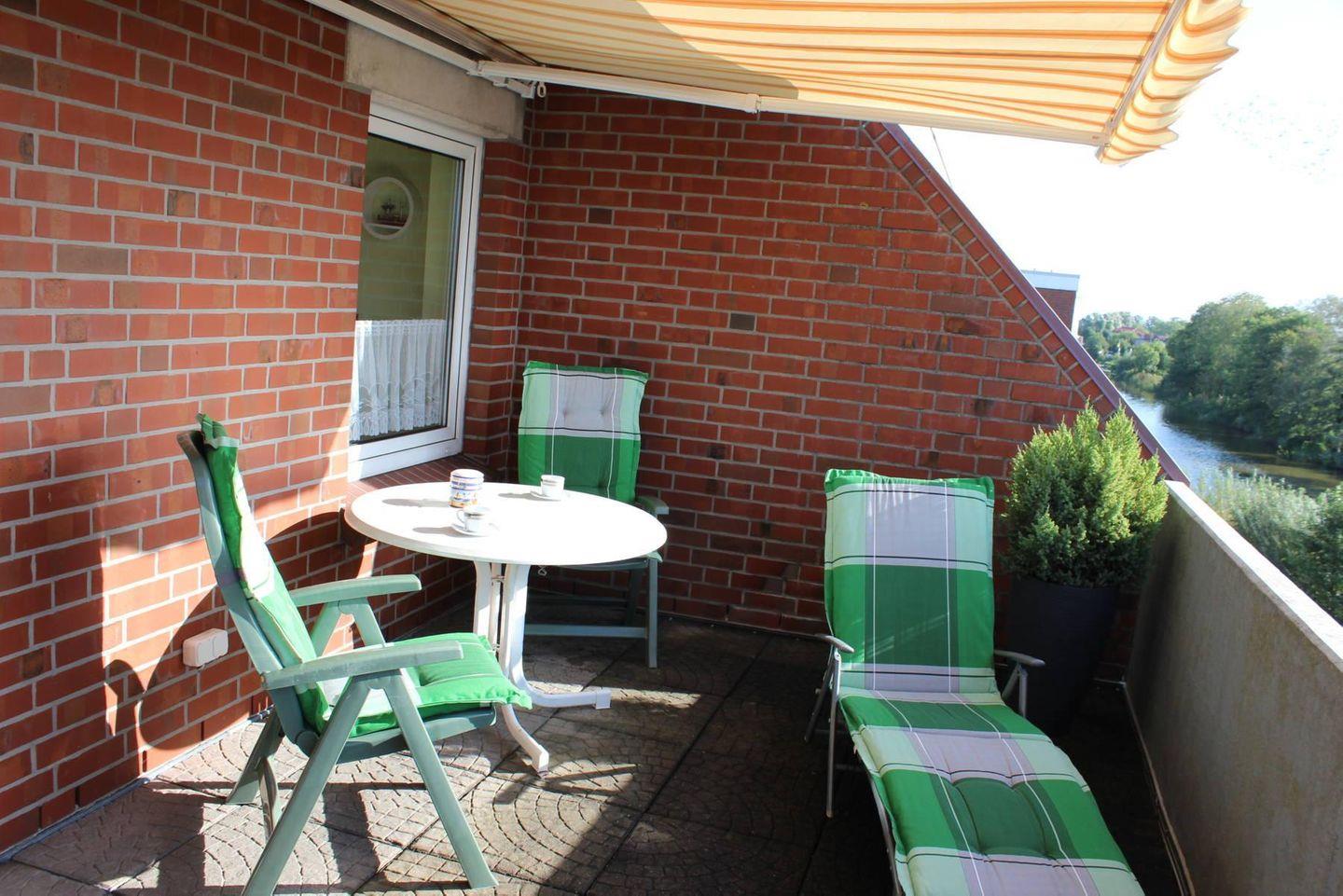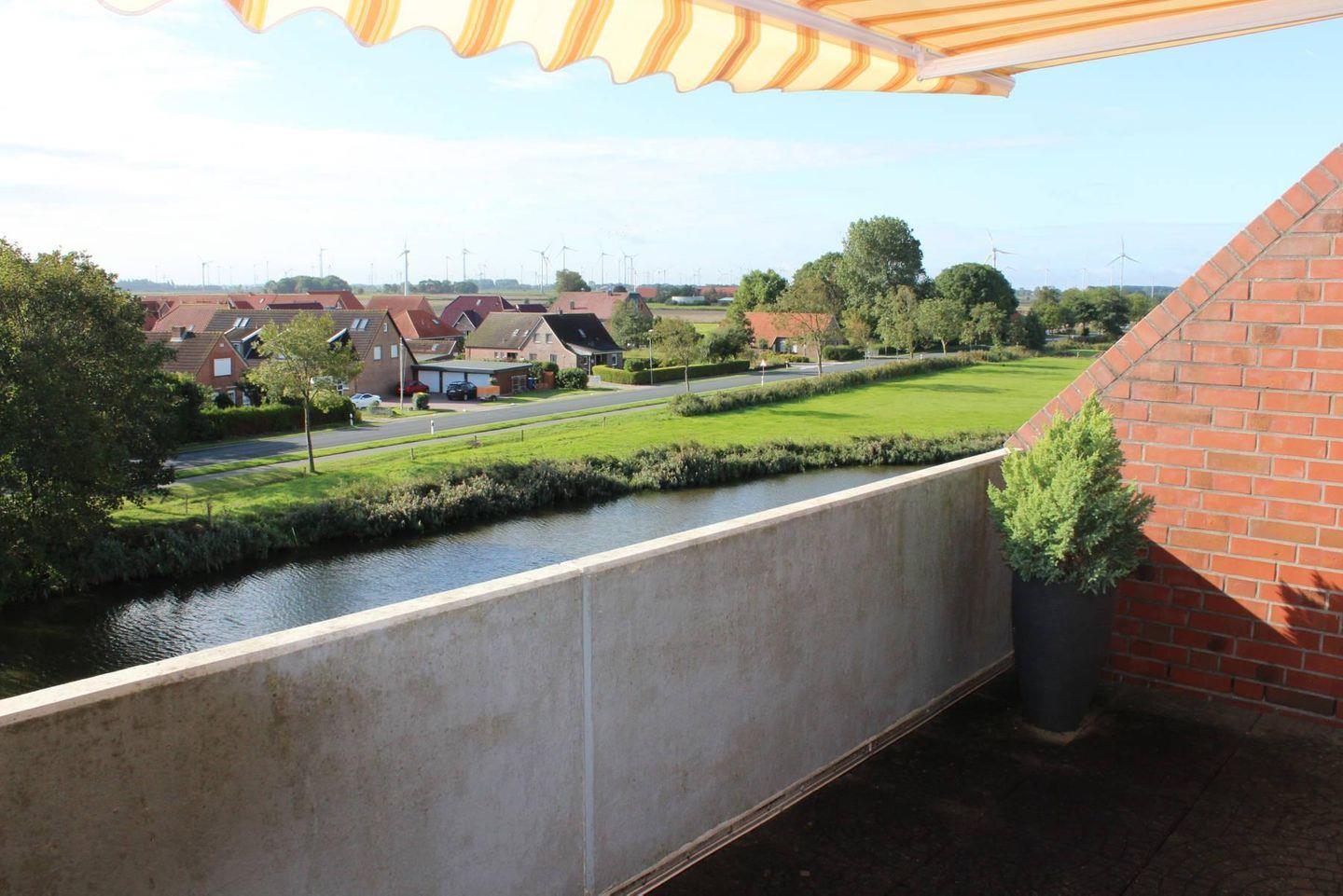 Gemütliche Oberwohnung Utkiek mit Balkon und Blick auf den Dornumersieler Kanal in ruhiger Lage, nahe Einkauf und Restaurants.