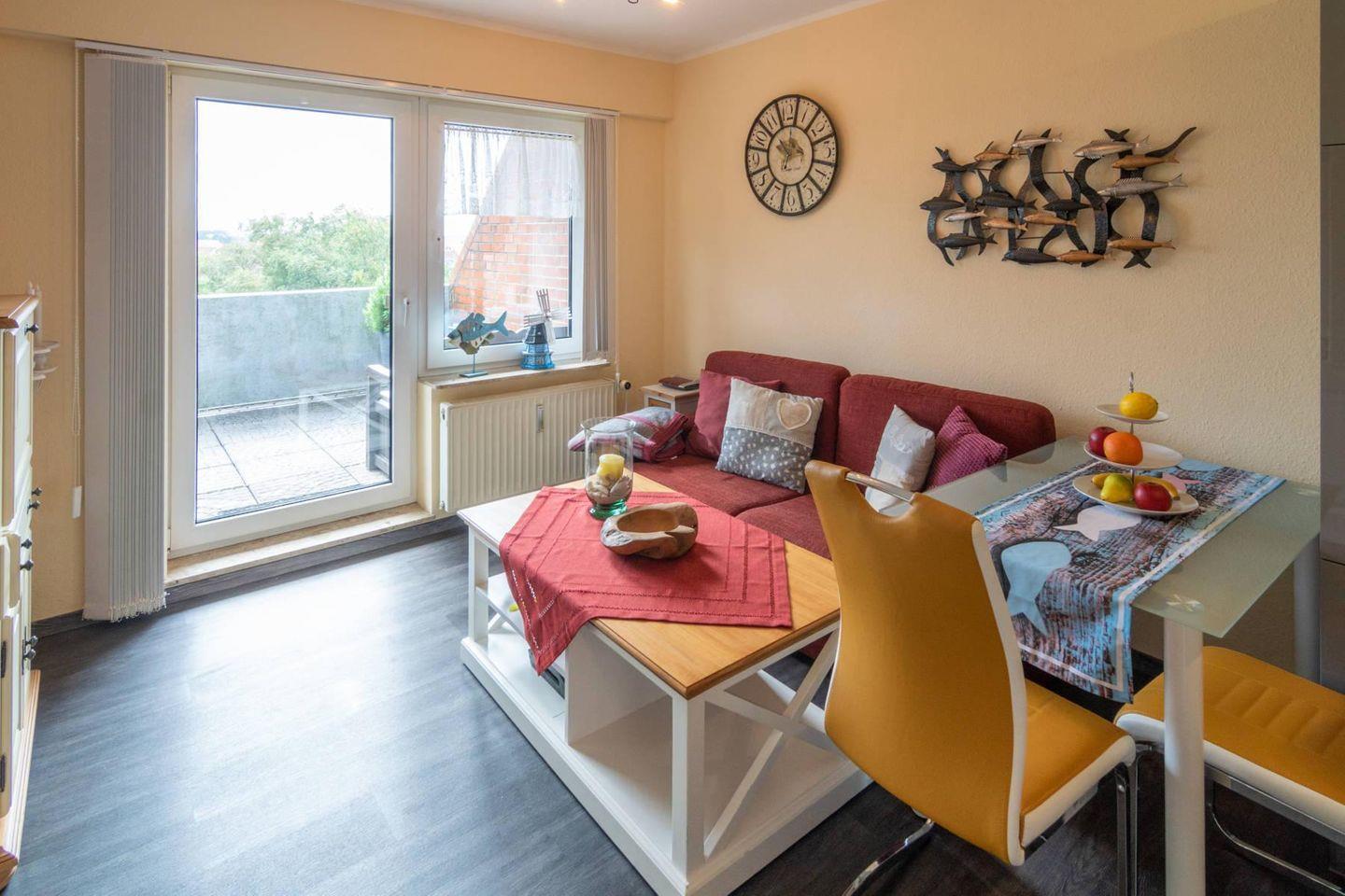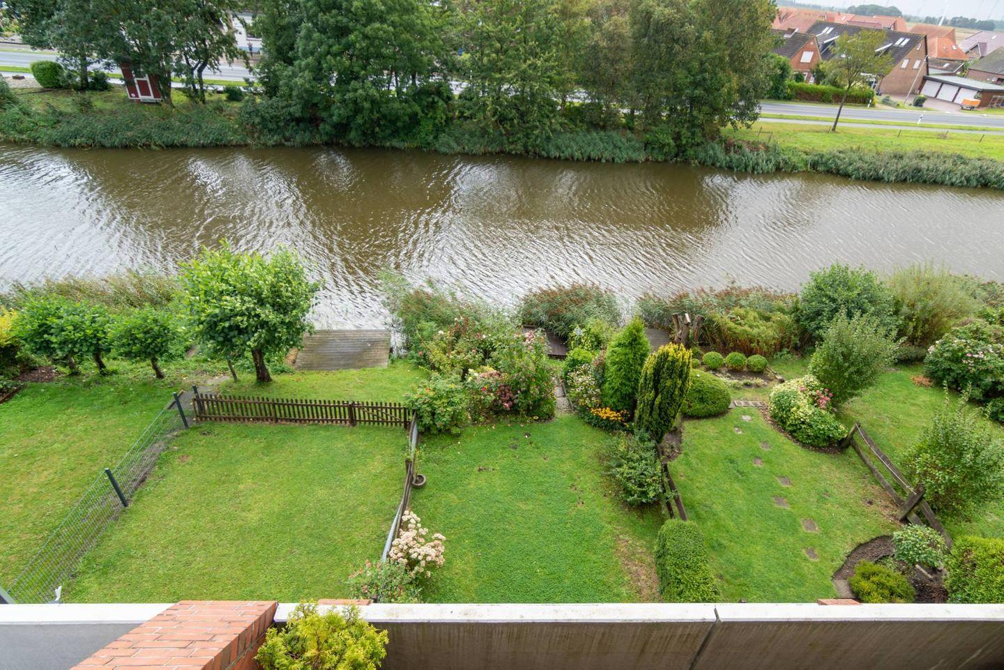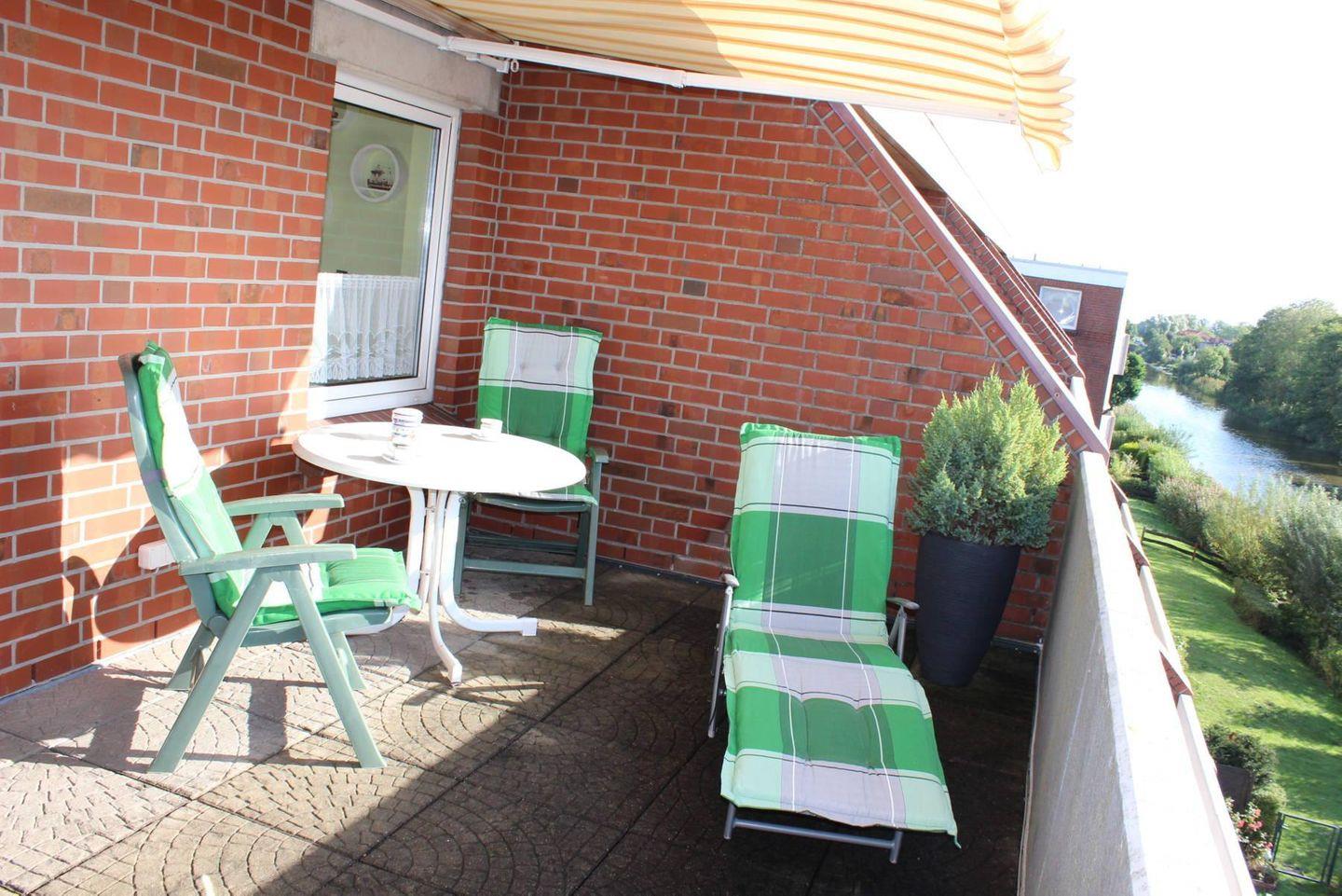 Gemütliche Oberwohnung Utkiek mit Balkon und Blick auf den Dornumersieler Kanal in ruhiger Lage, nahe Einkauf und Restaurants.