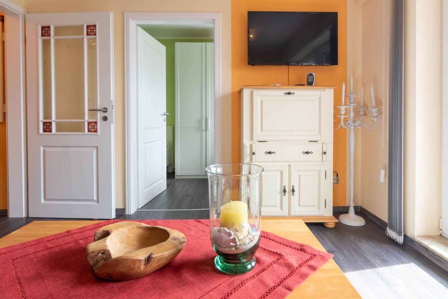 Die gemütliche Oberwohnung mit Balkon bietet auf ca. 36 m² Platz für 2 Erwachsene und 1 Kind.