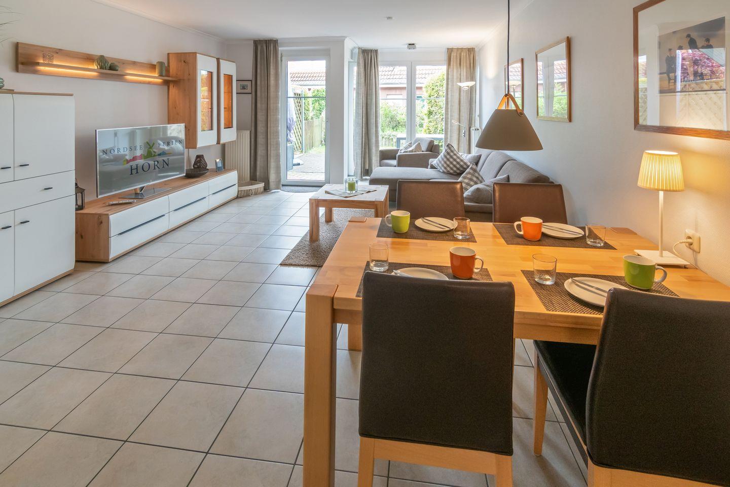 Modernes, familienfreundliches Reihenhaus Finja in ruhiger und zentraler Lage in Dornumersiel mit Terrasse und WLAN.