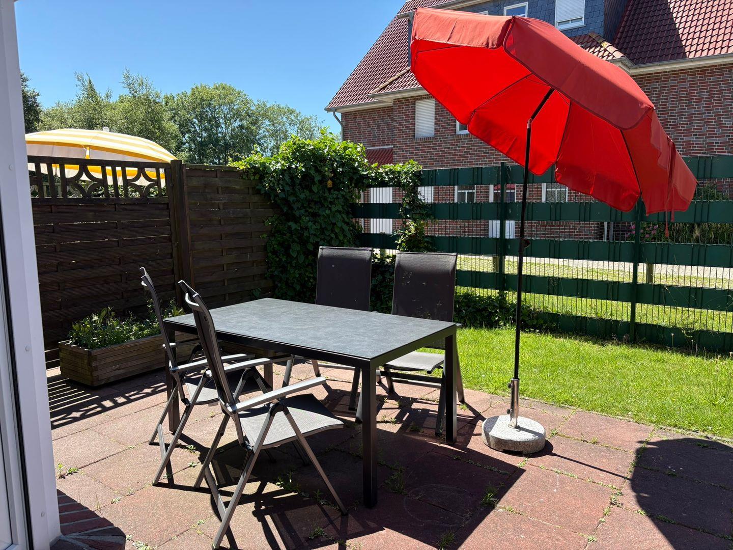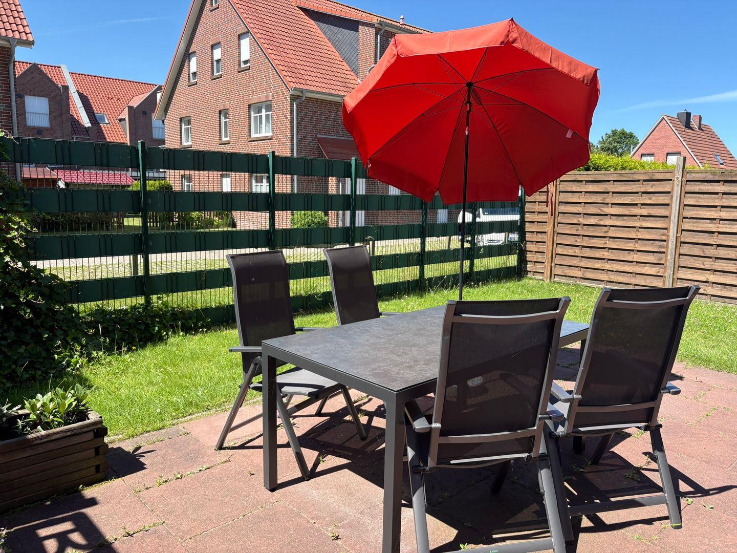 Gemütliches Reihenendhaus Antje in Dornumersiel mit Terrasse, kleinem Garten und kostenlosem WLAN für erholsame Urlaubstage.