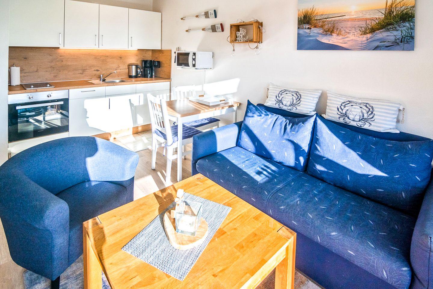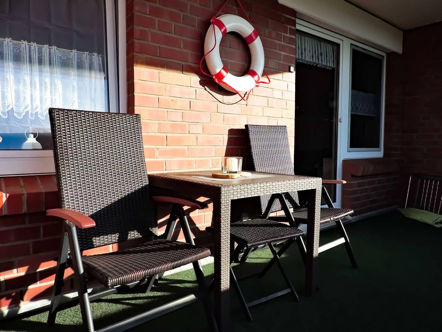 Die gemütliche, maritim eingerichtete Oberwohnung mit großem Balkon befindet sich im Haus "Norderney" und bietet auf ca. 40 m² Platz für 2 Personen.